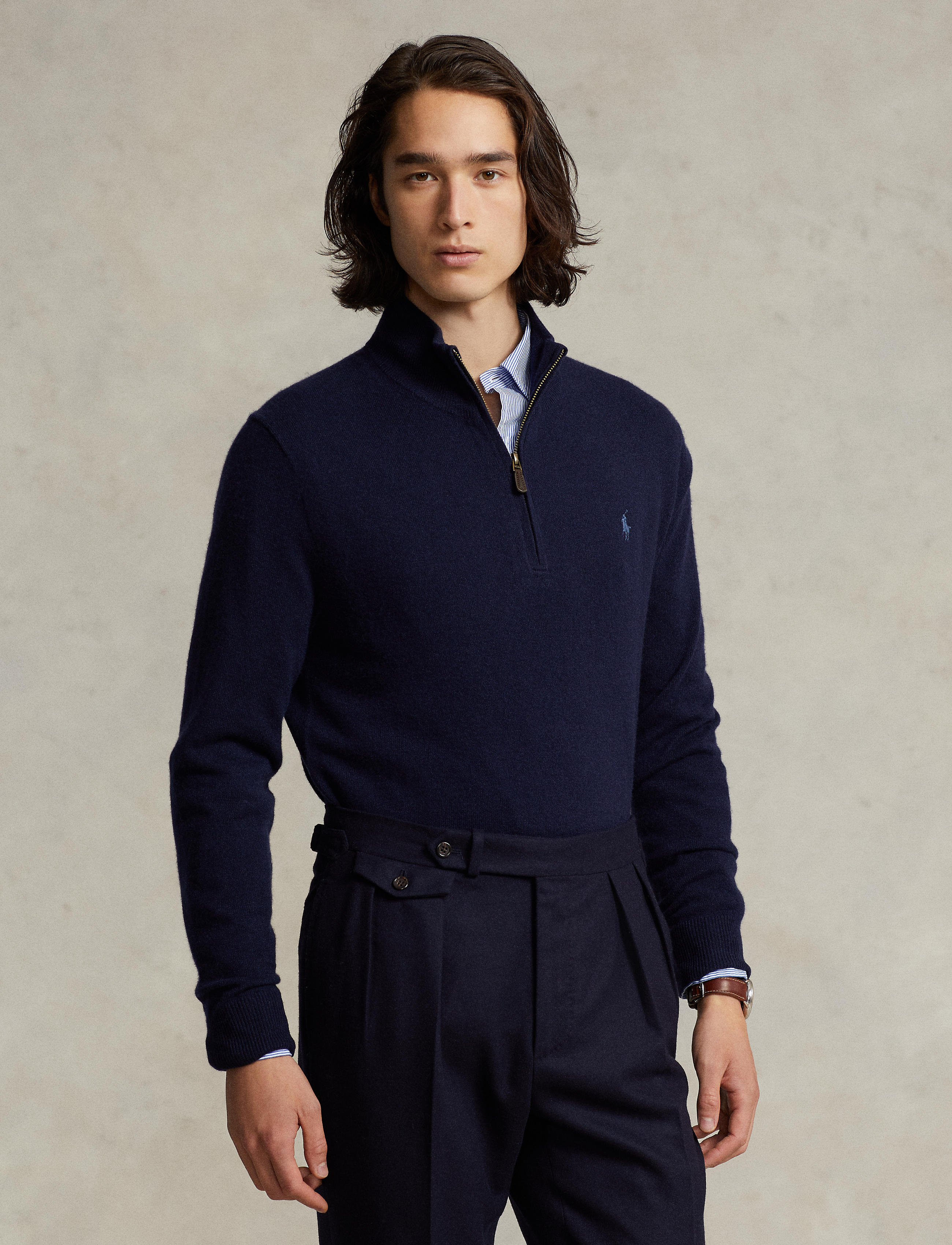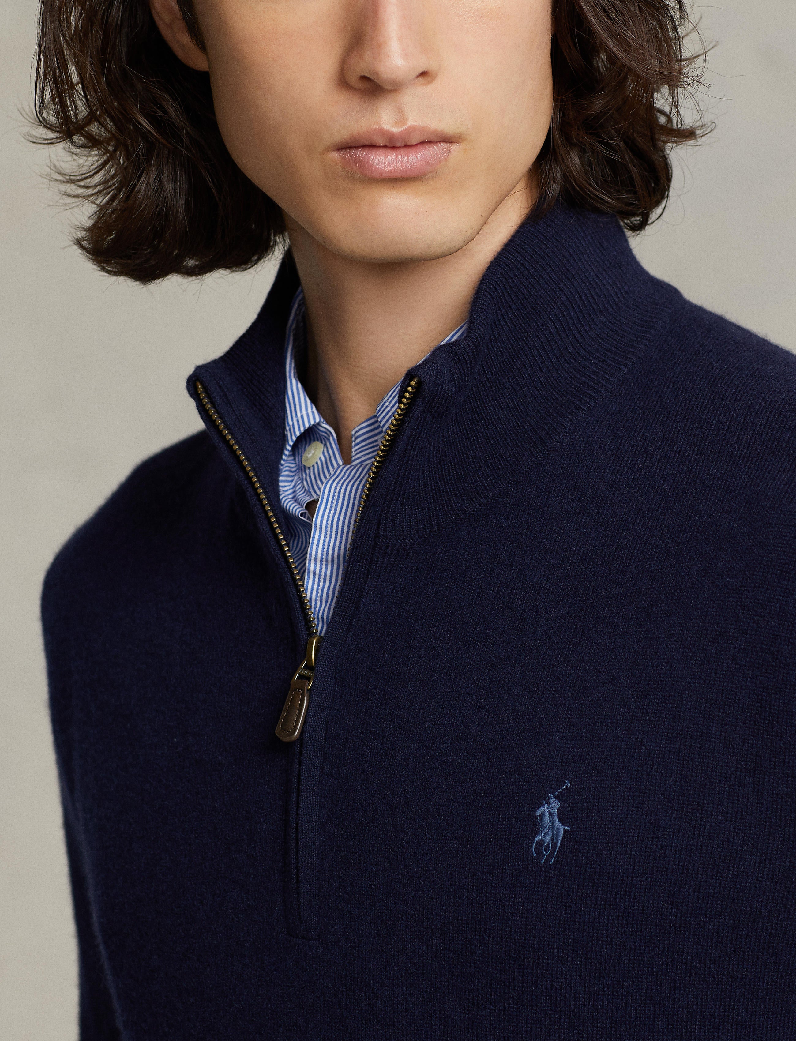 Luxurious Italian wool and our signature embroidered Pony elevate this quarter-zip sweater.