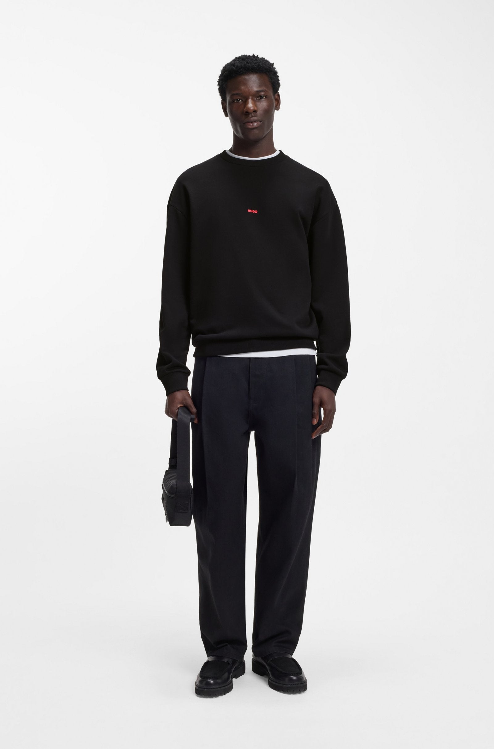 Upgrading the logo sweatshirt with puff-print dog artwork at the back, this relaxed-fit HUGO Menswear layer makes a statement. Soft cotton terry.