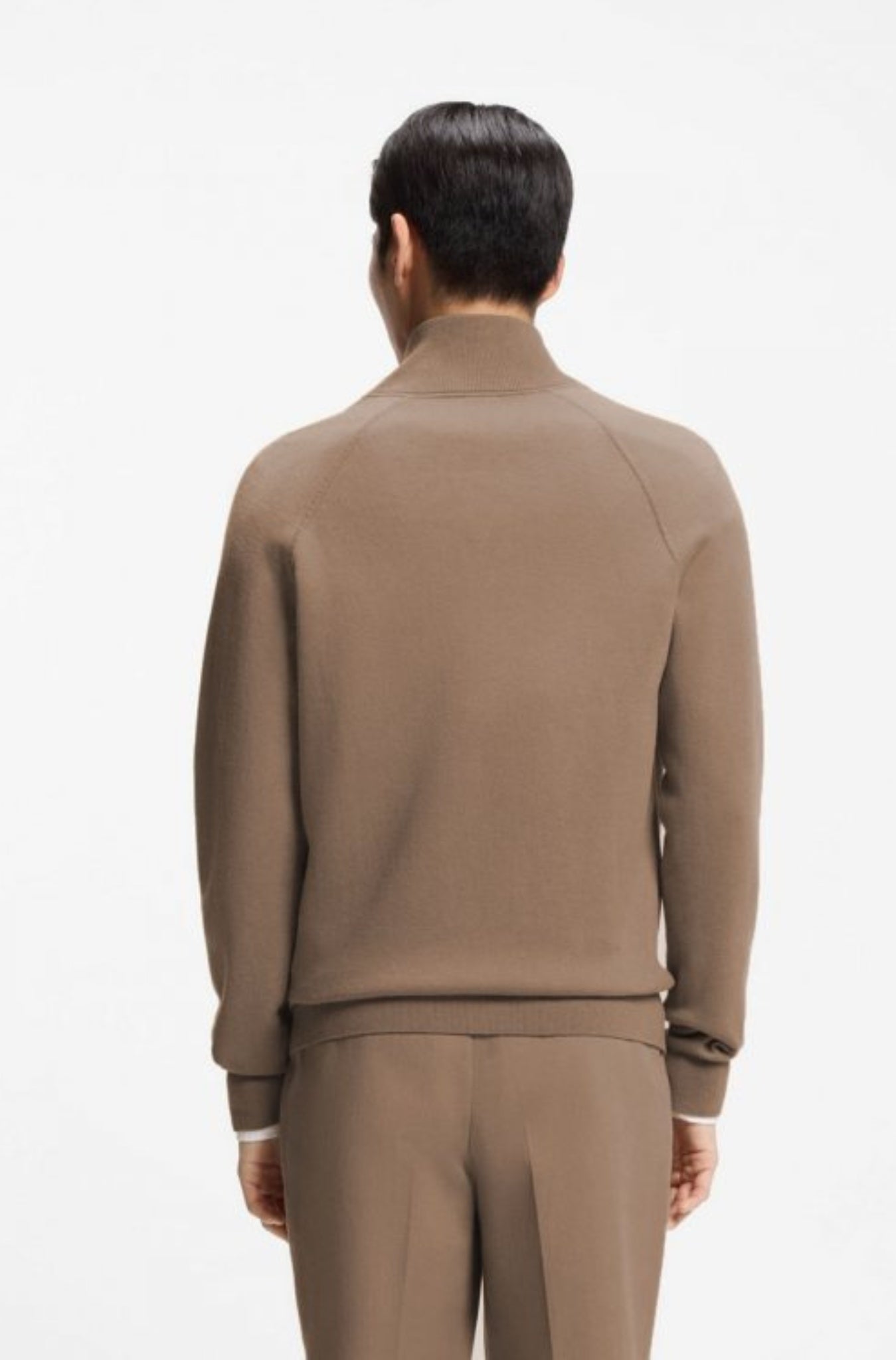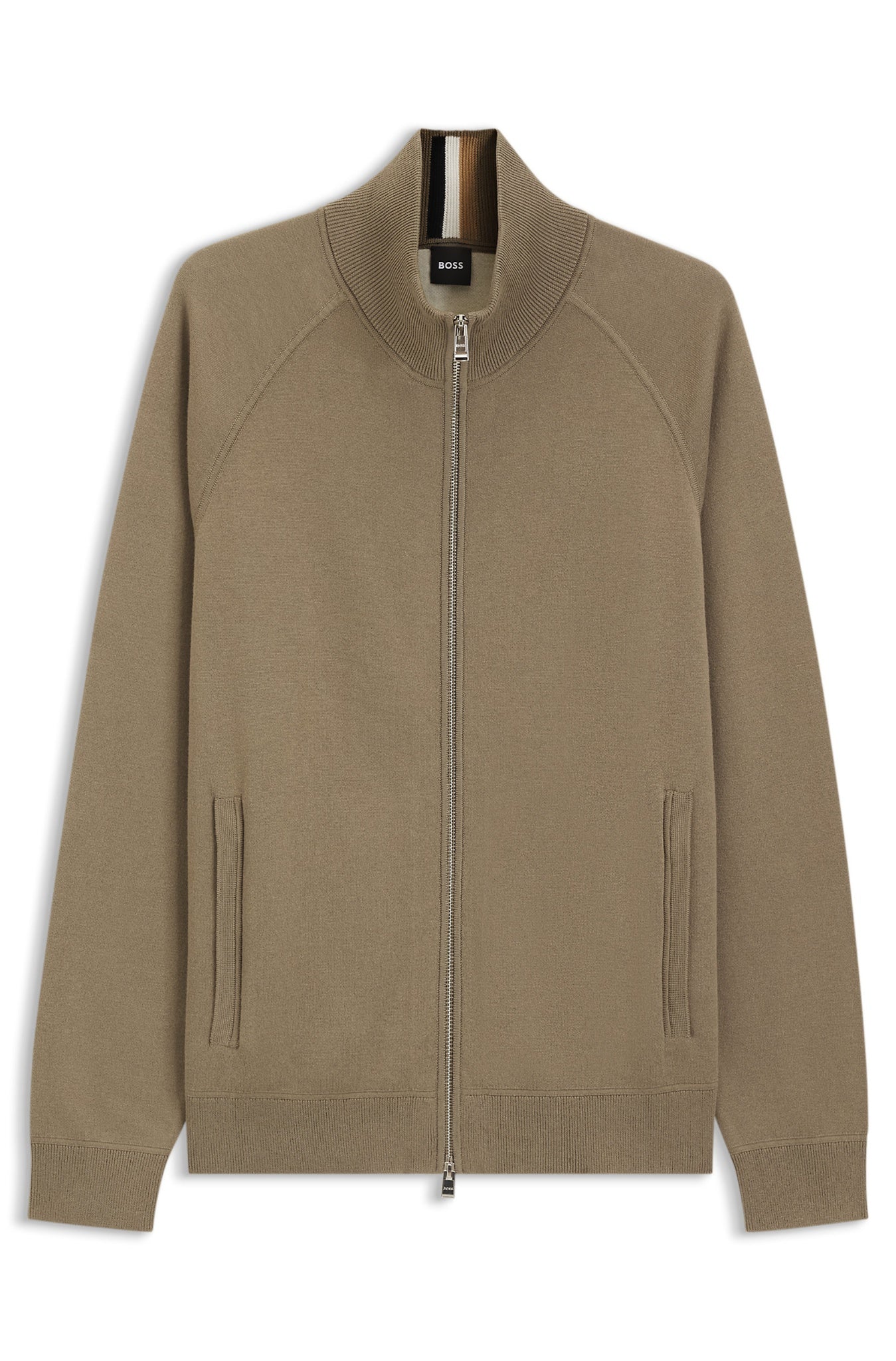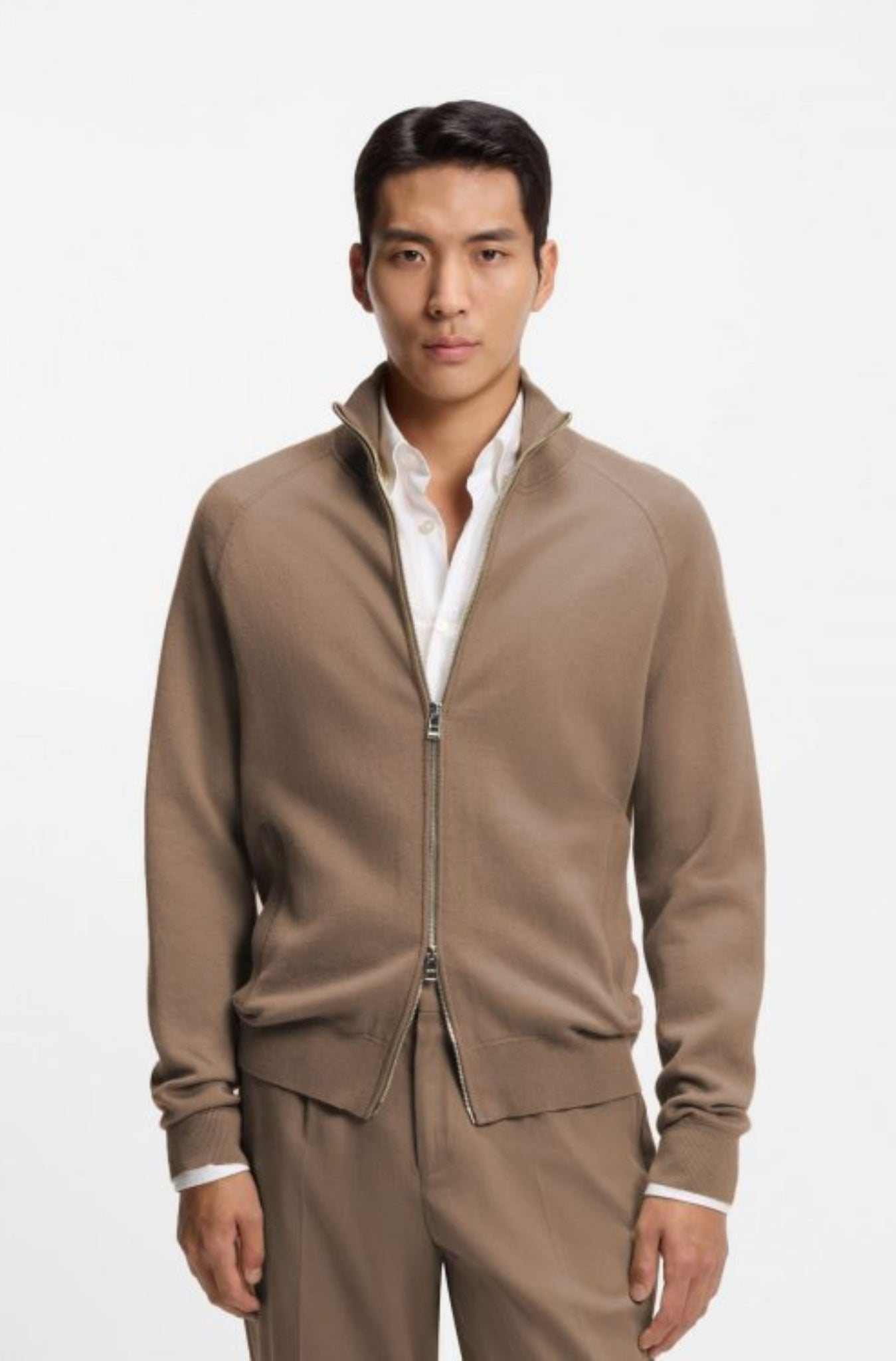 With its double-ended zip and soft knit, this BOSS Menswear cardigan is a layering must. Crafted in cotton blended with breathable virgin wool.