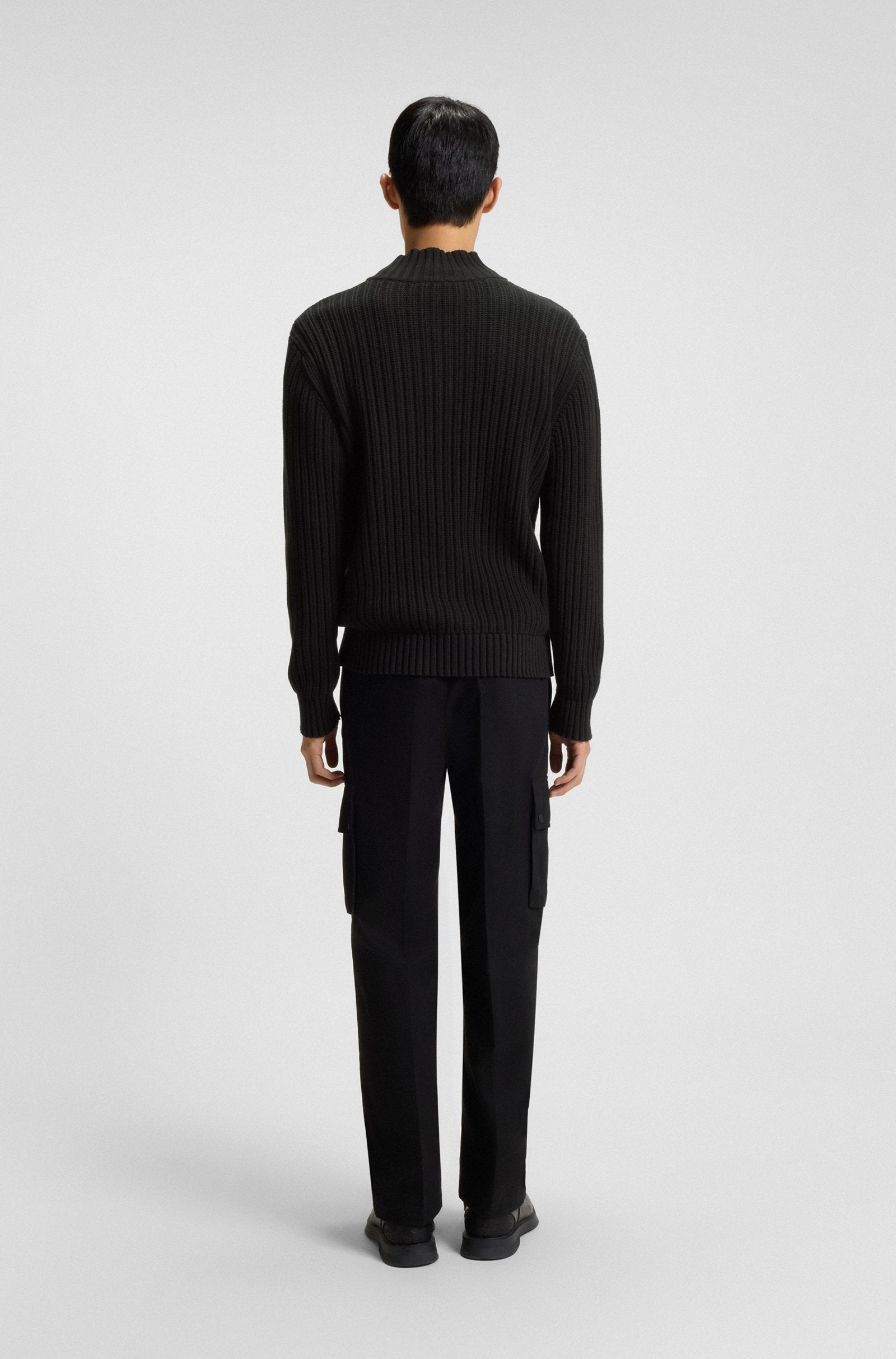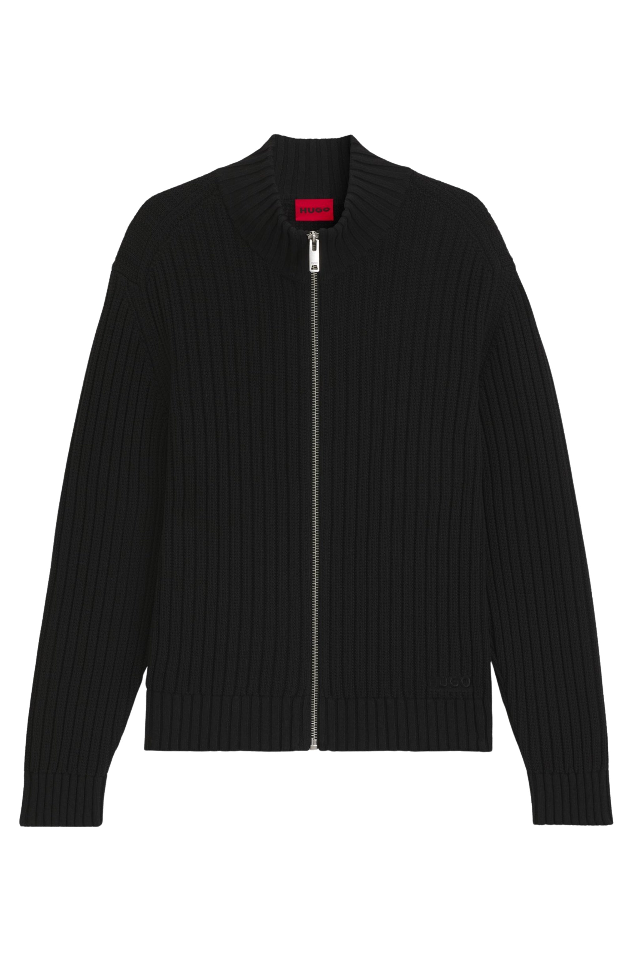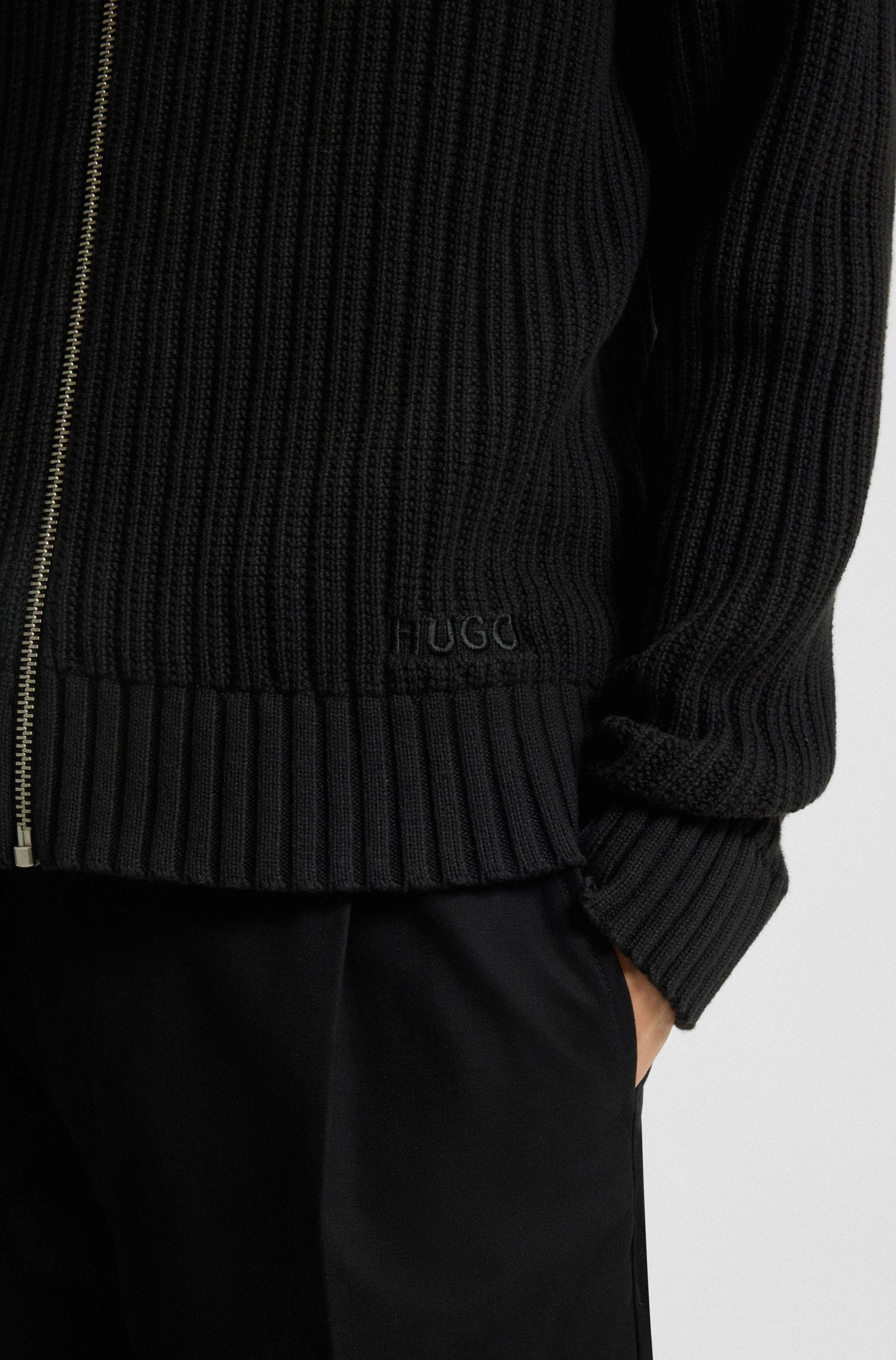 Layer up in style and comfort with the chunky rib and oversized zip of this HUGO Menswear jacket. Cut to a straight fit in cotton.