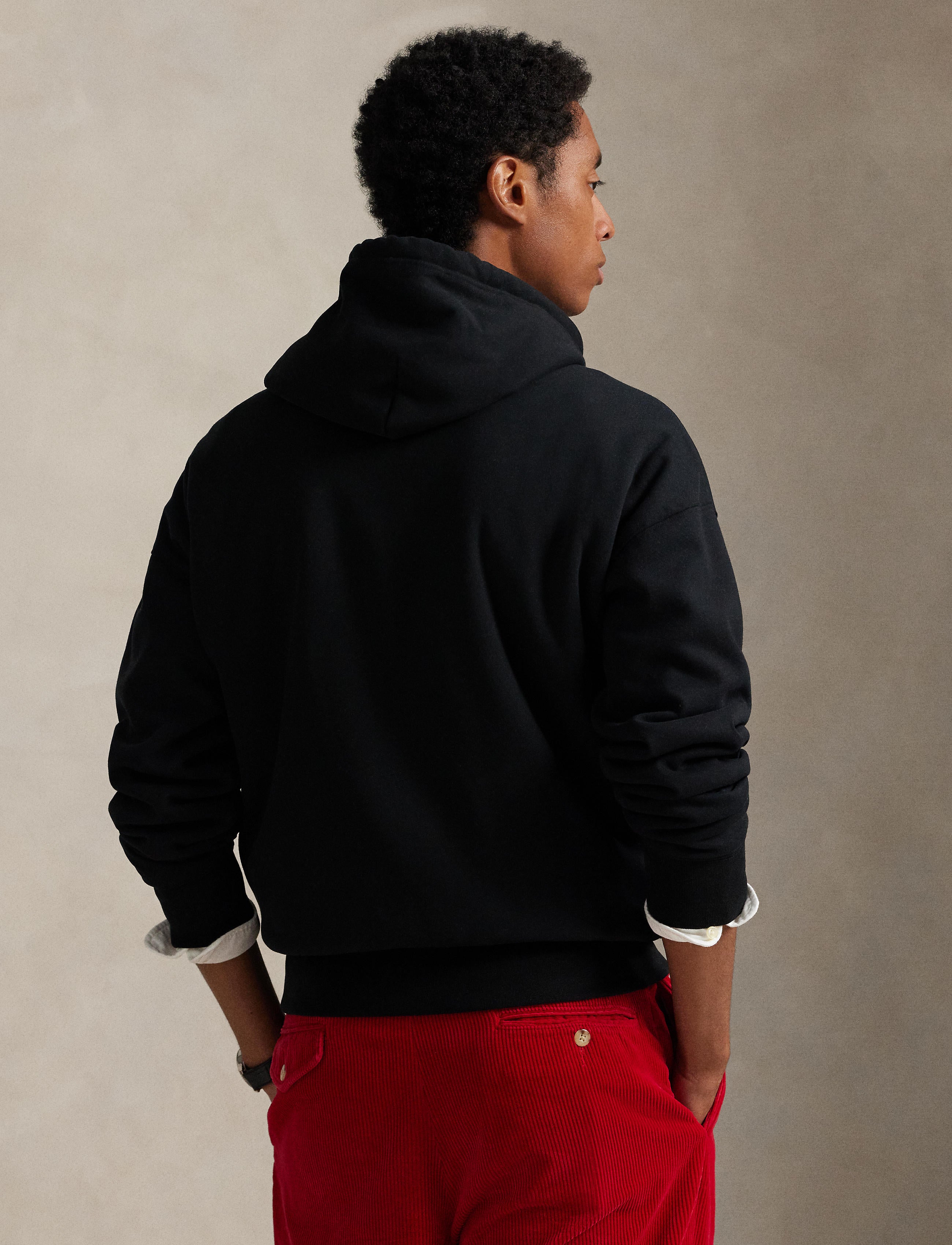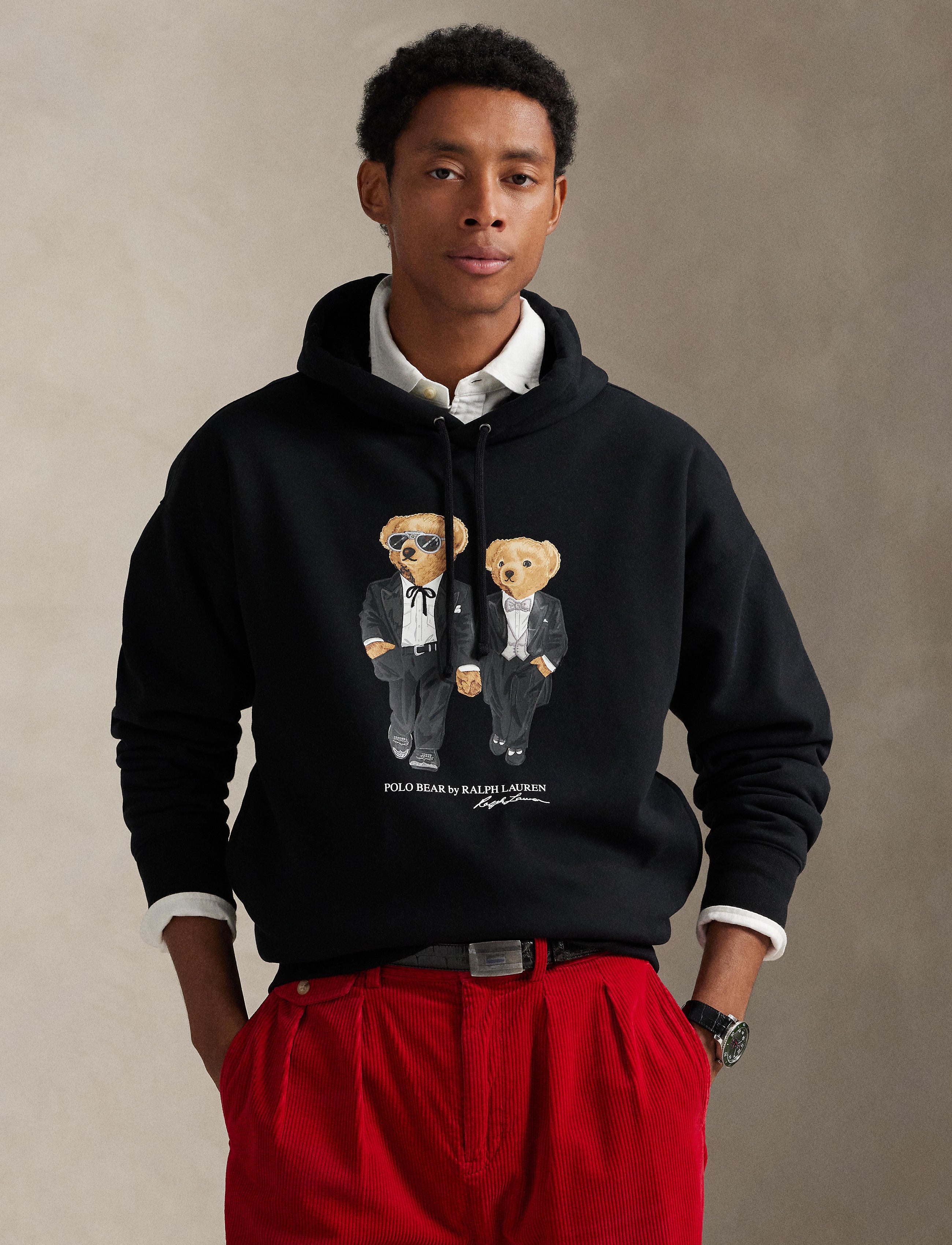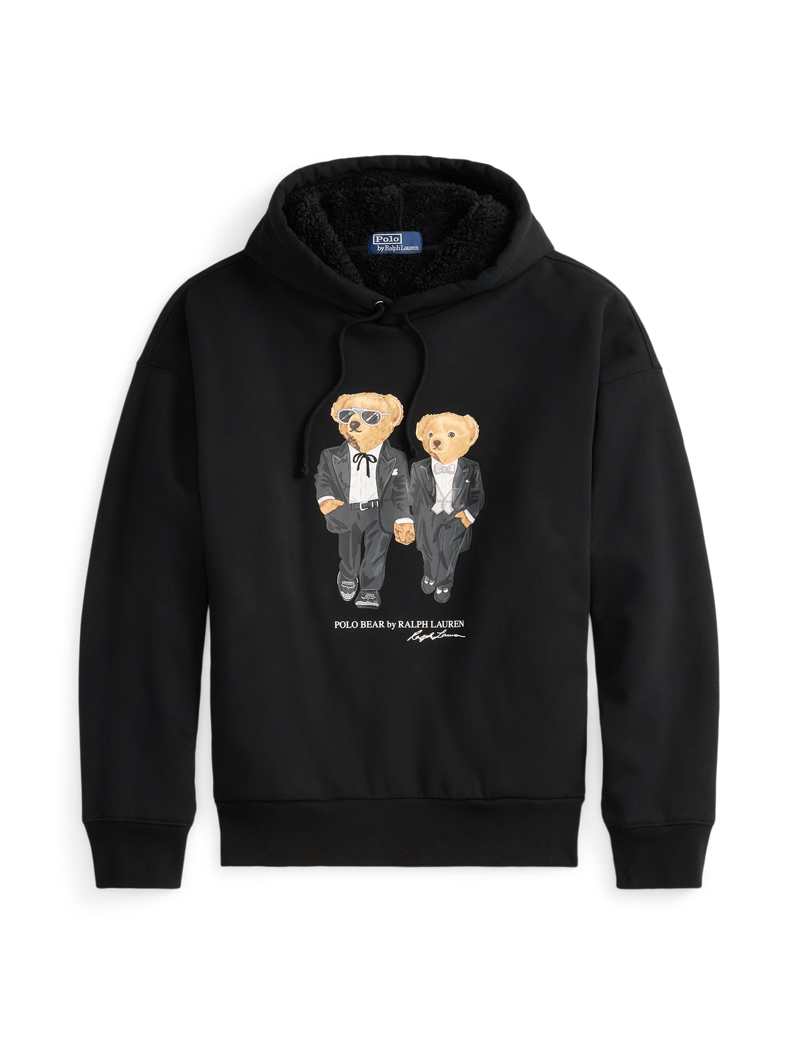 Crafted with a smooth cotton-blend exterior and a high-pile fleece interior, this hoodie depicts two Polo Bears wearing their black-tie best. The graphic is inspired by an iconic photograph of Mr. Lauren beside his wife and muse, Ricky Lauren, attending an awards show in the late ’70s.