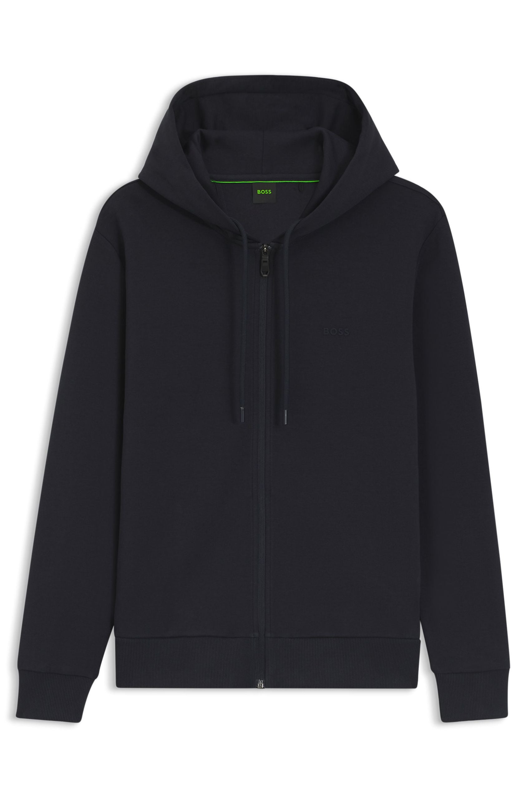 Featuring a subtle chest logo, this BOSS Menswear hoodie is ideal for off-duty moments. Straight fit. Soft stretch cotton. Zip closure.
