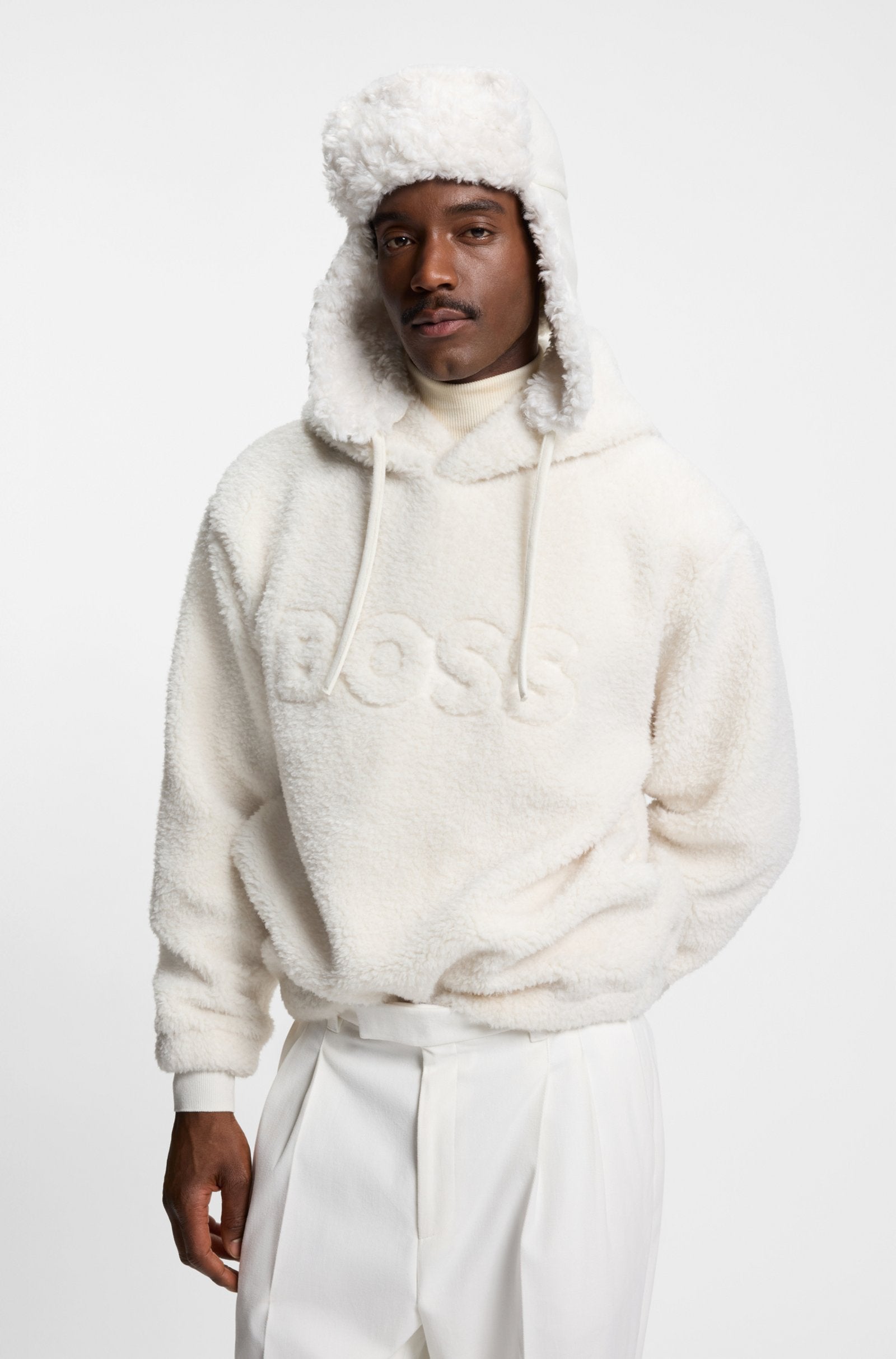 Combining a soft wool blend with a teddy plush lining, this men's BOSS x Steiff hat is ideal on chilly days. Ear flaps. Double B monogram. The BOSS x Steiff collaboration merges two iconic German brands known for quality and craftsmanship.