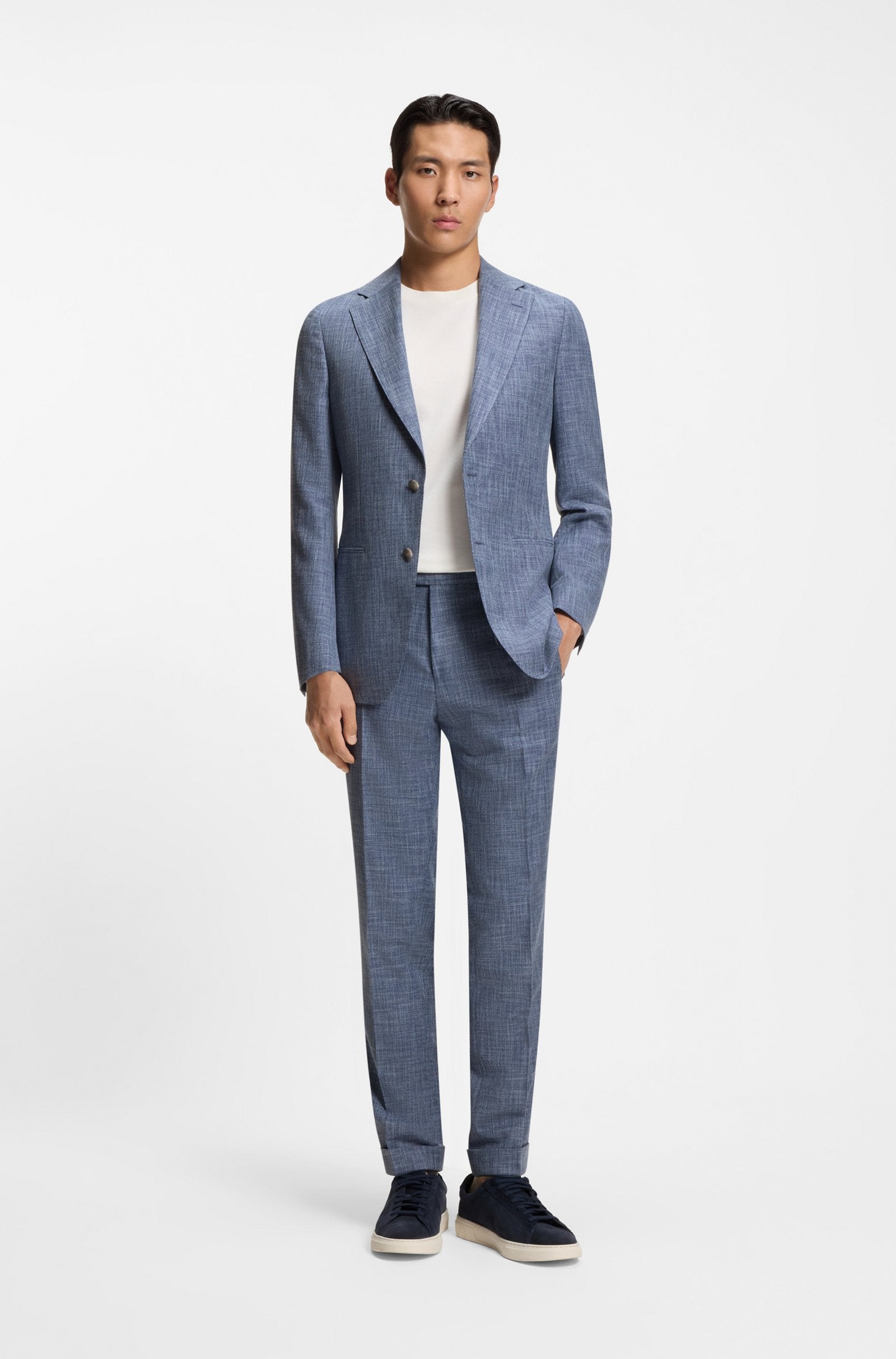 Make formal moments count in this two-piece BOSS Menswear suit. Woven with a subtle pattern, this suit is crafted with virgin wool for a look that's easy to style. The slim fit offers comfortable room to move.