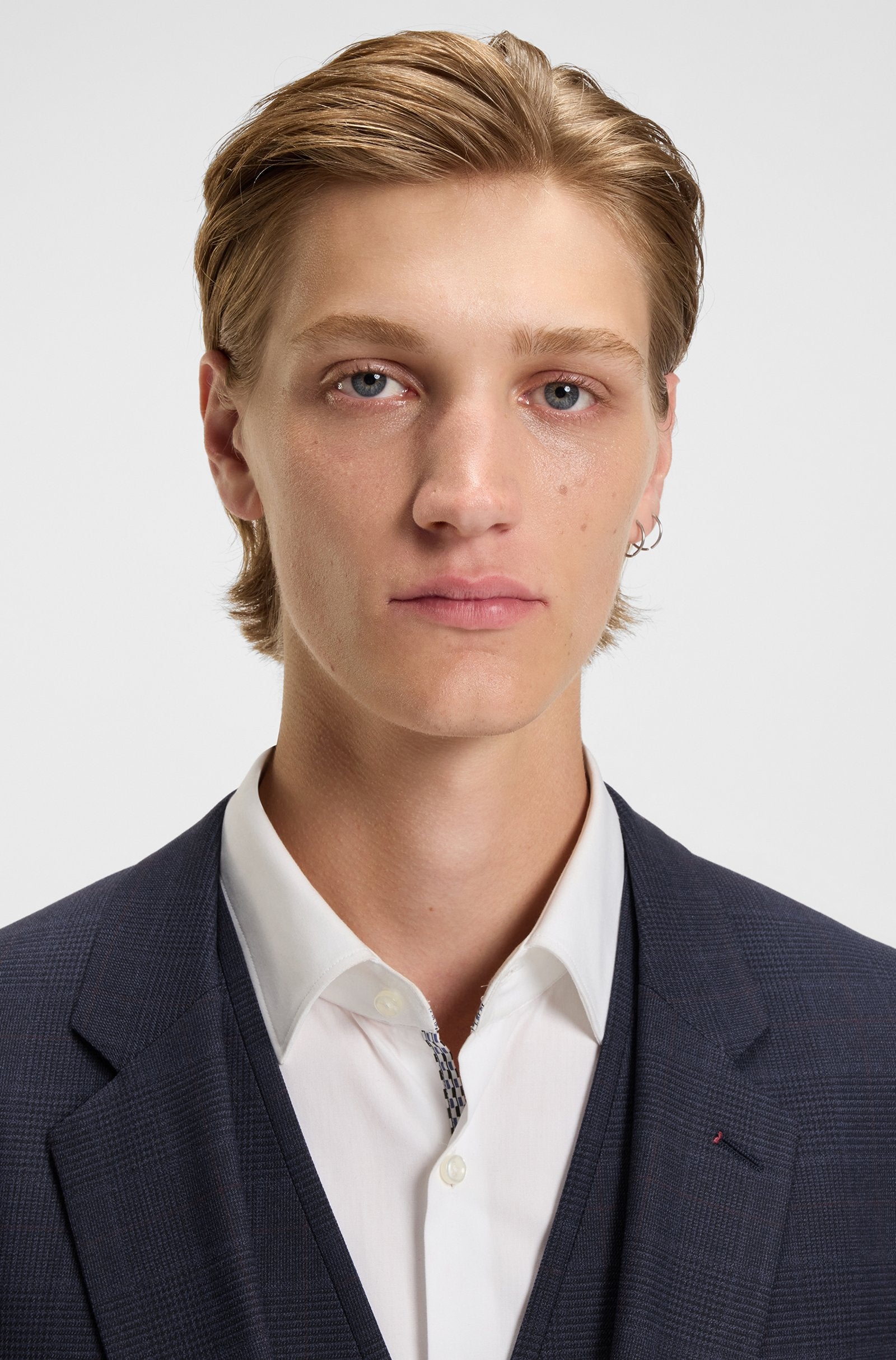 Ideal for any formal occasion, this three-piece HUGO Menswear suit features a heritage check on stretch fabric. Super-slim fit. Blended with soft wool.