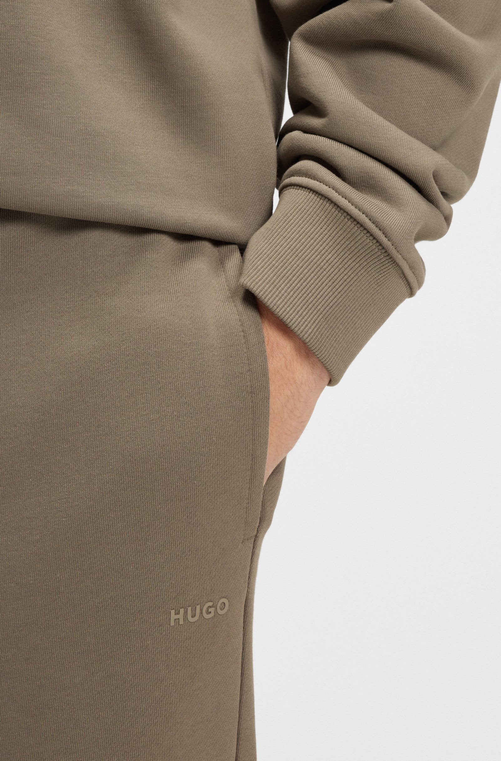 Complete your casuals with these cuffed tracksuit bottoms by HUGO Menswear. Crafted in cotton terry with a contrast logo print. Regular fit