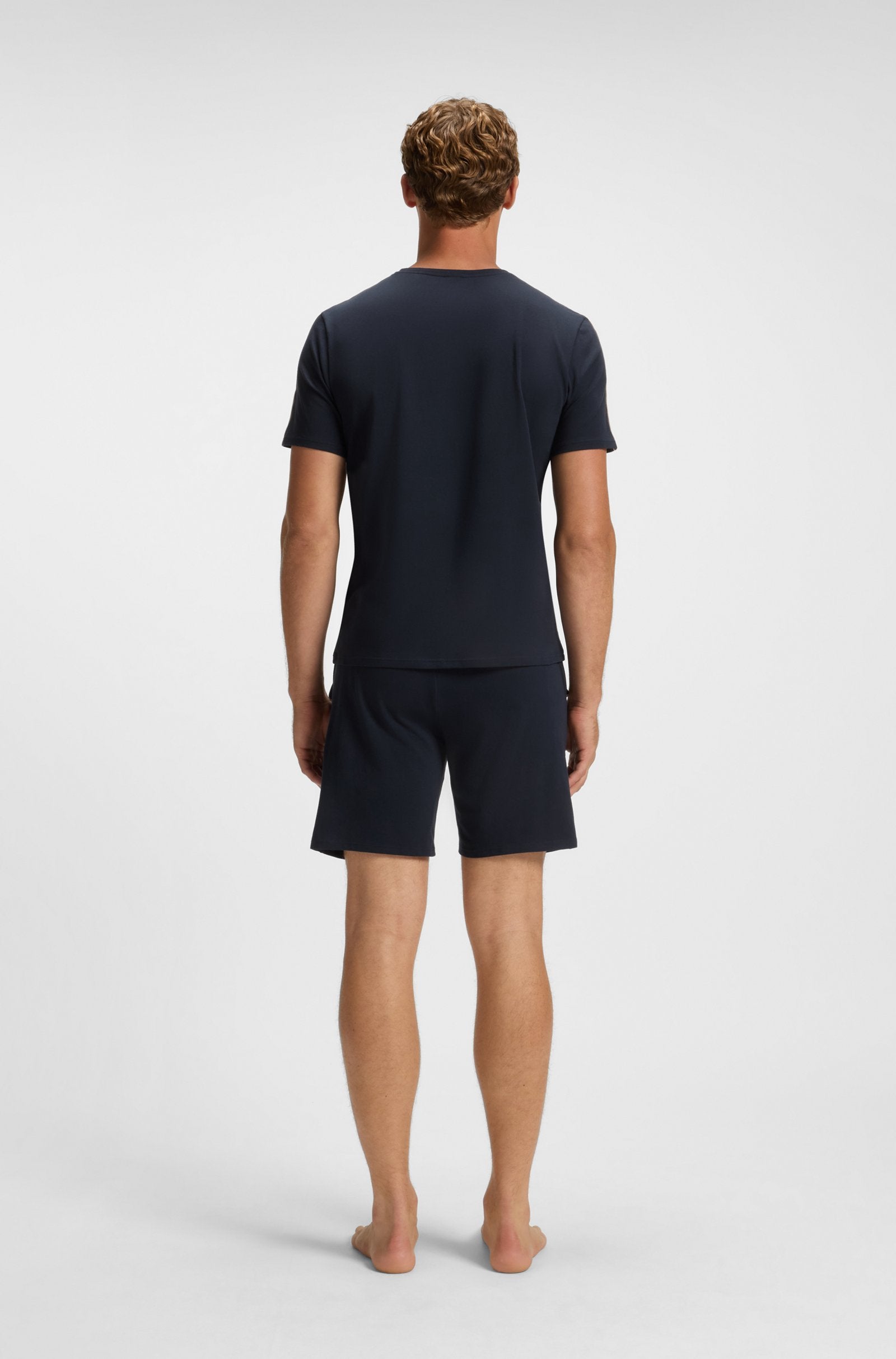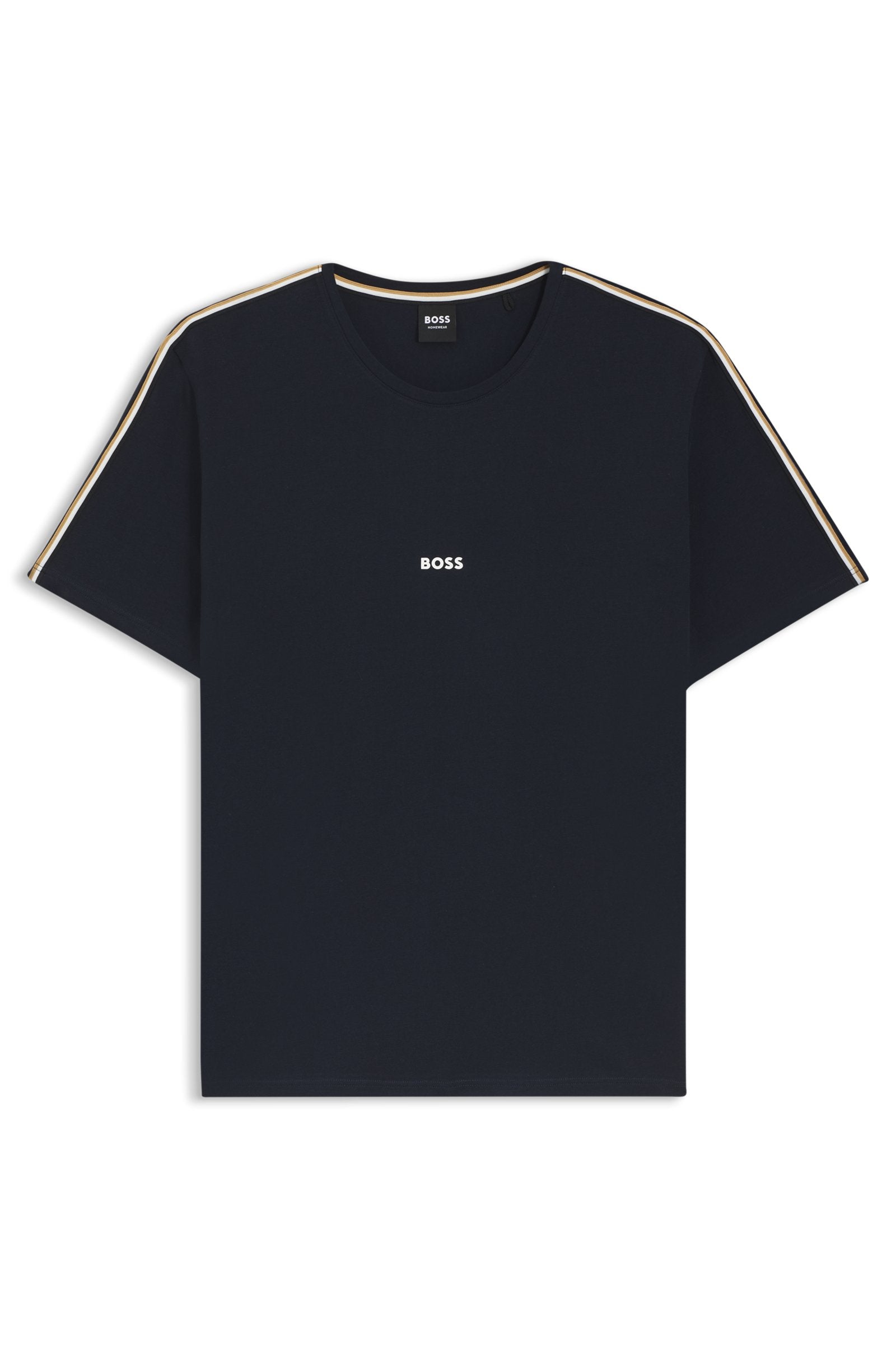 With its logo print and signature-stripe tape, this BOSS Menswear pajama T-shirt is a distinctive way to relax.