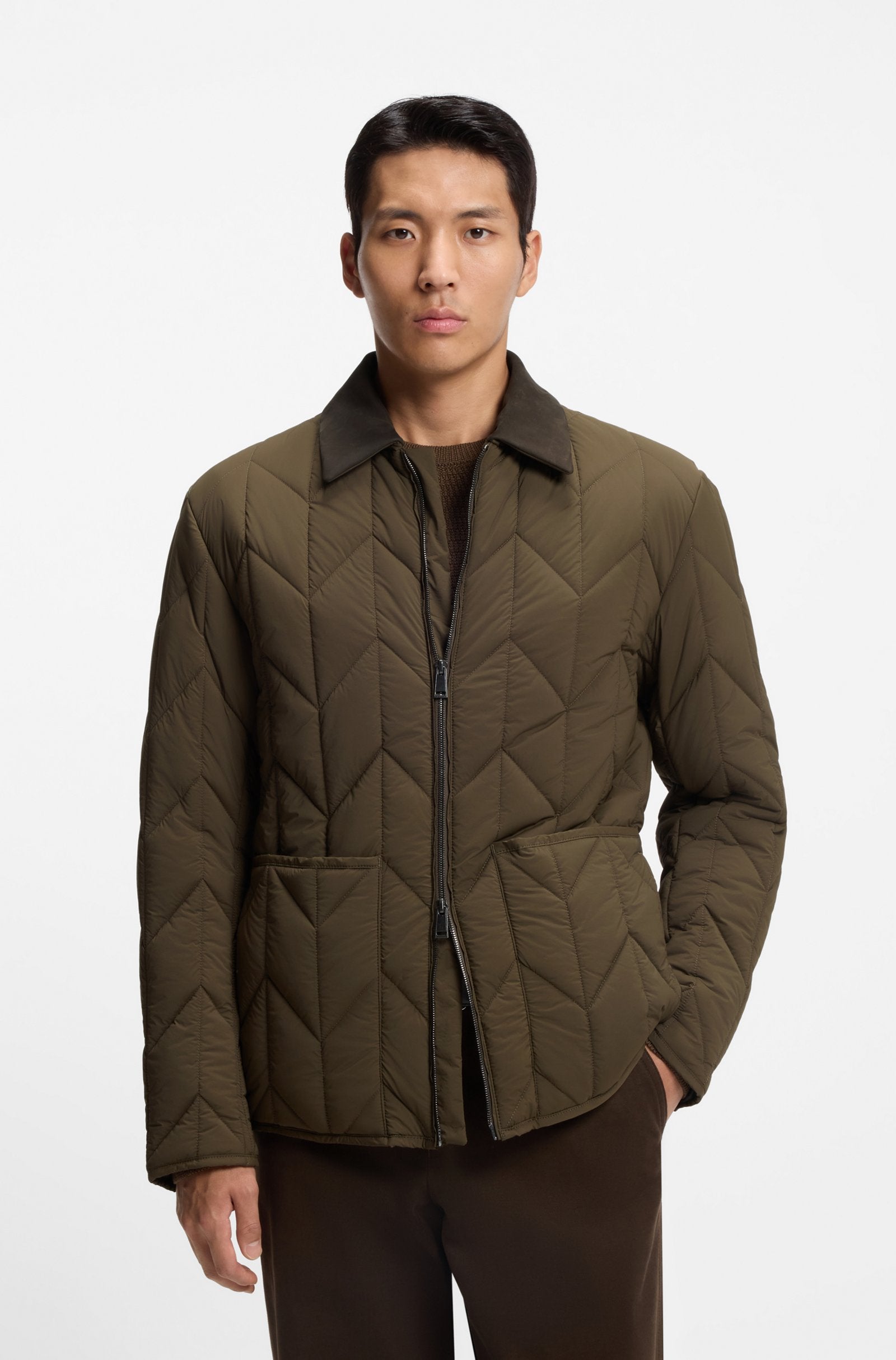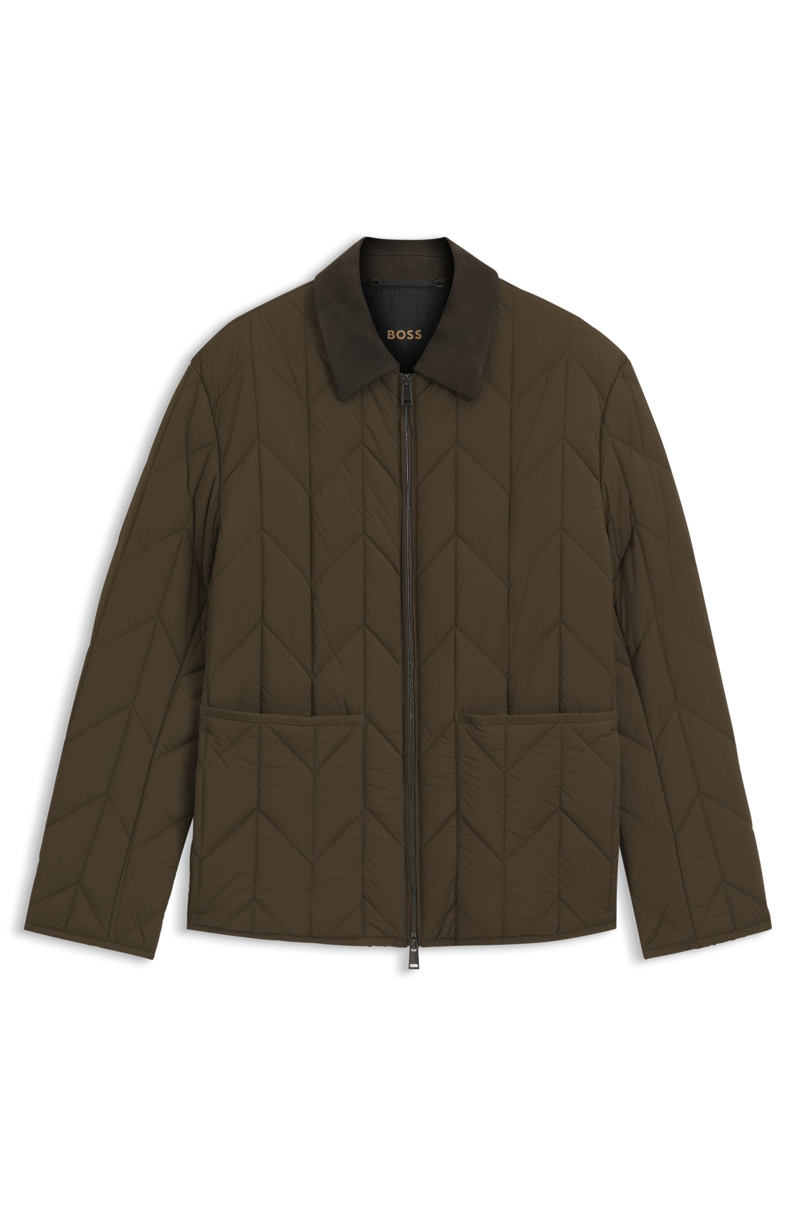 With a protective finish and luxuriously soft nubuck collar, this regular-fit BOSS Menswear jacket is an everyday essential. Modern zigzag quilting.
