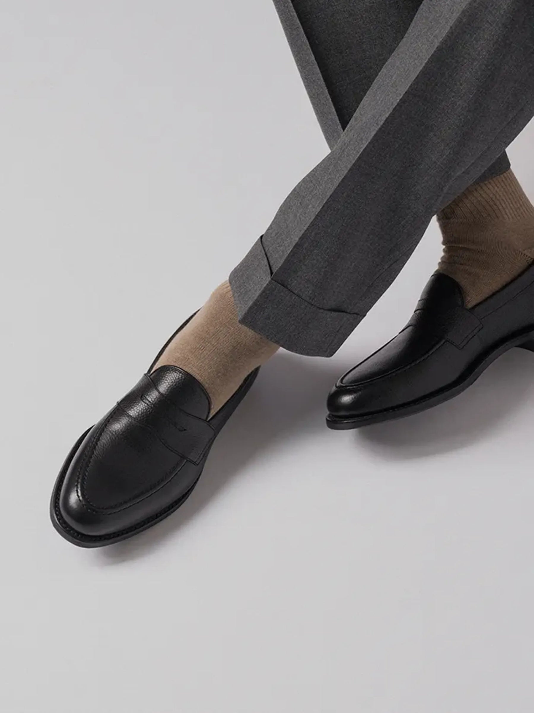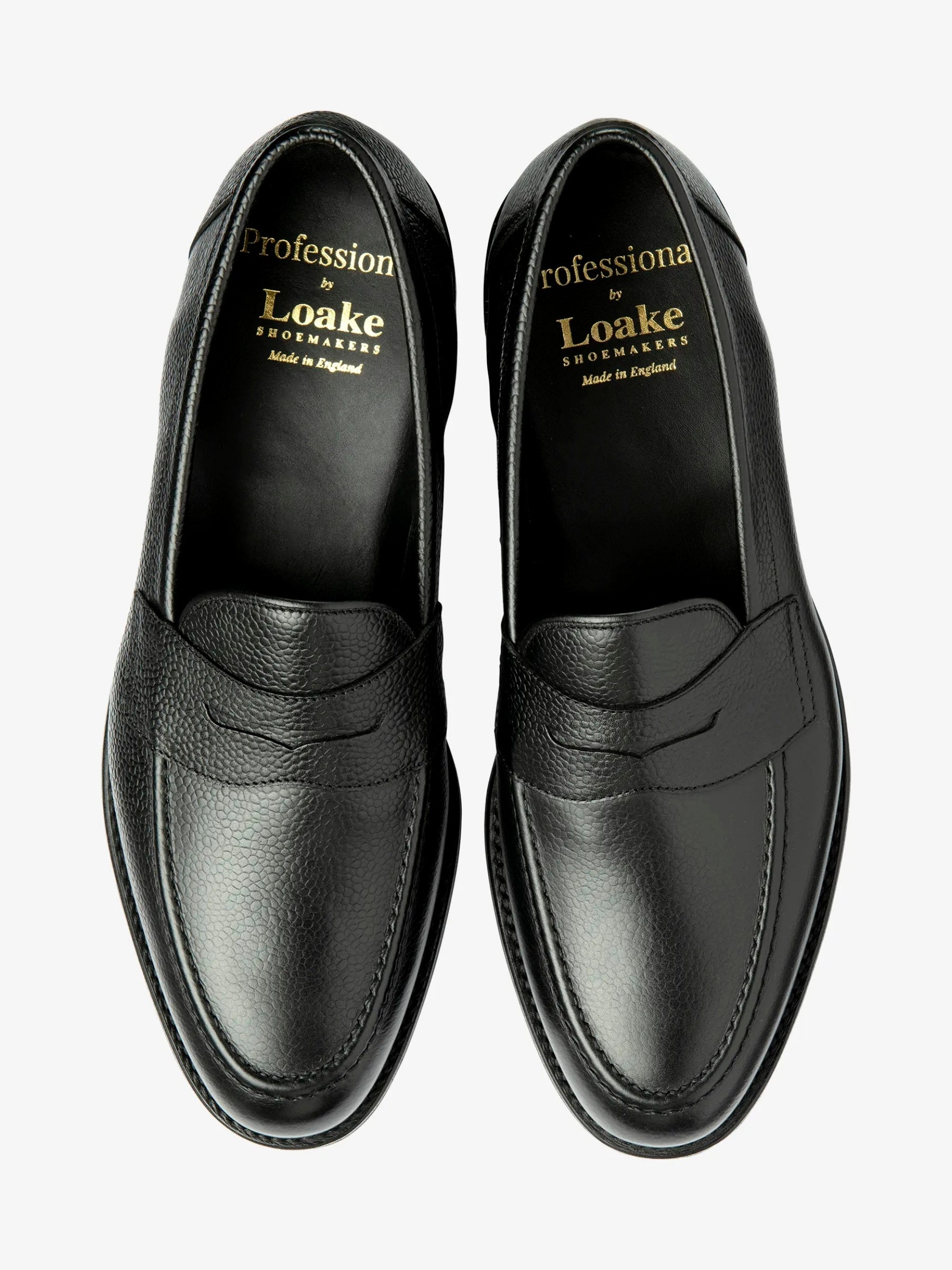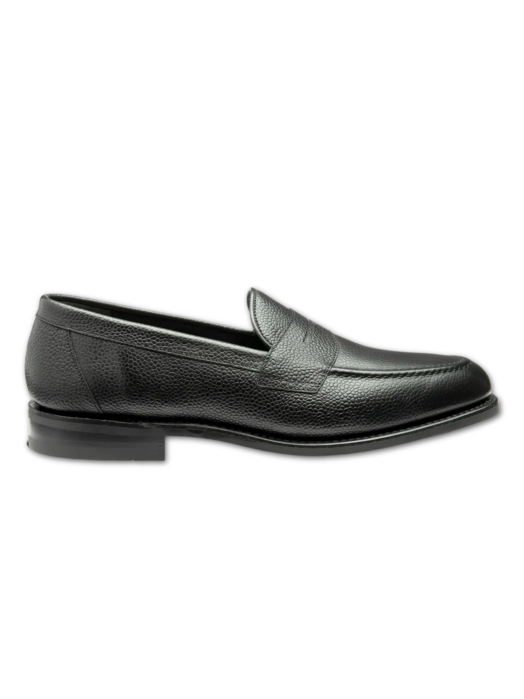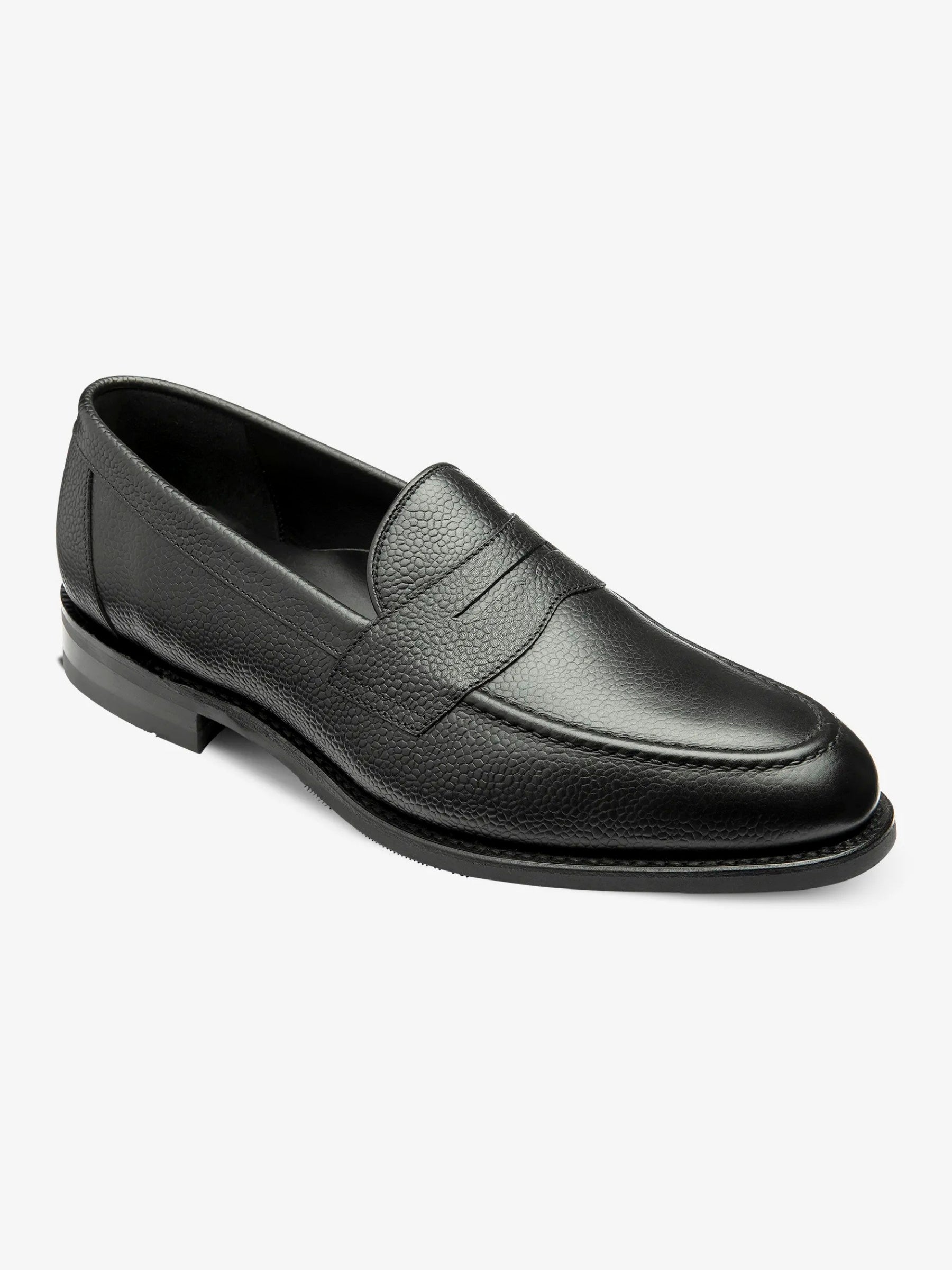 The Loake Imperial is a premium penny loafer and a distinguished addition to classic men’s shoes, crafted from black grained calf leather for a refined, textured finish. Built on the elegant College last, it provides a comfortable F fitting and a timeless loafer profile, making it a versatile choice for both formal and smart-casual wear. Featuring Goodyear welted rubber soles, Imperial offers excellent grip, durability, and the option of resoling for extended life. Designed and engineered in Northamptonshire, England, and handmade in our high-grade factory in England, it showcases Loake’s tradition of fine craftsmanship.