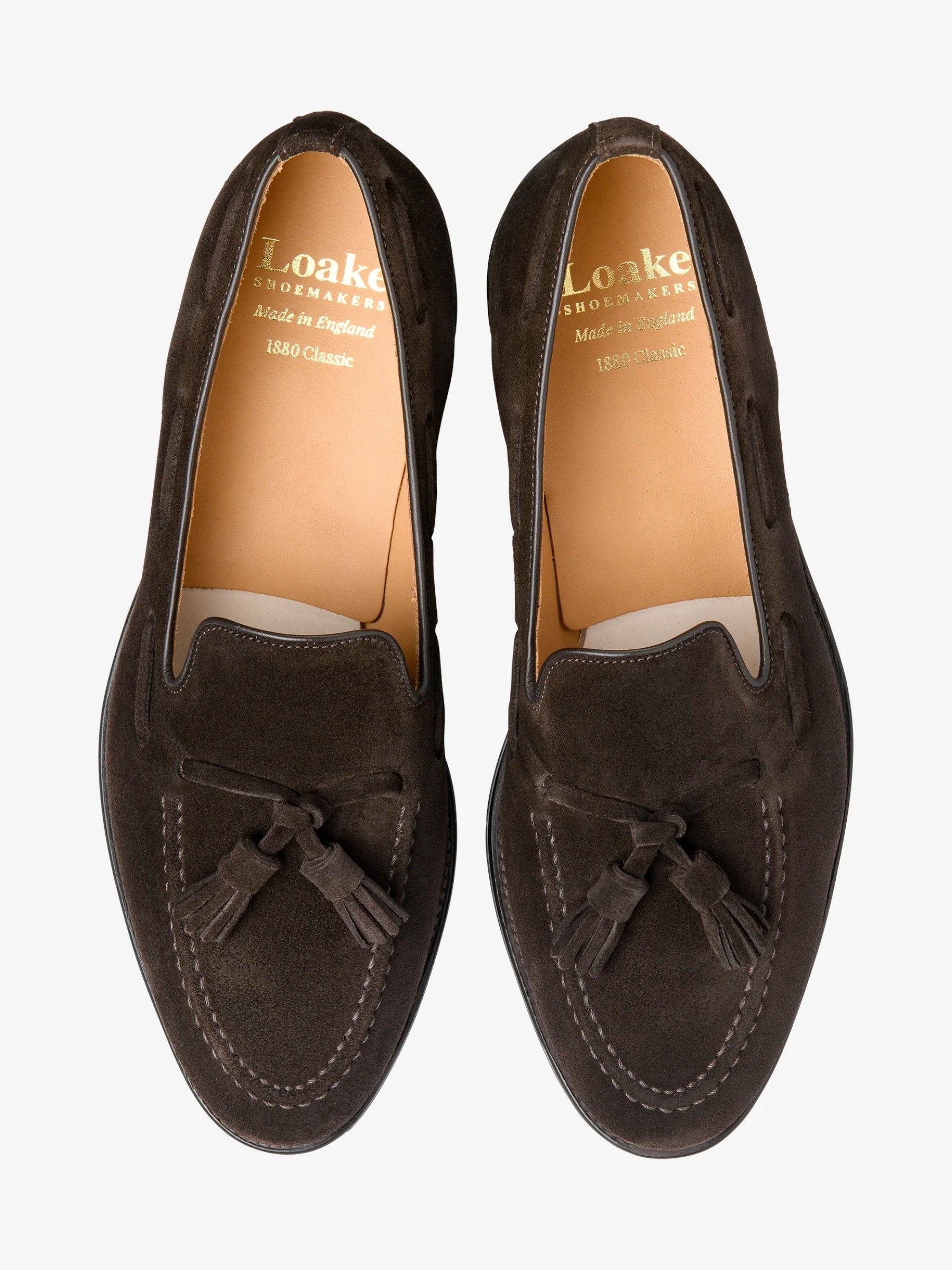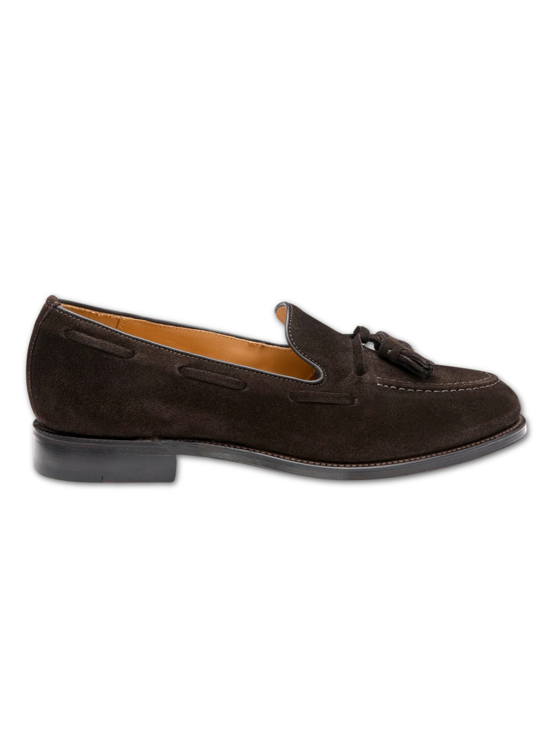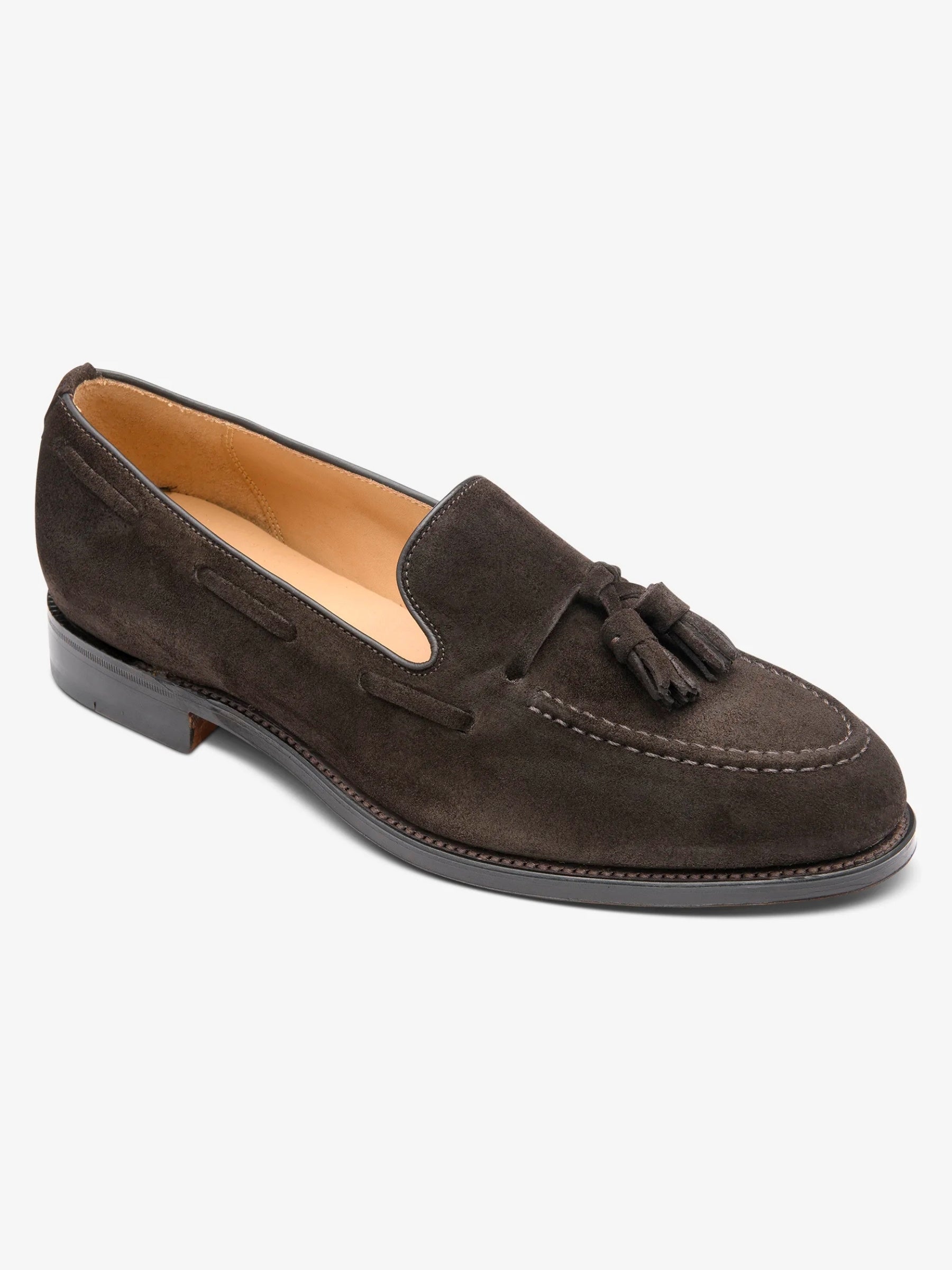 Classic tassel loafer design, Russell features Polo brown suede leather, and a Goodyear Welted leather sole. Russell uses our new ‘College’ last shape and is made in England.