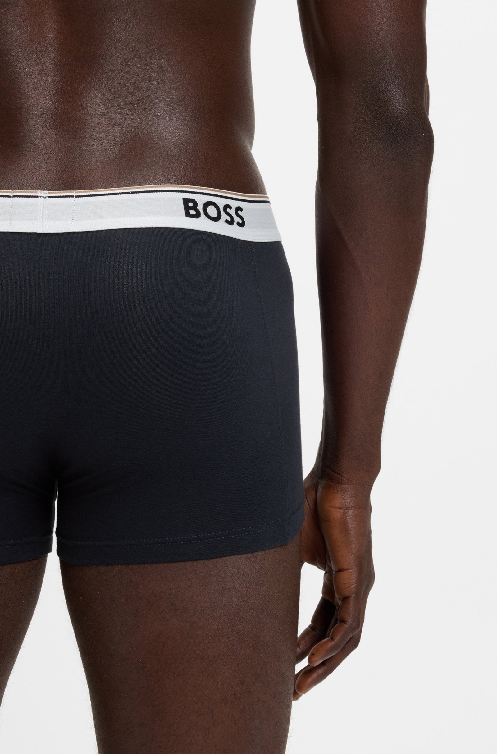 Invest in classic everyday comfort with these three pairs of BOSS Menswear trunks. Cut in stretch cotton with repeat-logo, regular-rise waistbands.