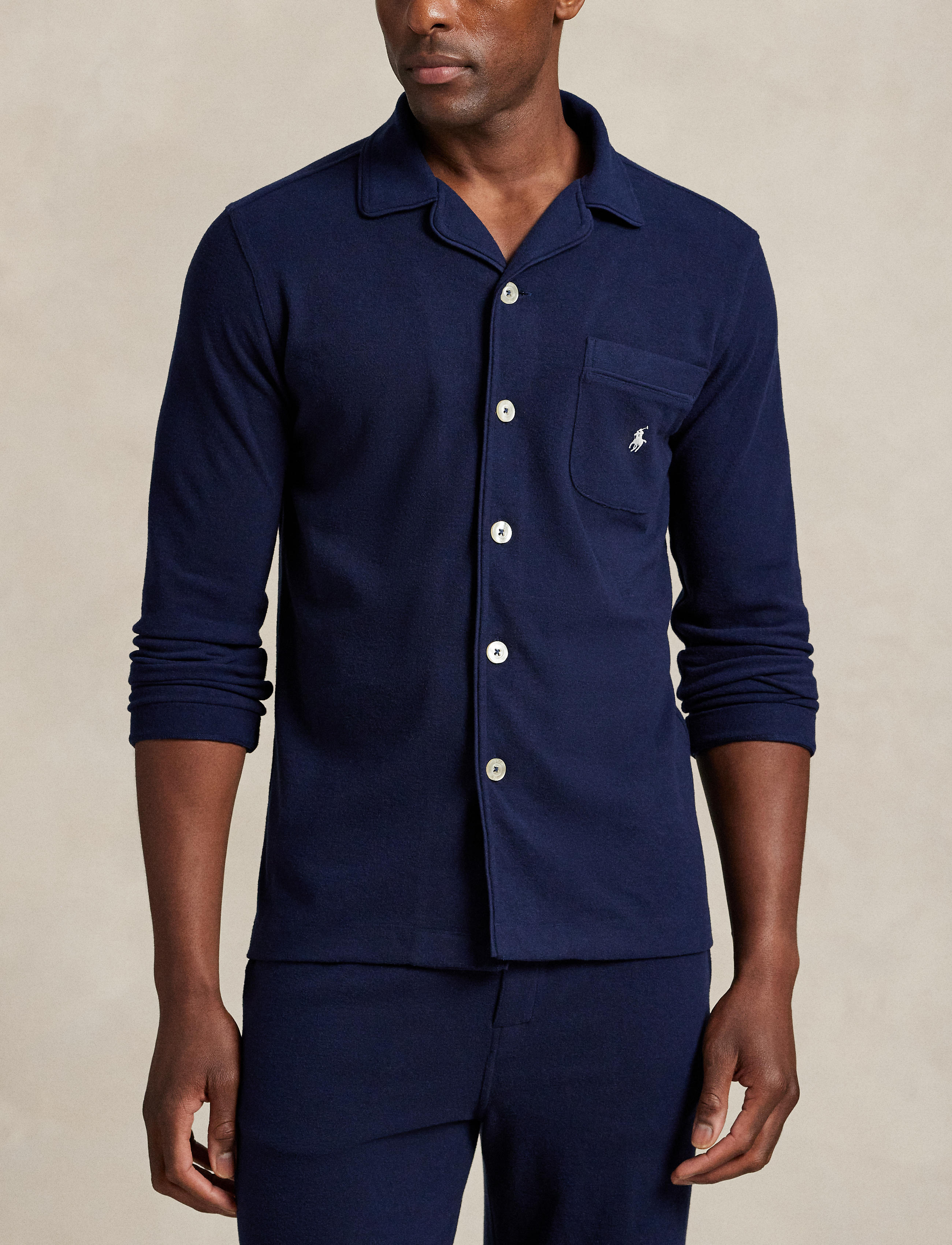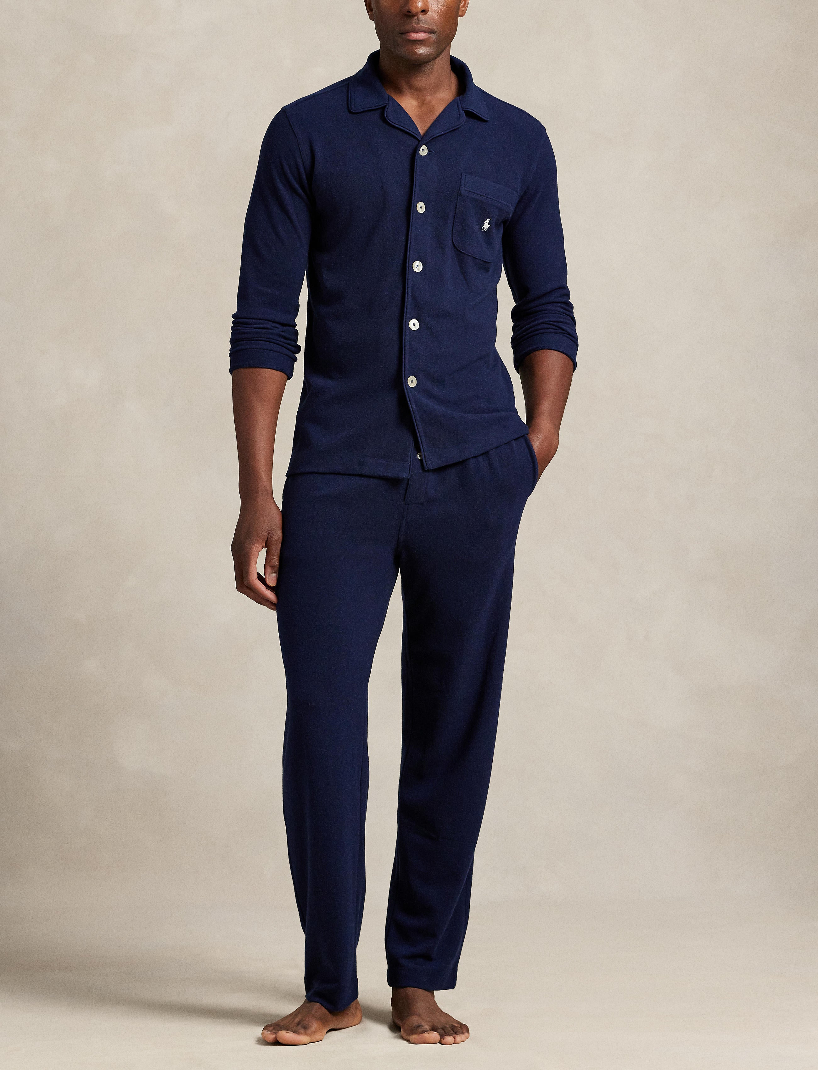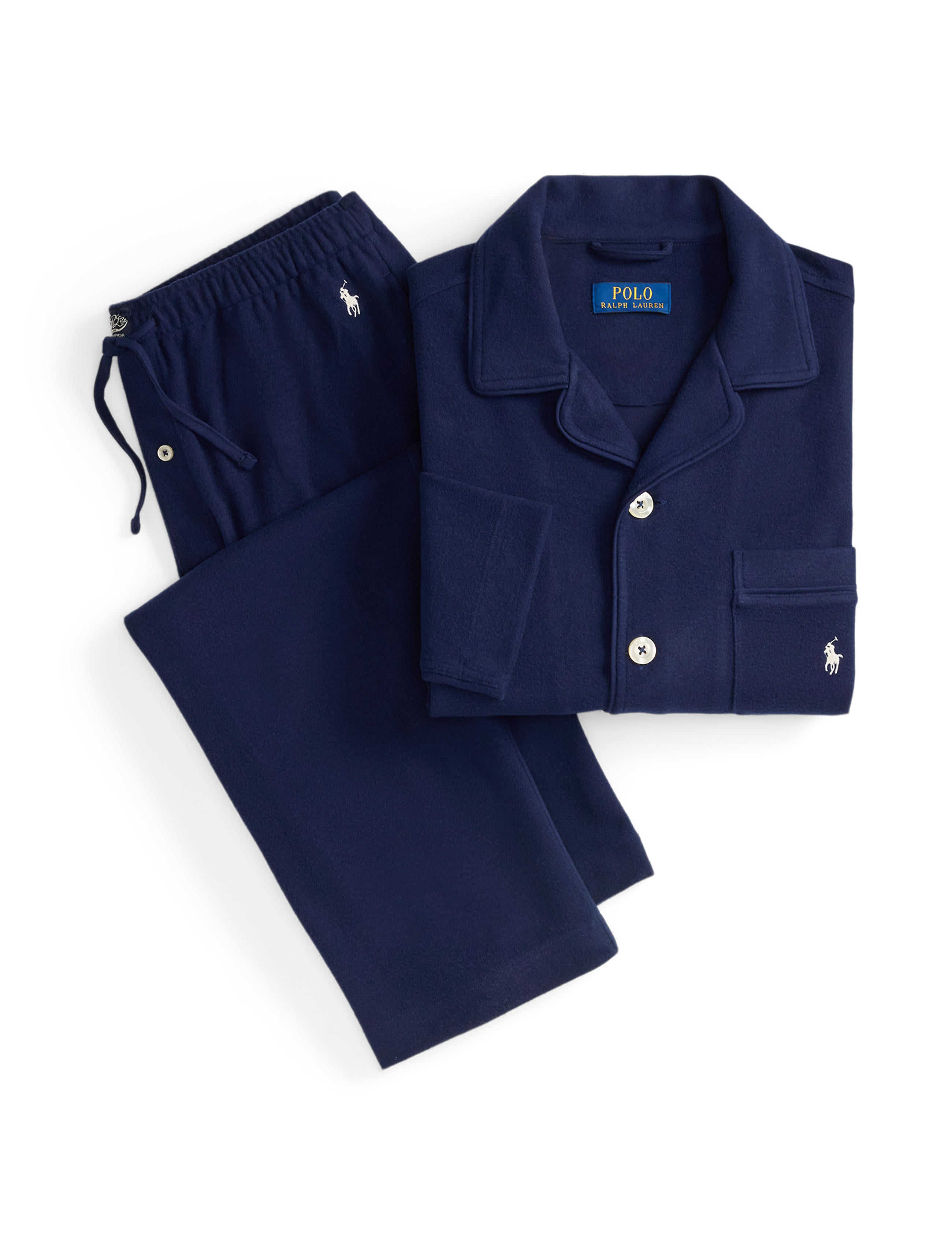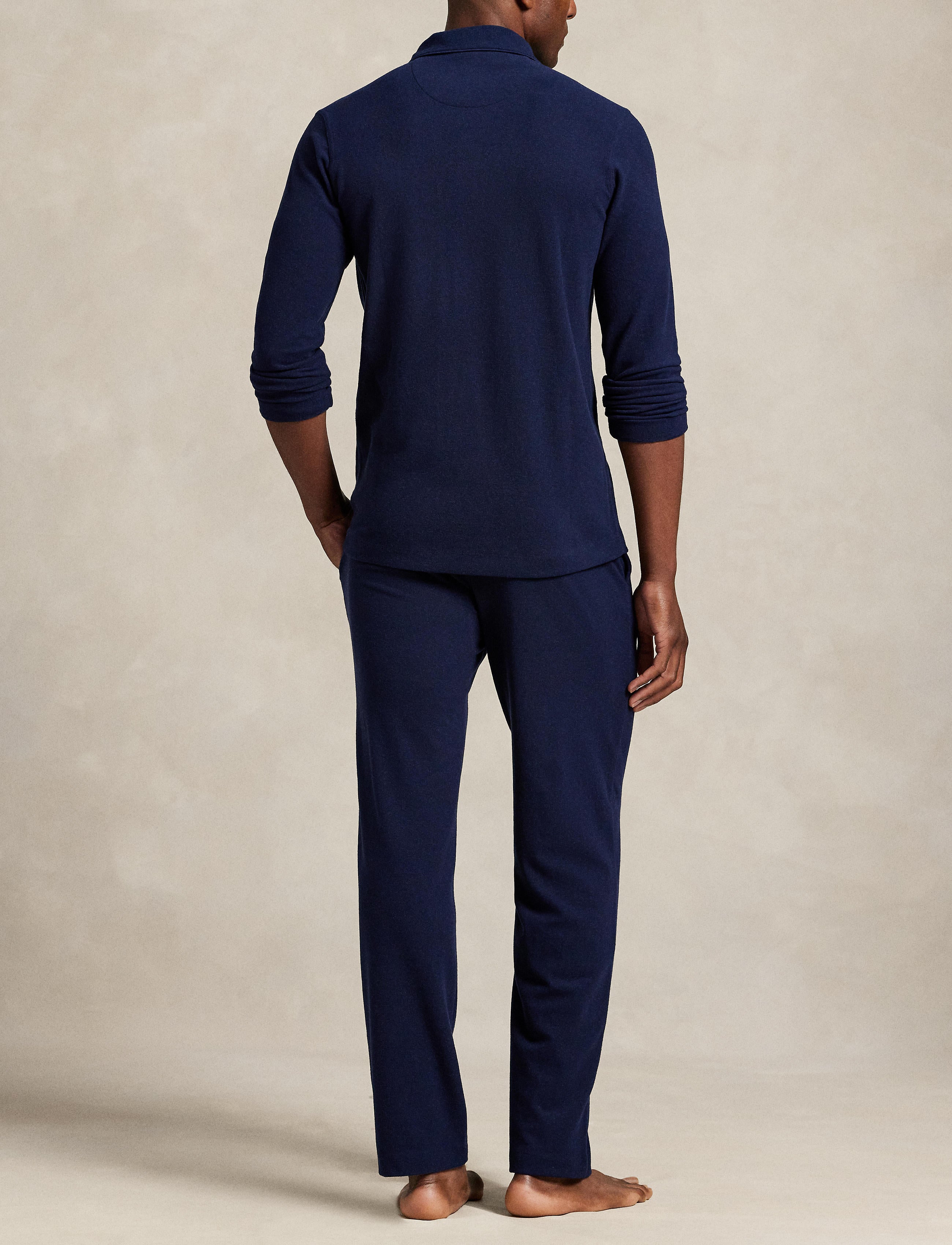Crafted from smooth cotton interlock, the long-sleeve shirt and drawstring trousers in this comfortable pyjama set are finished with contrast tipping and our signature embroidered Pony.