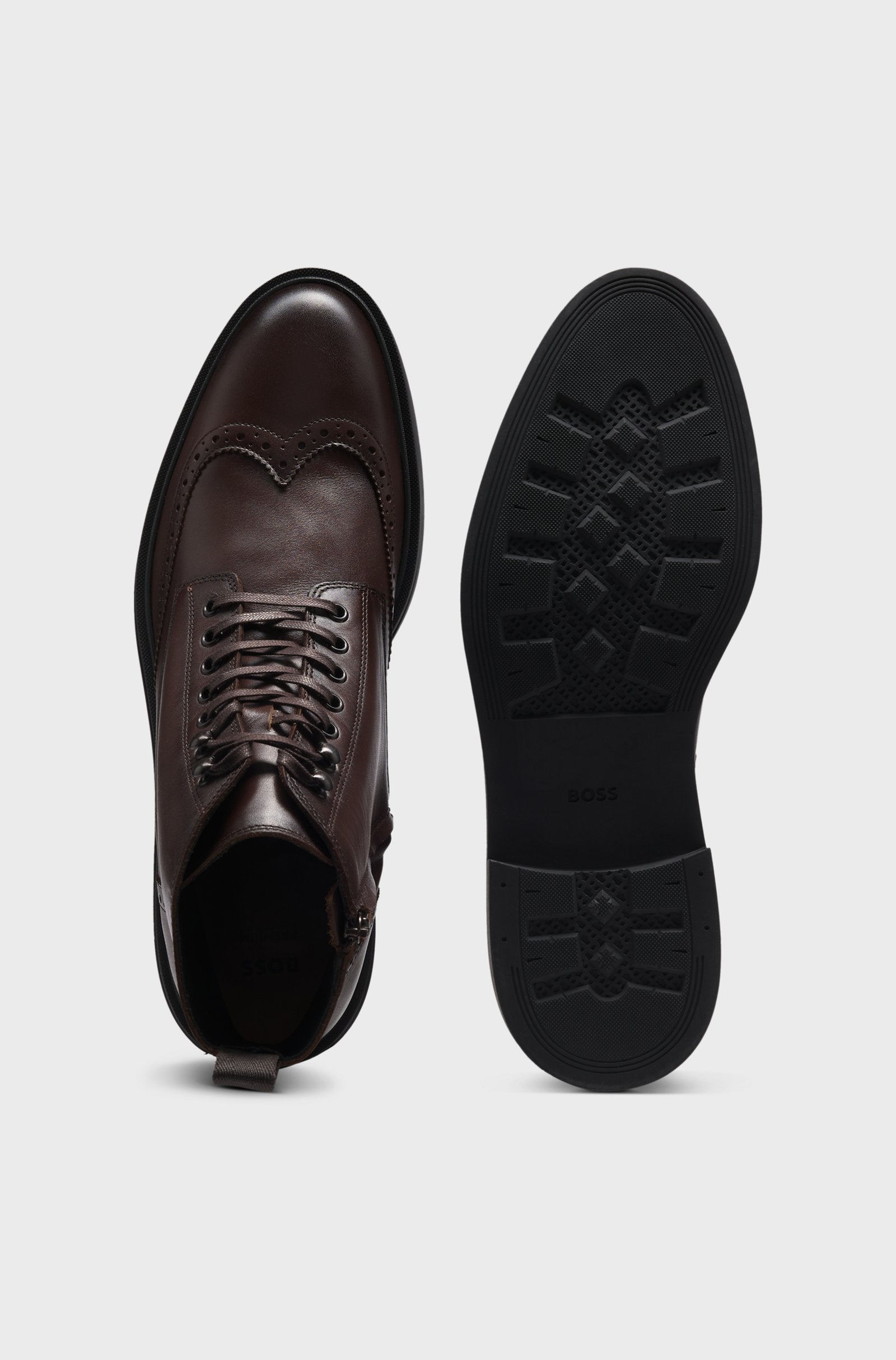With classic brogueing, these BOSS Menswear half boots will become an everyday favourite. Crafted in rich leather with a subtle signature-stripe detail.