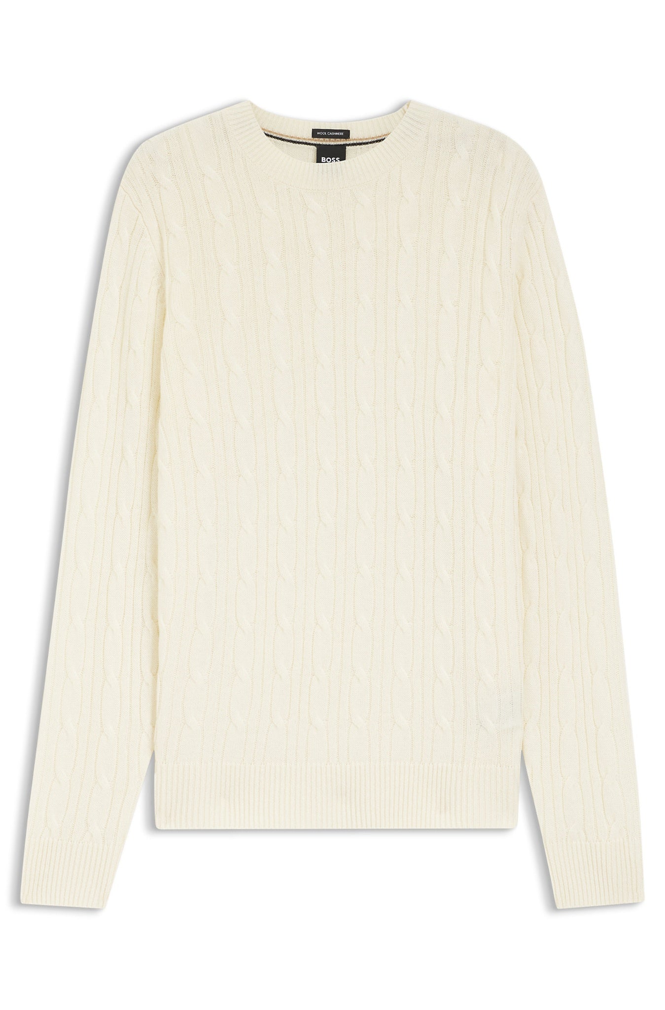 Blending virgin wool with luxurious cashmere, this BOSS Menswear sweater is knitted with a classic cable structure.