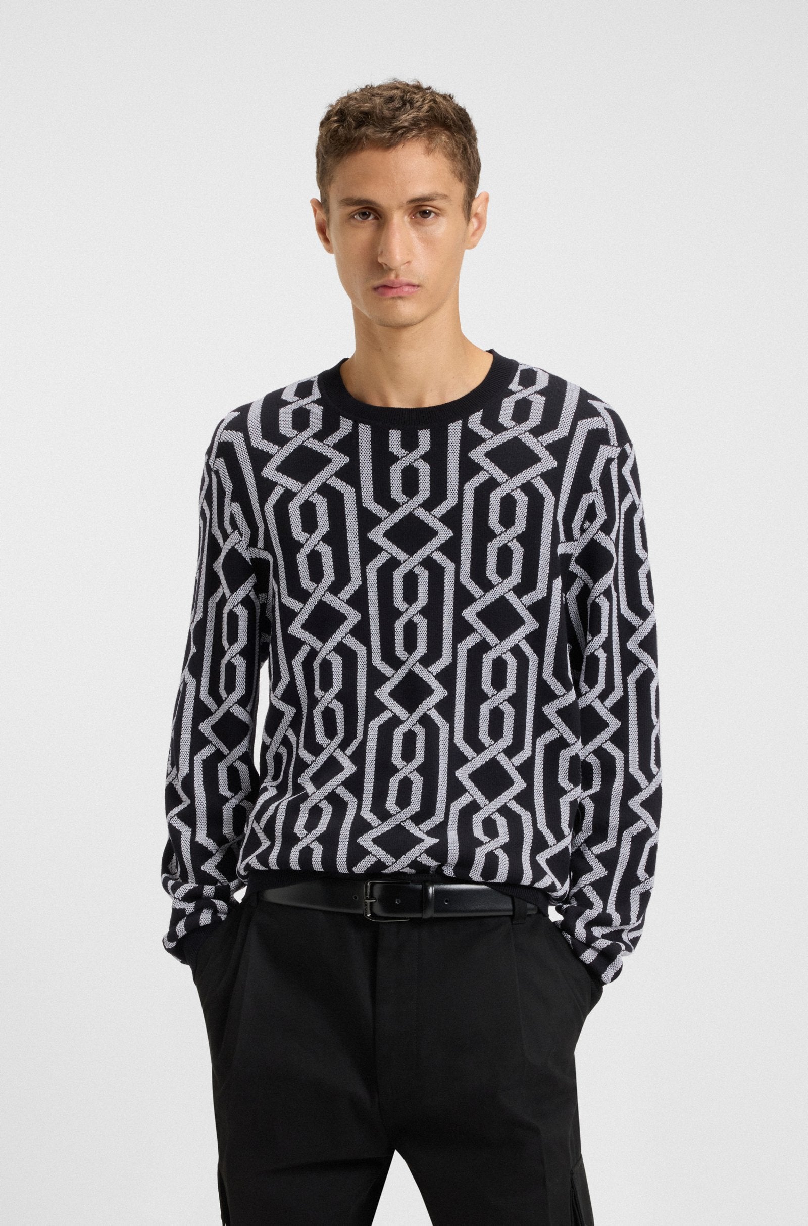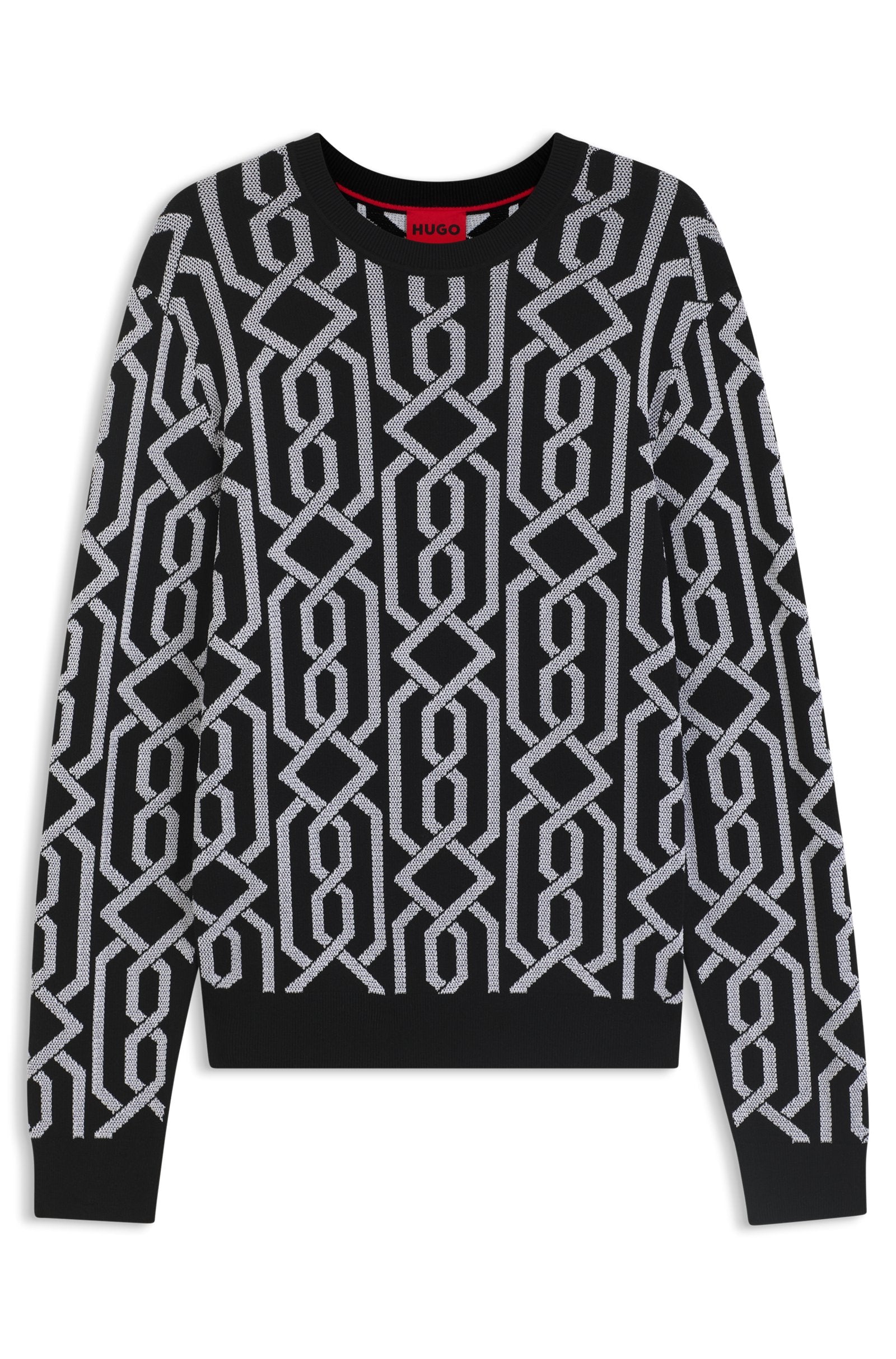 Blended with soft wool, this HUGO Menswear sweater offers statement layering with its modern jacquard pattern and solid trims. Regular fit
