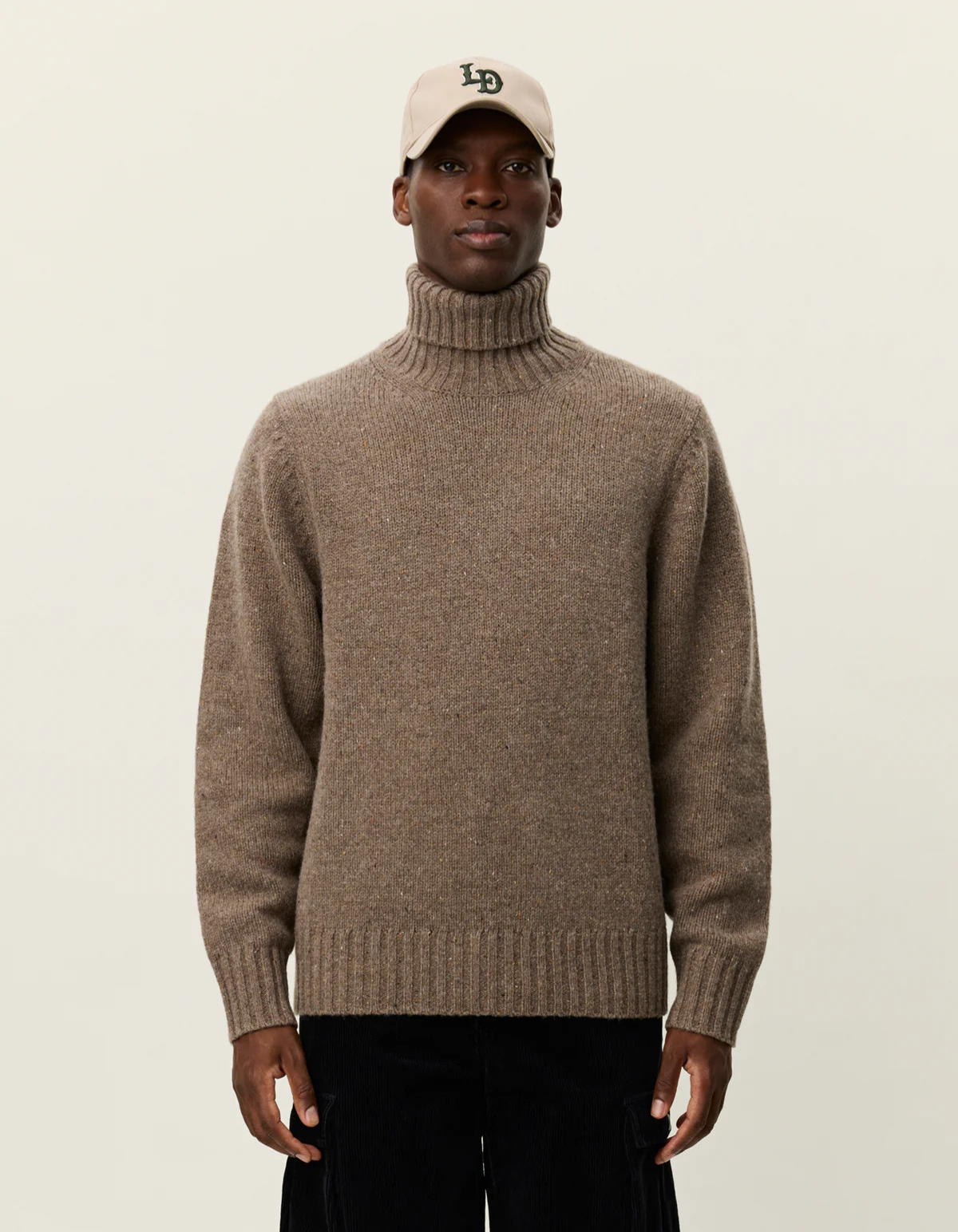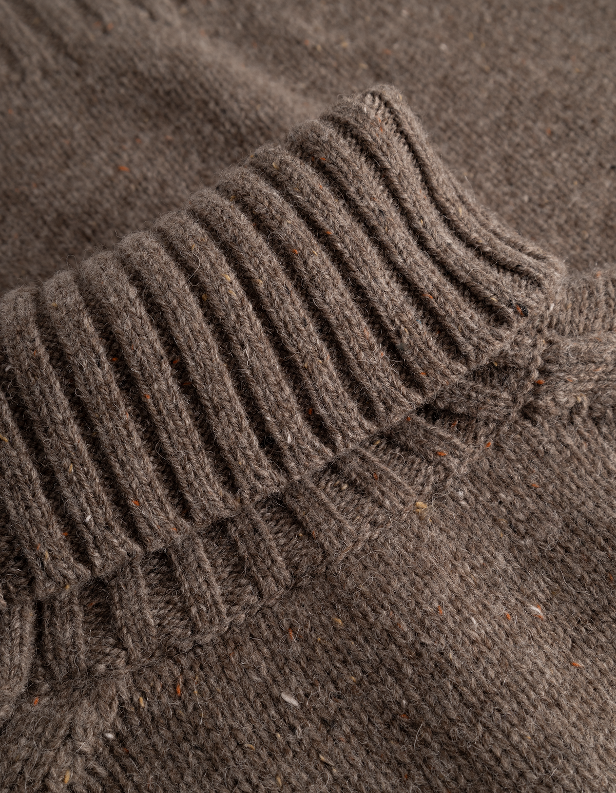 A textured knit with subtle character. The Gary Rollneck is crafted from soft wool with flecked contrast naps, cut to a classic shape with a chunky ribbed rollneck collar.