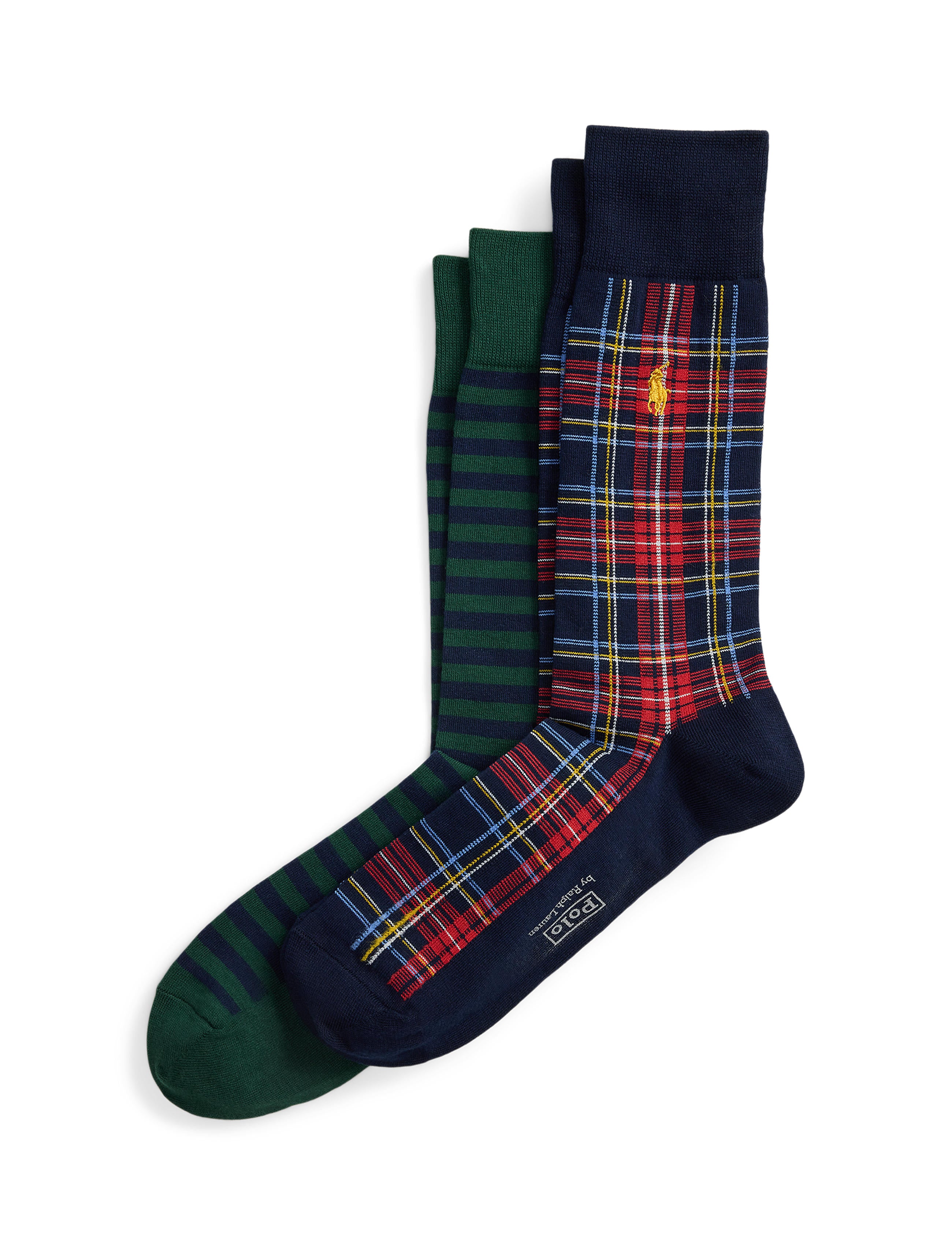 Classic striped and plaid designs define the trouser socks in this two-pack, which are crafted with combed cotton for softness and durability. Each sock is finished with Ralph Lauren’s signature embroidered Pony.
