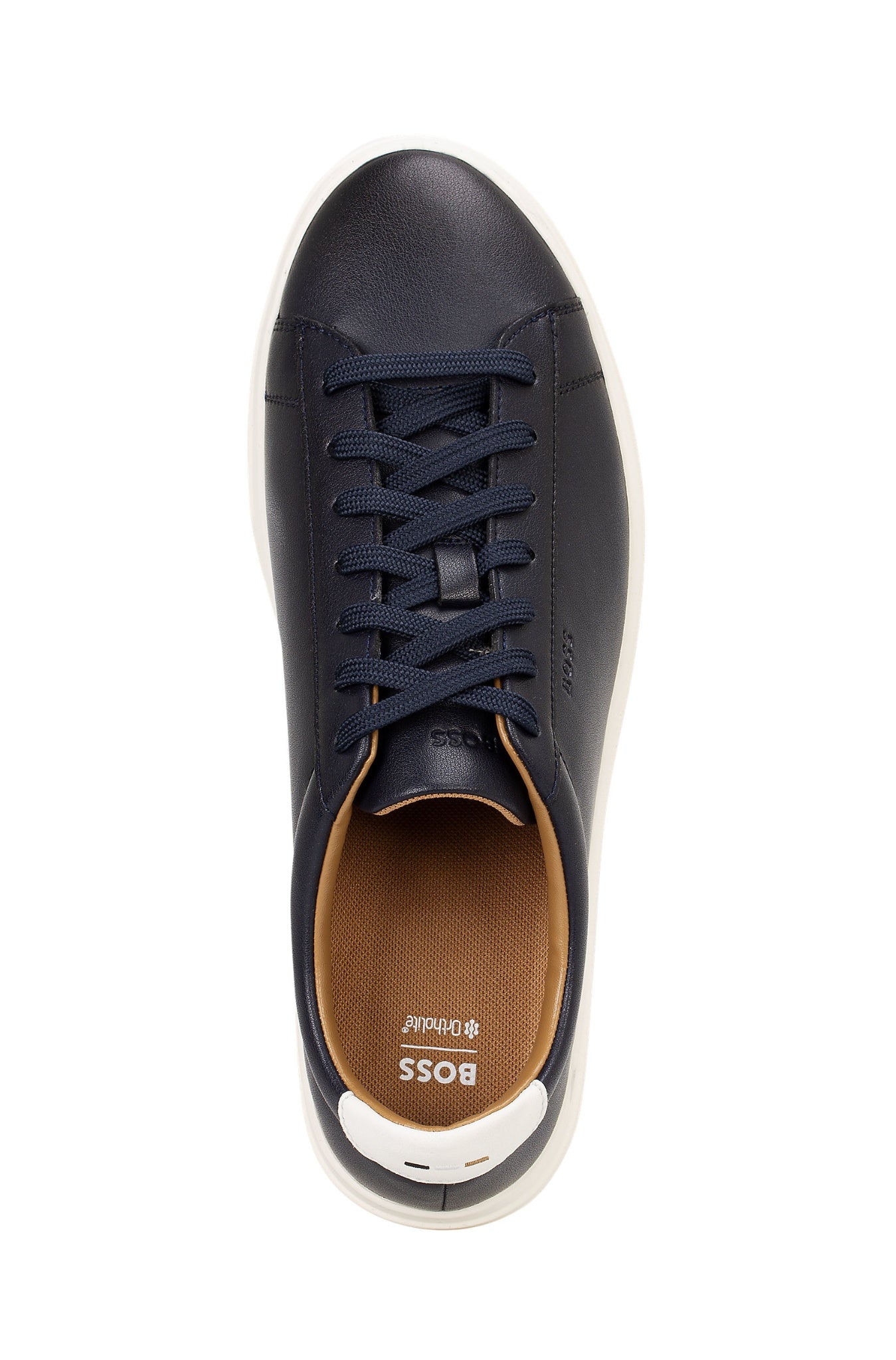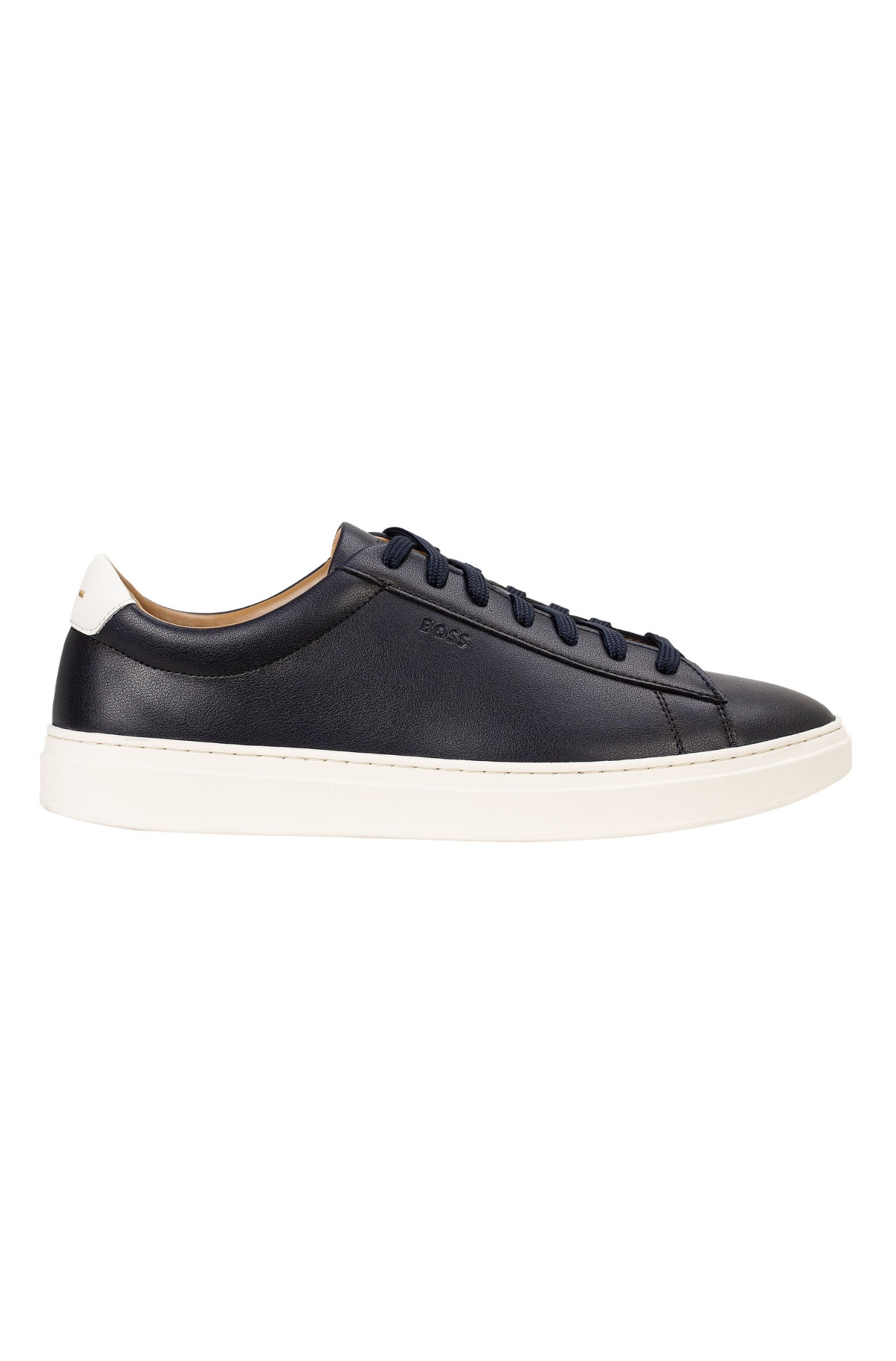 With their comfort insole and rich coated-leather uppers, these BOSS Menswear trainers will round off any look. Subtly embossed logo. Signature-stripe trim.