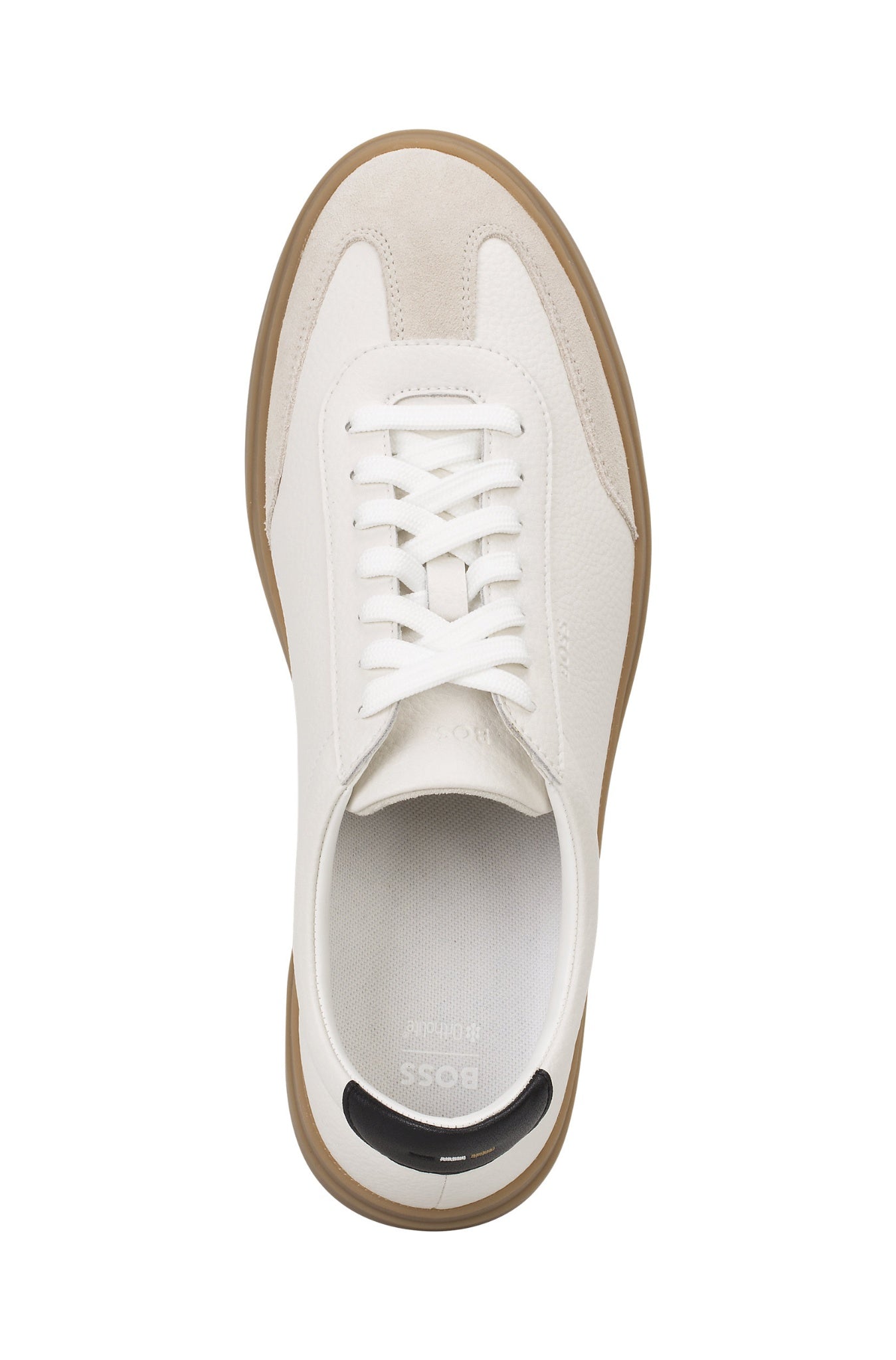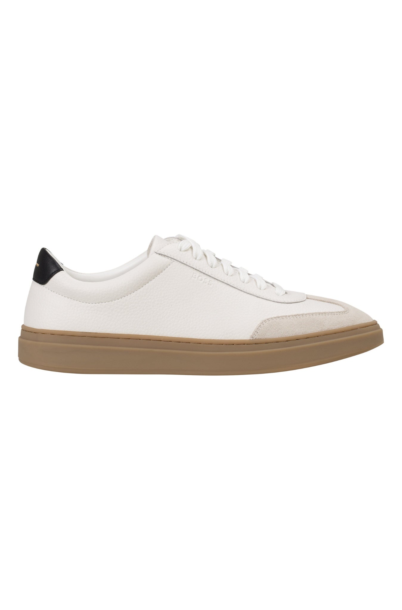 In grained leather with suede accents and a contrast backtab, these BOSS Menswear trainers are packed with casual character. Logo and signature-stripe details.
