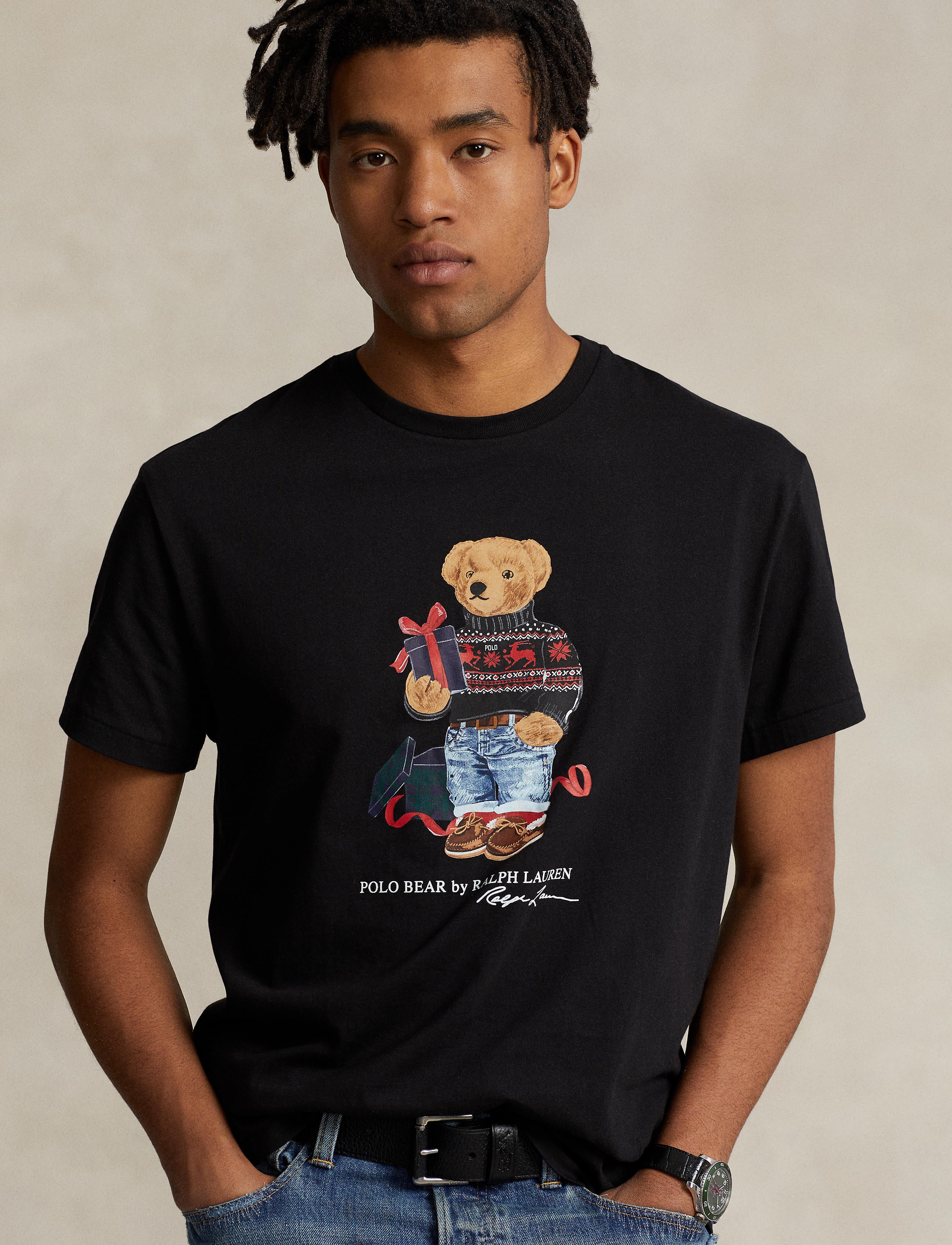 - Polo Bear, "Polo Bear by Ralph Lauren," and "Ralph Lauren" script printed at the center front.
