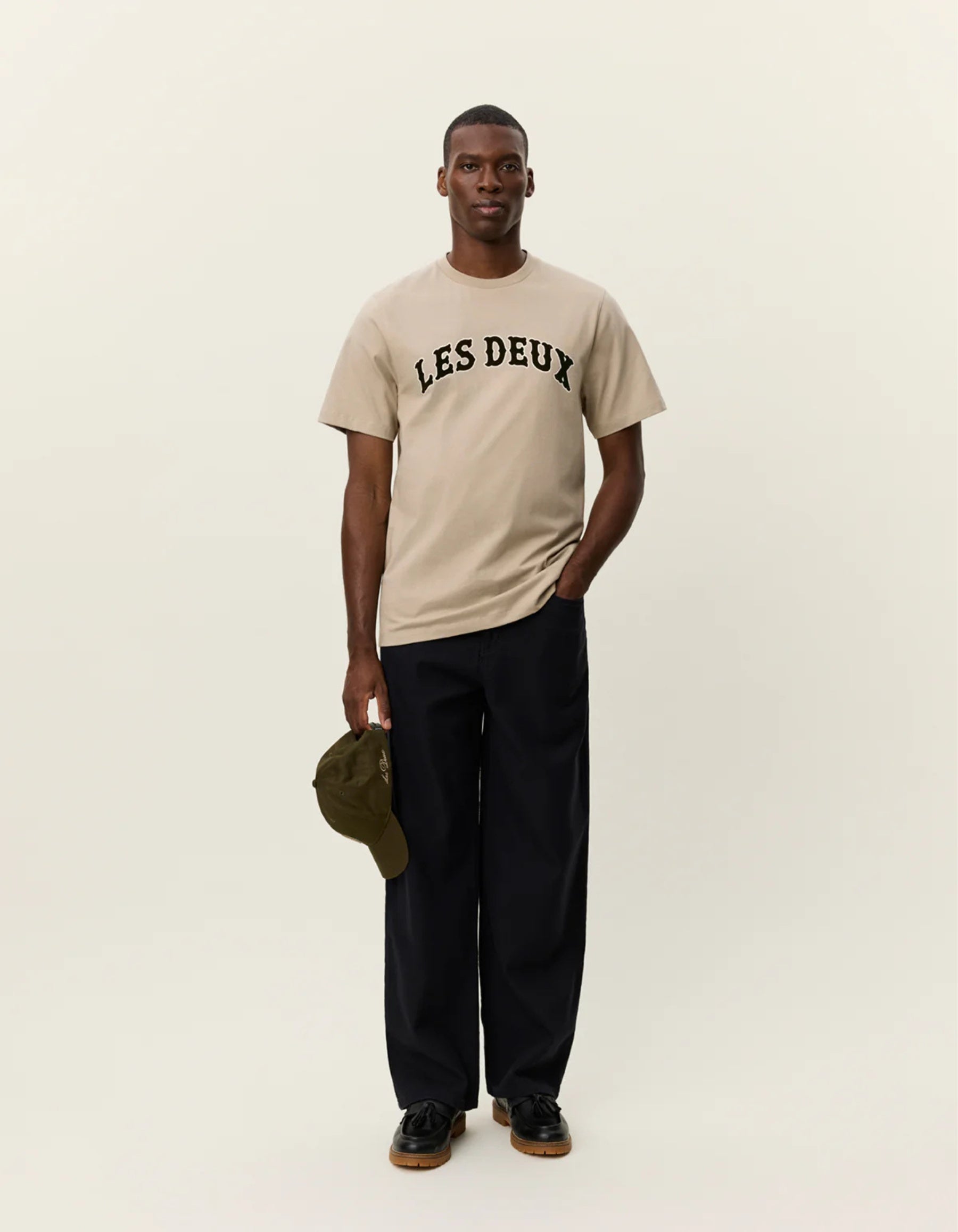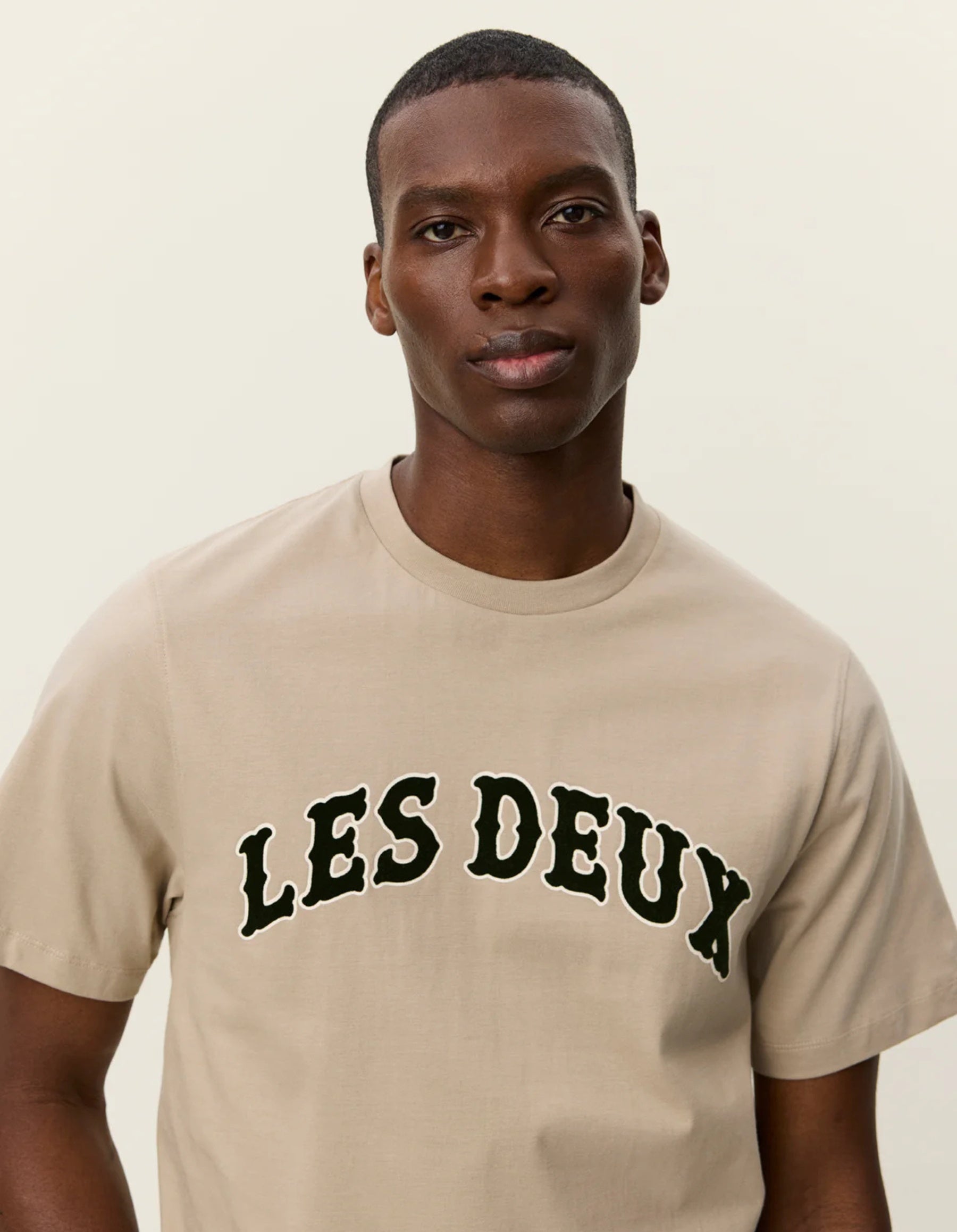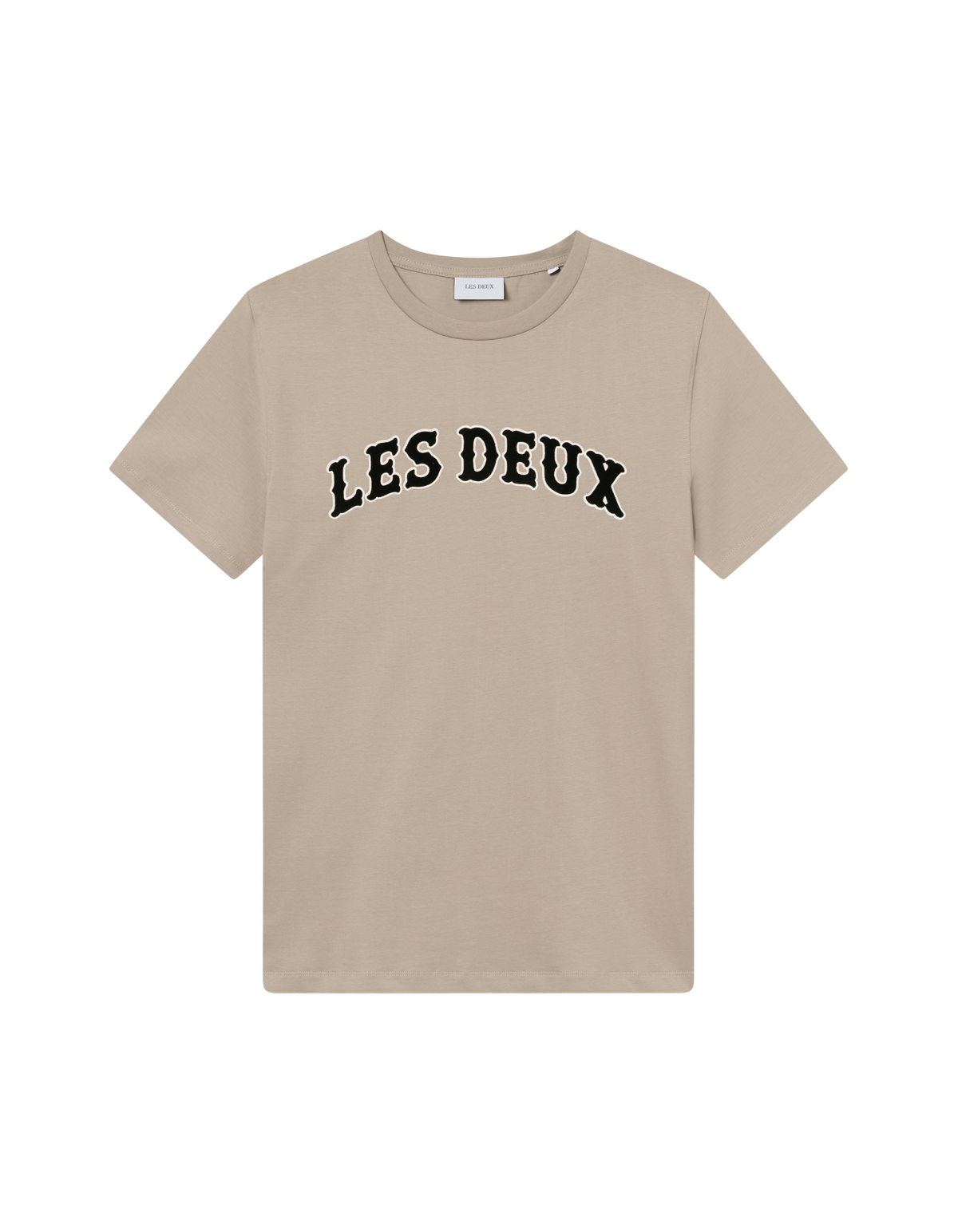 A regular-fit tee in organic cotton, featuring a vintage-style flock-print logo across the chest in a contrasting color.