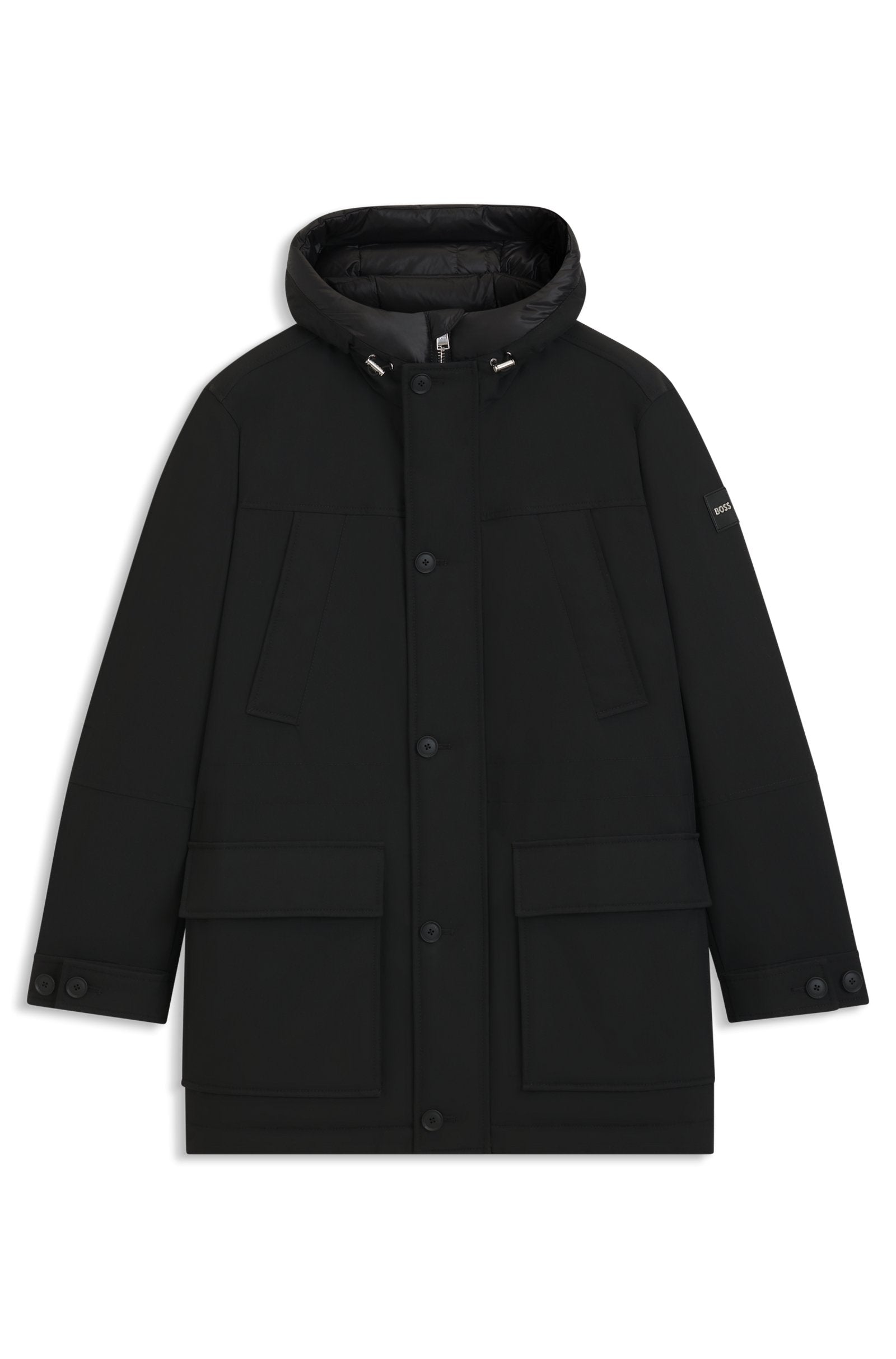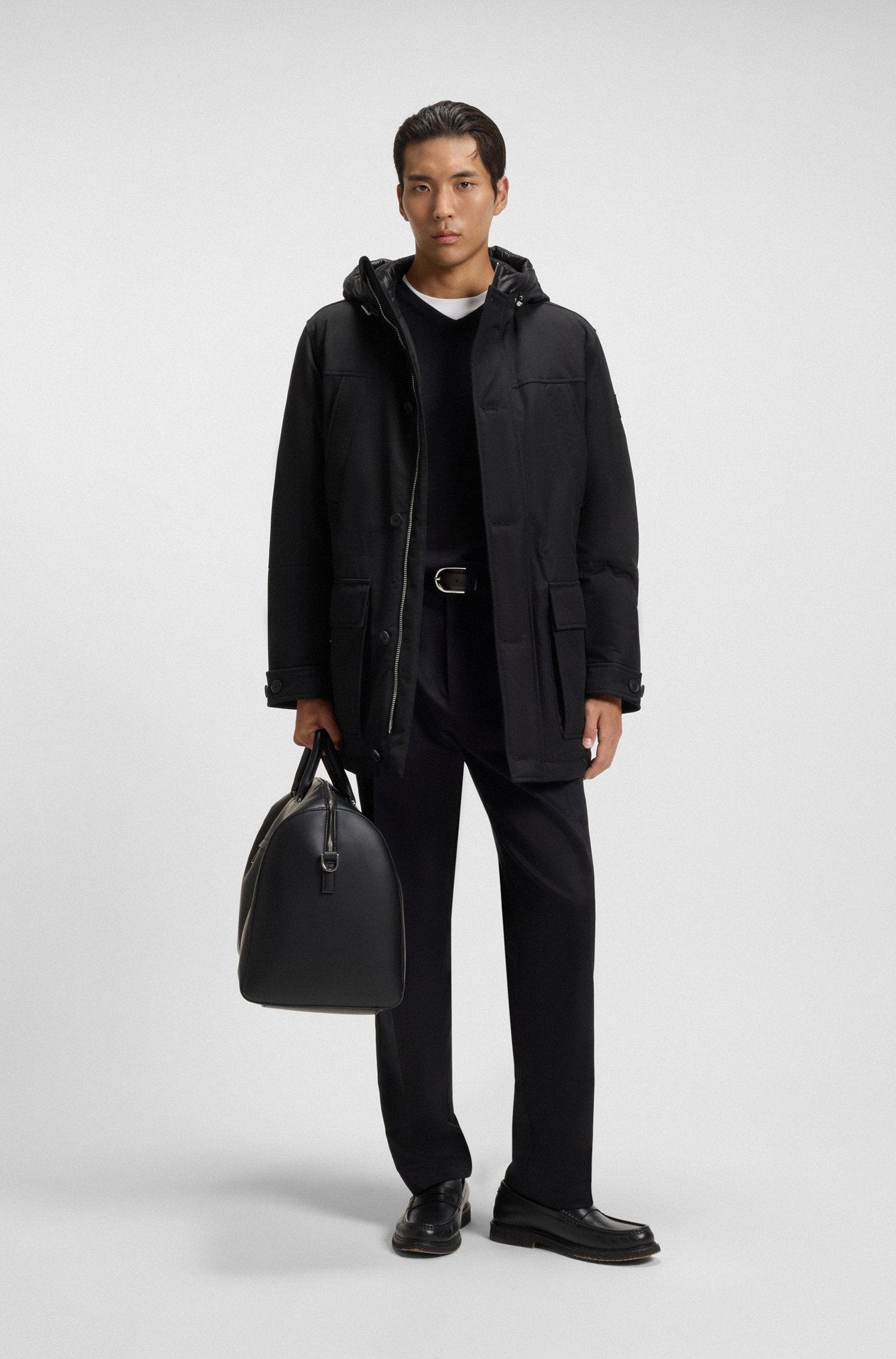 Filled with certified duck down and filling, this water-repellent BOSS Menswear jacket keeps you warm and dry through the seasons. Adjustable hood.