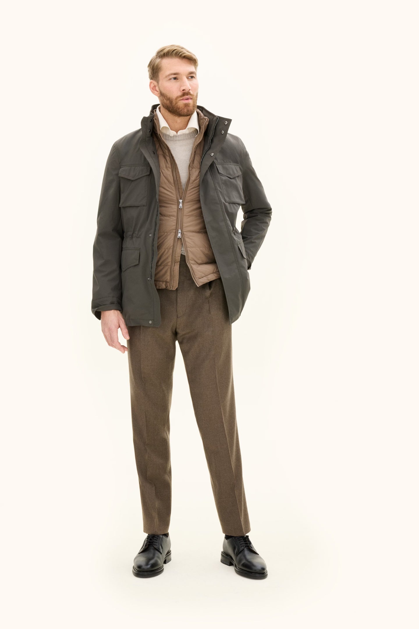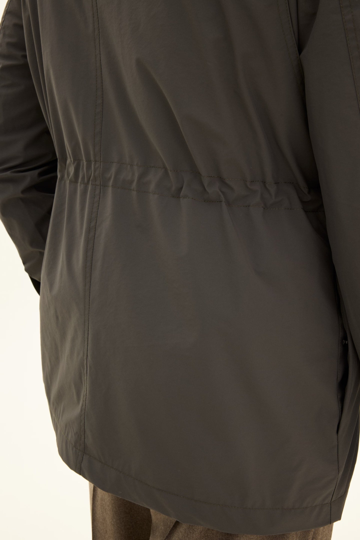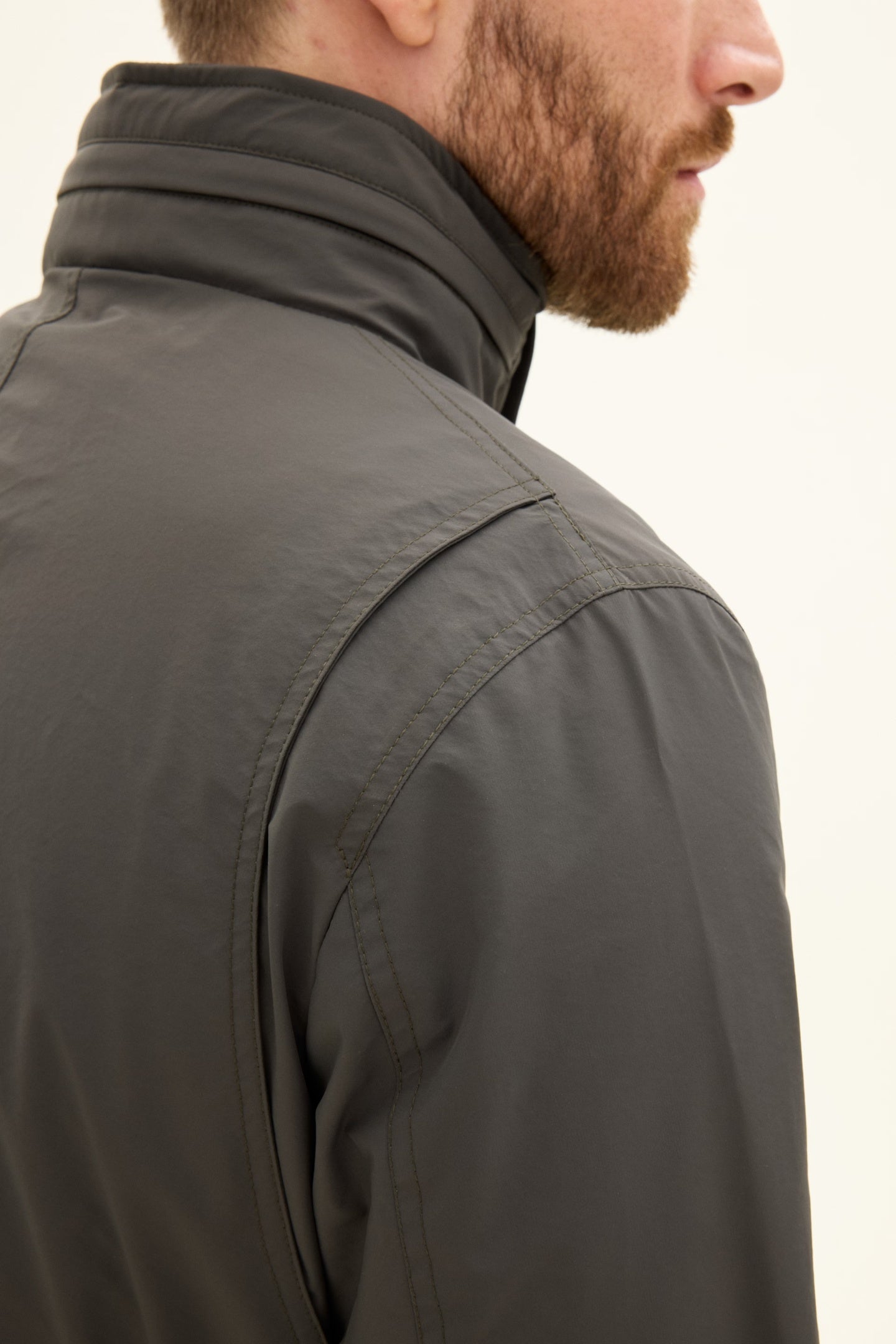 Our Nylon Shell field jacket is a stylish and functional version of the classic M-65 jacket designed to work as a blazer or a more casual knit sweater. With six pockets on the outside and three inside pockets, you have space for everything you need to carry with you and also the opportunity to protect your hands in tough weather conditions. The back is designed with action back to give you additional mobility in the garment and the waist is marked with adjustable drawstrings for a personal fit. The inside is lined with a ripstop lining and contains buttons for attaching our liner vest. Nylon Shell is our three-layer shell material, designed to protect against the elements without compromising on mobility, breathability or style