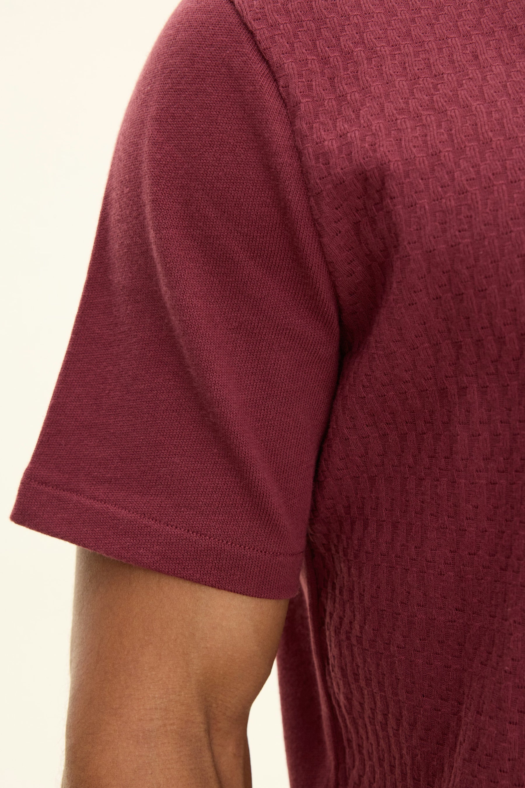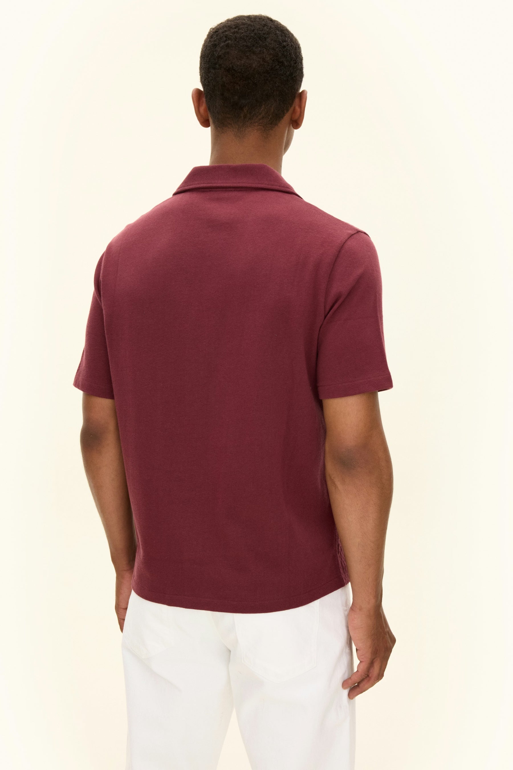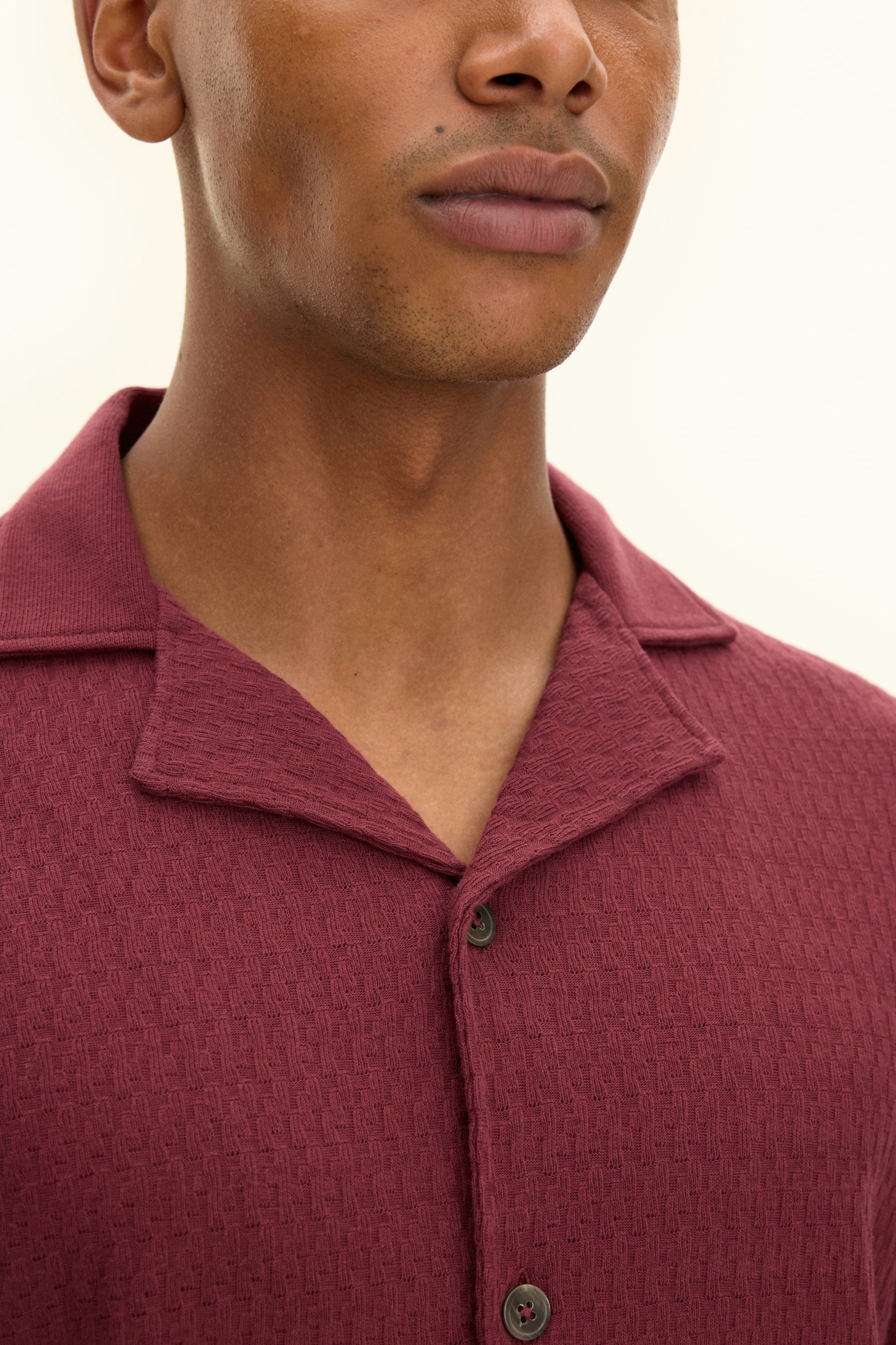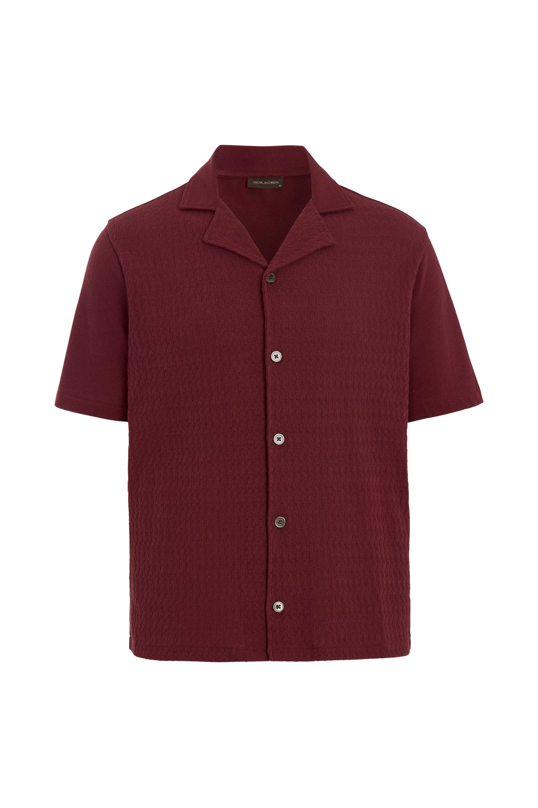 This short-sleeved cotton knit shirt, made from cotton jersey with a finely structured front, has mother-of-pearl buttons for a sophisticated touch. The shirt is both comfortable and airy – ideal for warm summer days.