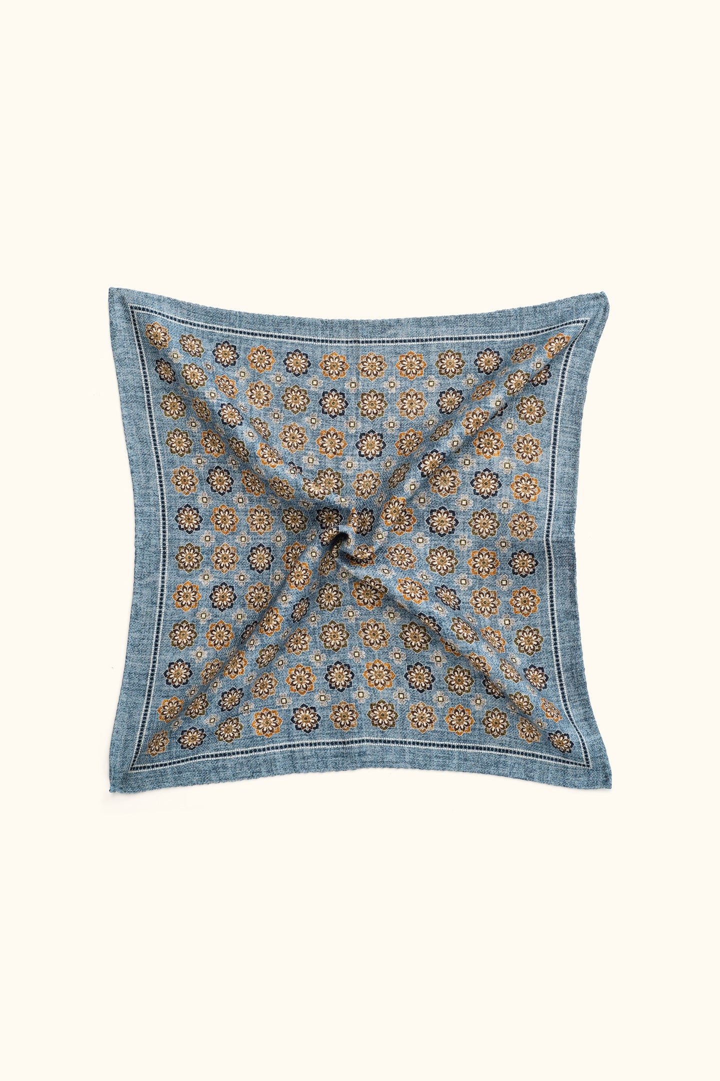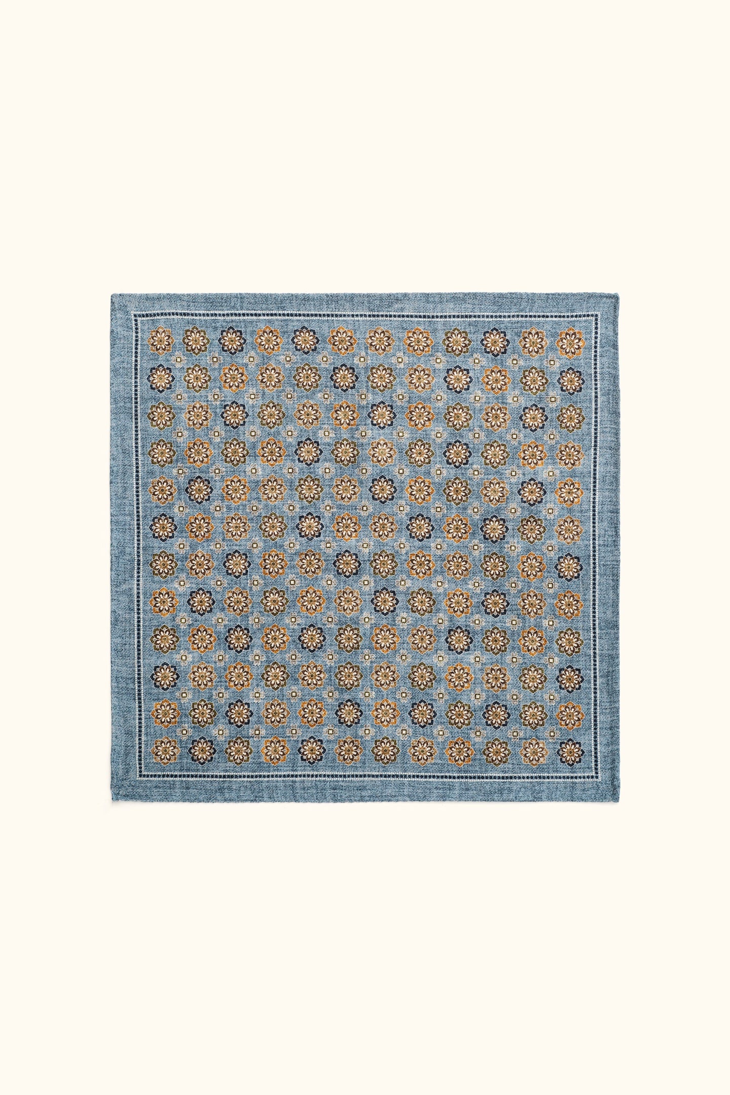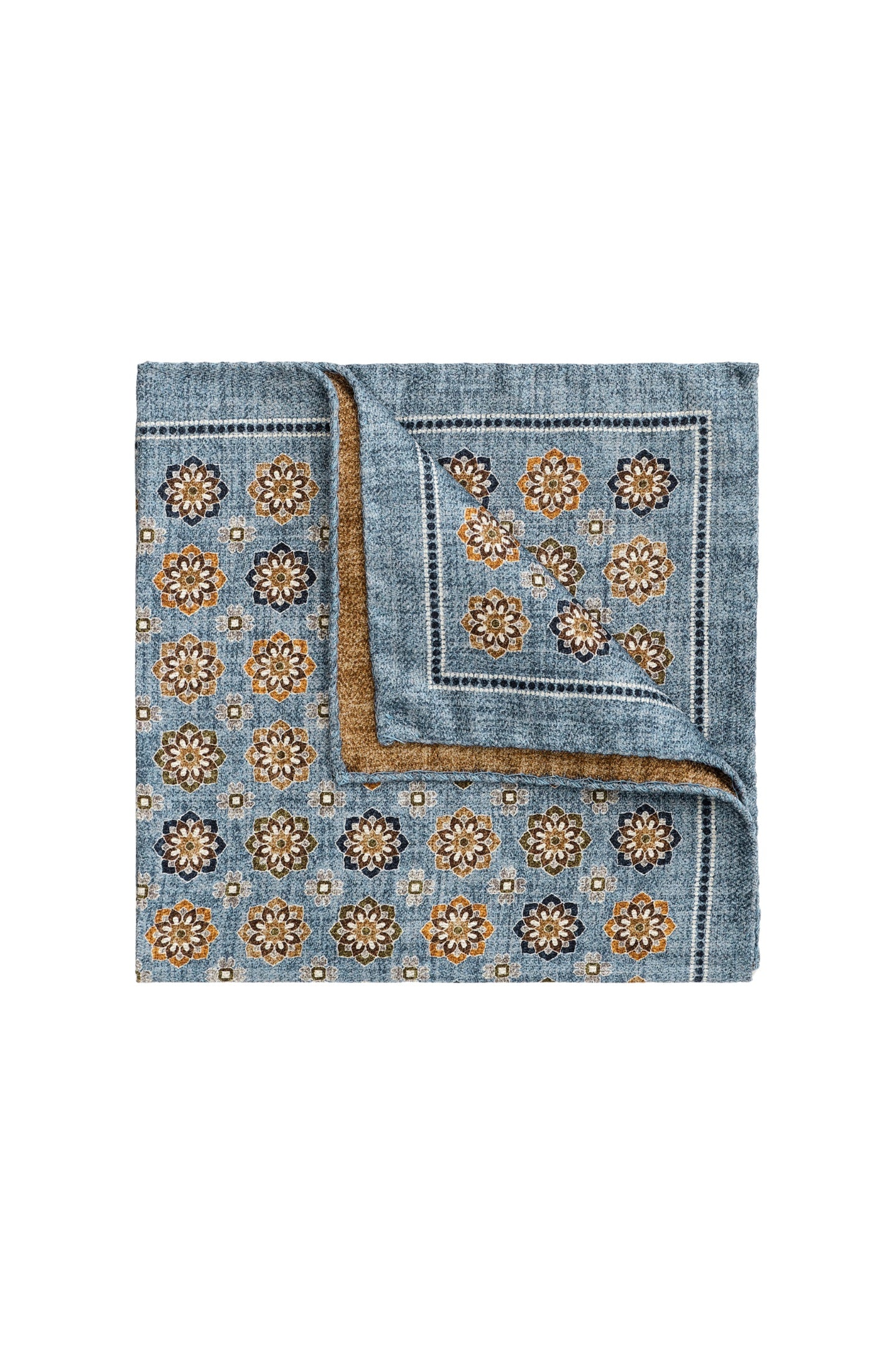 A 100% silk handkerchief with a subtle floral pattern. The natural sheen of the silk gives it an elegant and timeless character, making it ideal as a finishing detail in the breast pocket.