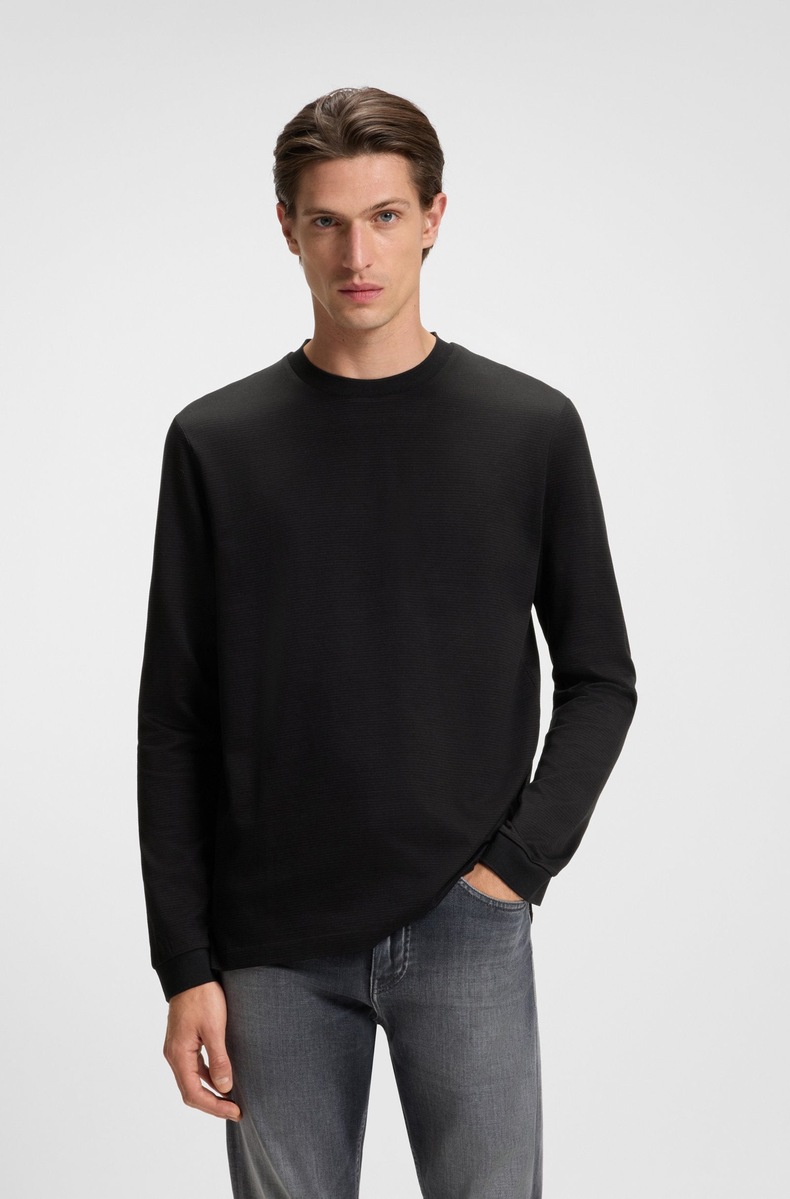 With its subtle pattern and long sleeves, this BOSS Menswear T-shirt will work for a variety of looks. Cut to a casual regular fit.