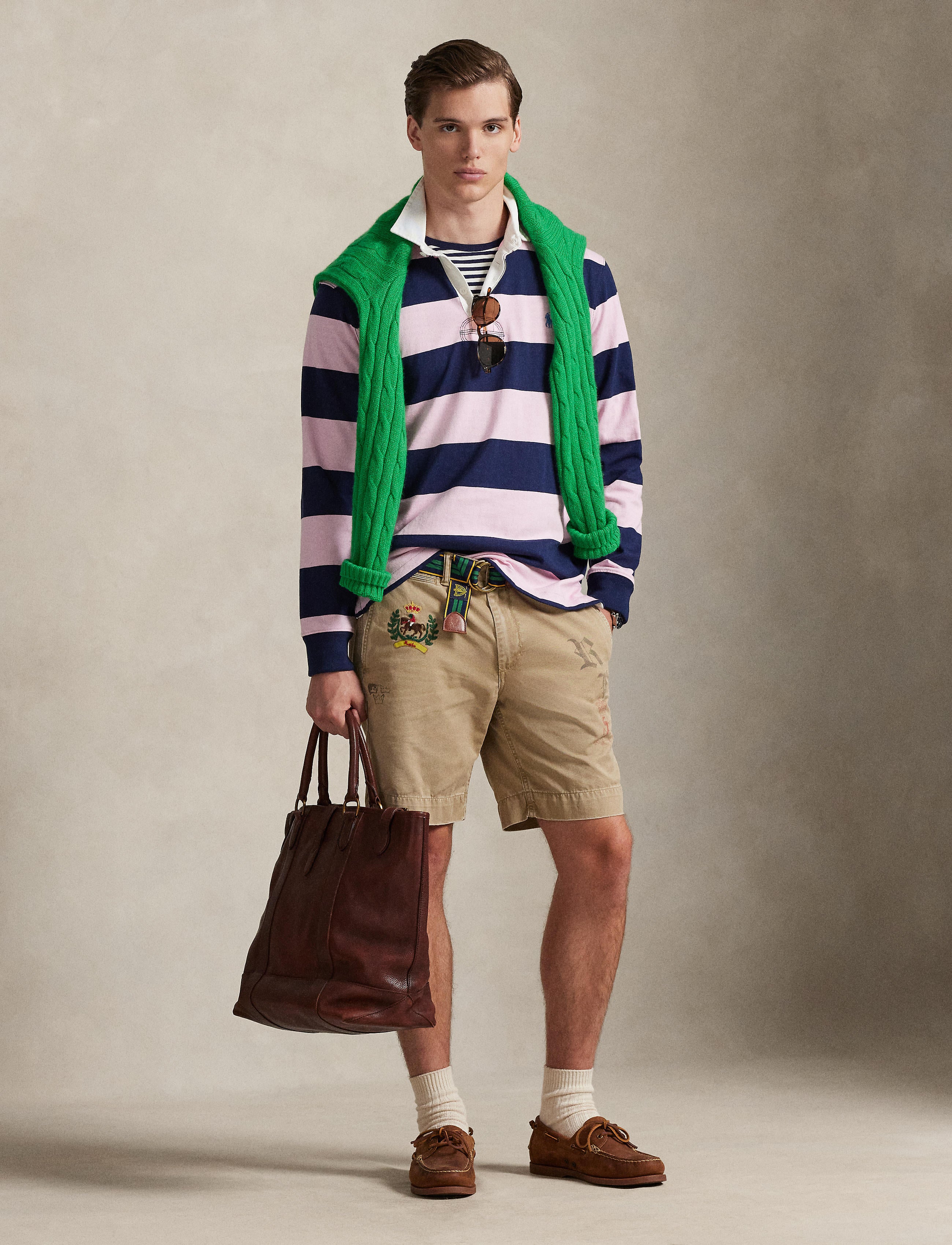 With its athletic details and timeless design, The Iconic Rugby Shirt captures the preppy yet sporty sensibility that has long defined the Polo Ralph Lauren brand. This version features all the hallmarks of a traditional rugby shirt—the distinctive stripe, white point collar, concealed placket, rubber buttons, and ribbed cuffs. Made with durable cotton jersey that stays true to the sport’s rough-and-tumble heritage, this shirt will stand up to repeated wear on and off the field of play.