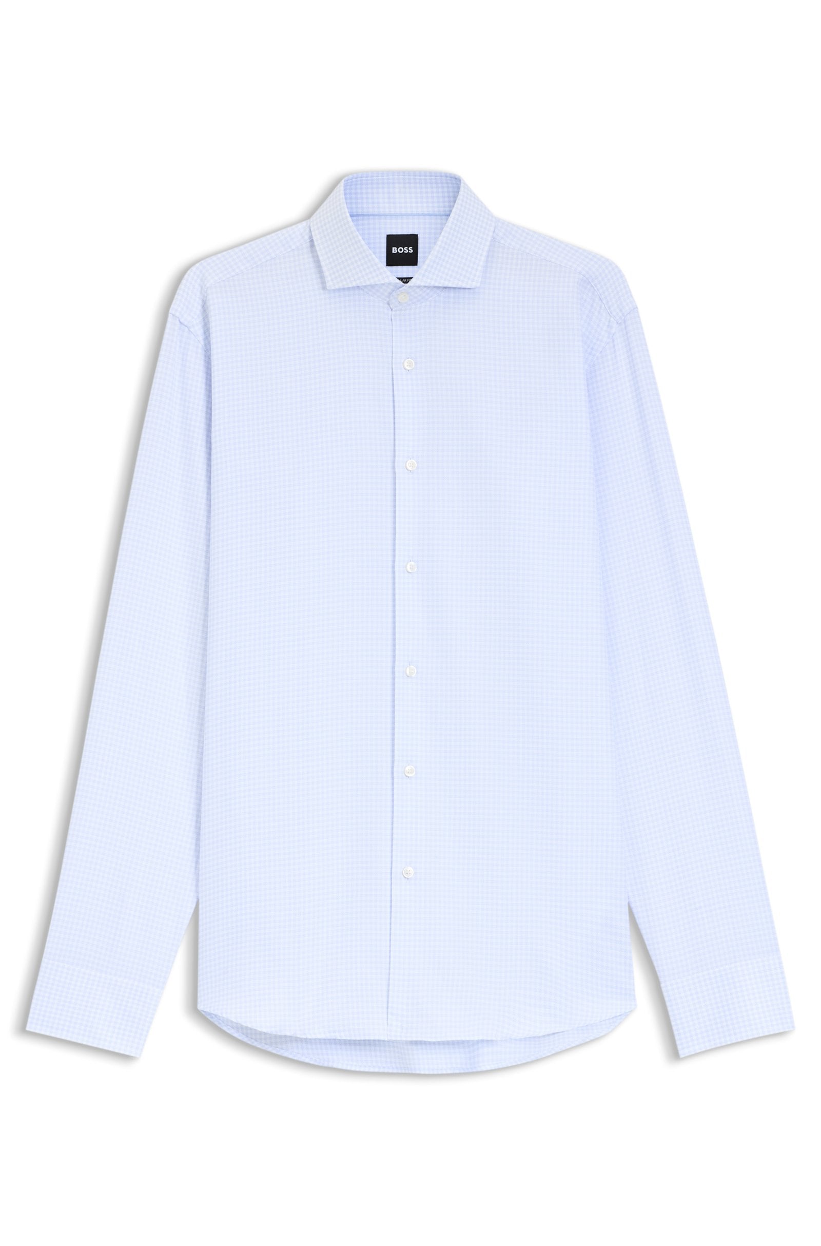 Patterned with a classic check on Italian-made cotton twill, this BOSS Menswear shirt is an elevated business option. Tailored to a straight fit.