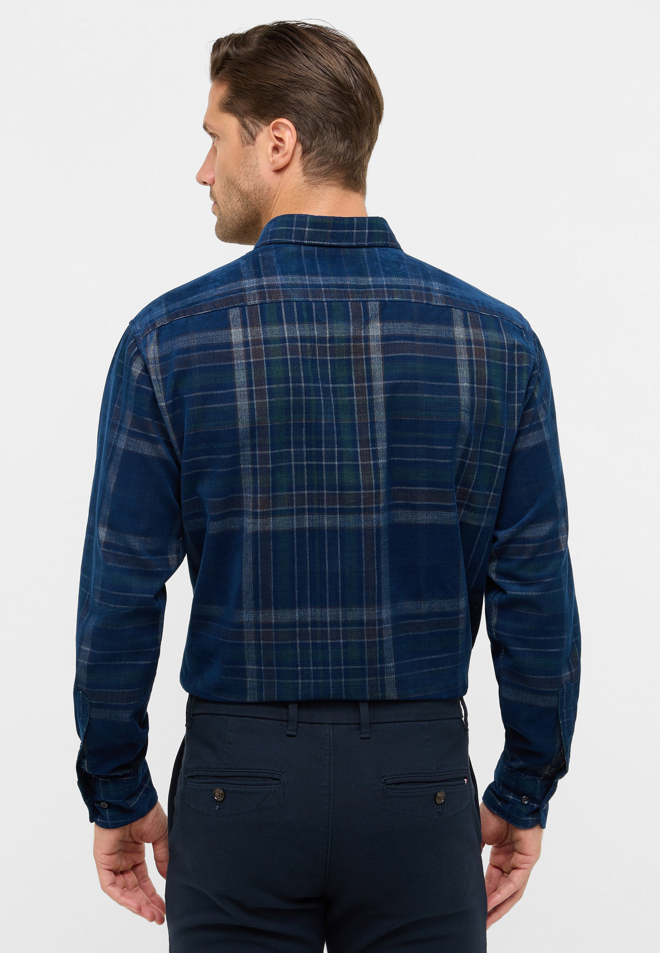 This checked MODERN FIT long-sleeved shirt adds a sophisticated look to your wardrobe. Whether for the office, leisure, home office, or events – it's a casual classic that's easy to combine. The slightly tailored cut appeals especially to men who want a more fashionable interpretation of the classic look. The high-quality, non-iron twill (100% cotton) is exceptionally soft and ensures first-class comfort. The classic button-down collar and the color-coordinated buttons complete the design. The integrated ribbons in the collar stand and on the button placket are further eye-catchers that demonstrate the attention to detail that went into crafting this shirt.