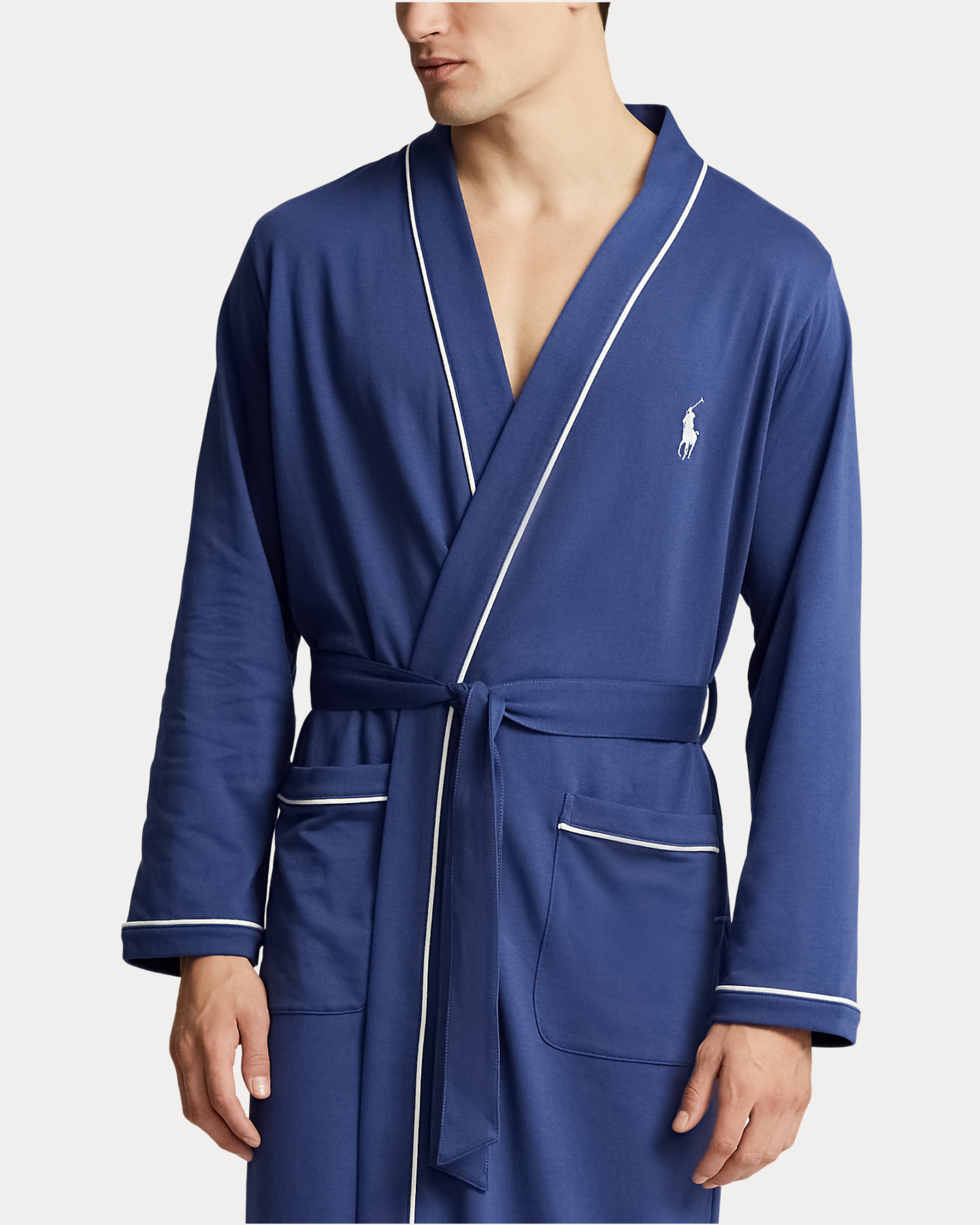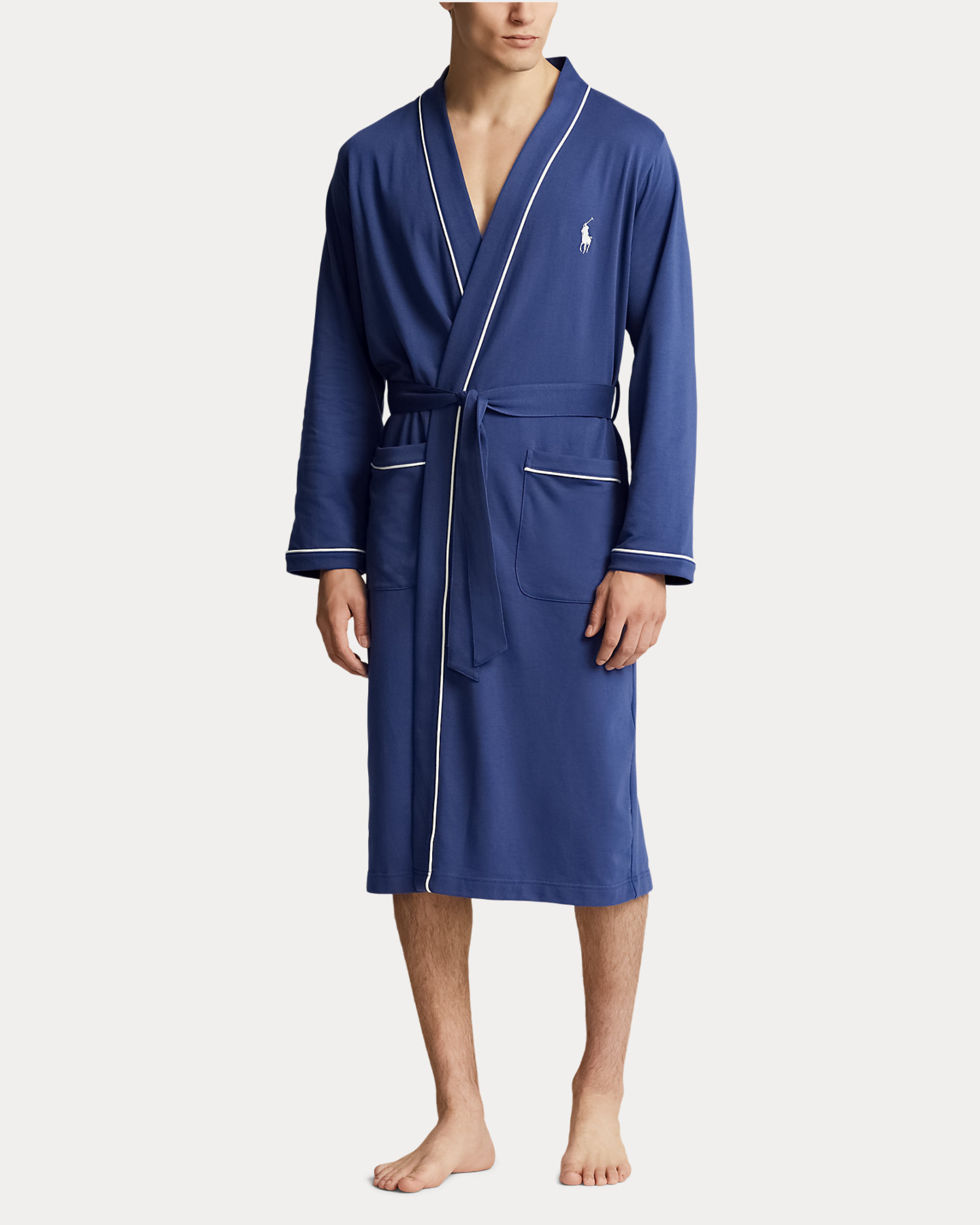 Crafted from soft cotton-blend jersey, this lounge-ready robe is detailed with contrast piping and our signature embroidered Pony.