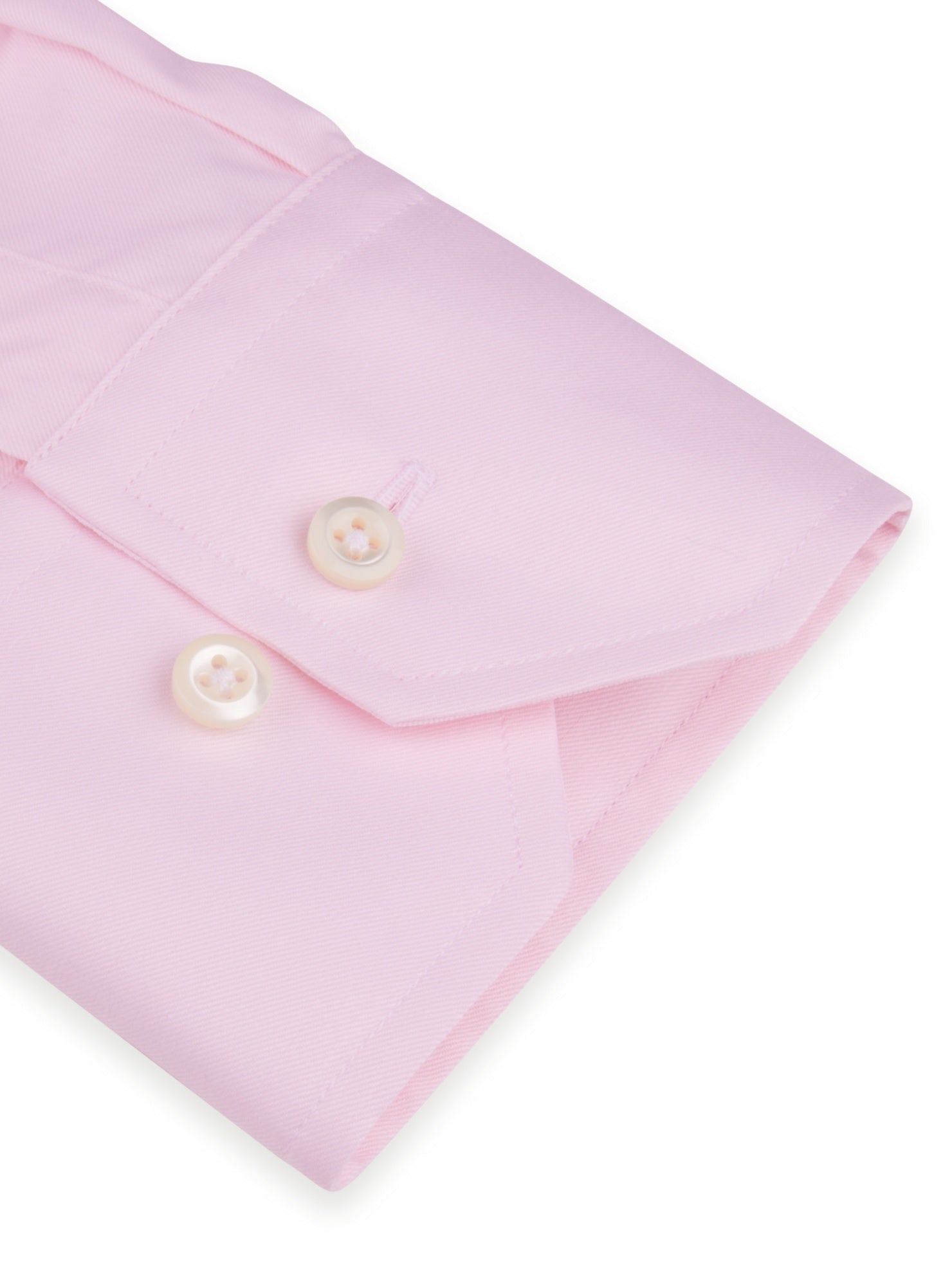 An essential piece in anyone's wardrobe, this sophisticated light pink shirt is a great way to upgrade your wardrobe. It’s made from twofold super cotton and cut for a slim fit. It's finished with two buttoned cuffs and a moderate cut away collar. It will take you from work to a night out. We think it works best with tailored pants.