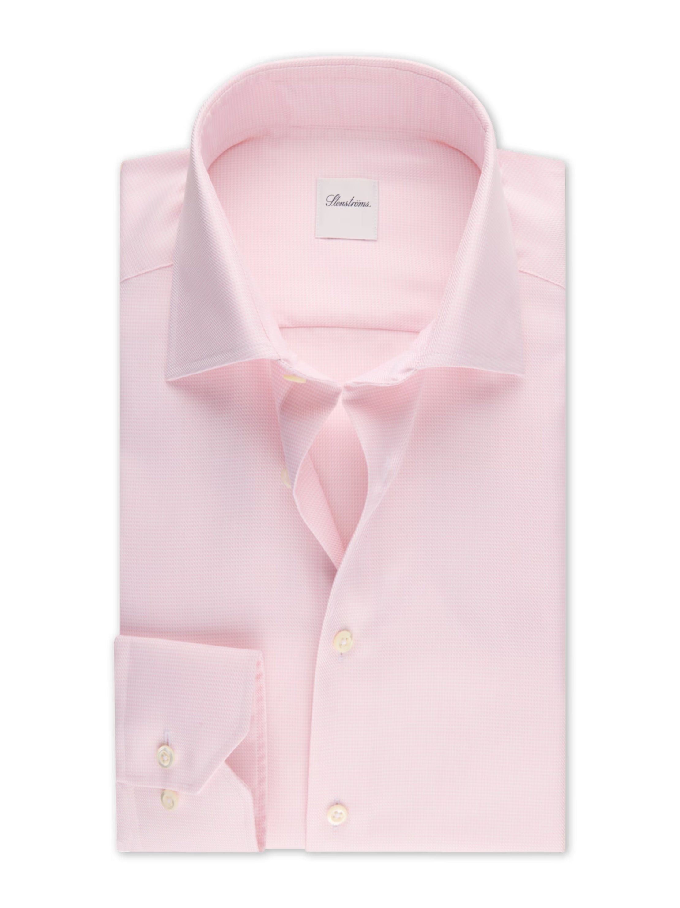 This twill shirt is made of twofold cotton and has a houndstooth pattern. The shirt is detailed with mother of pearl buttons, single cuffs and a cut away collar.