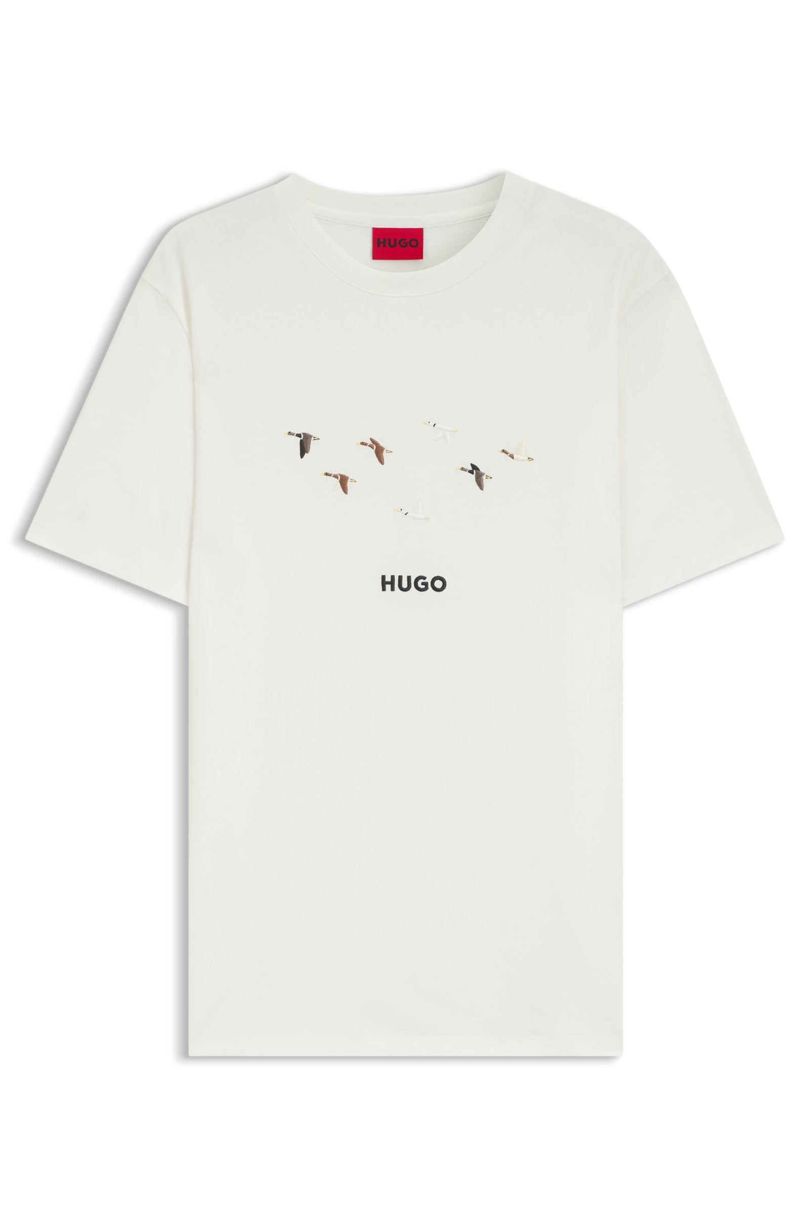 Embroidered with a logo and creative animal artwork, this HUGO Menswear T-shirt will energize your casual looks. Regular fit Soft cotton jersey.