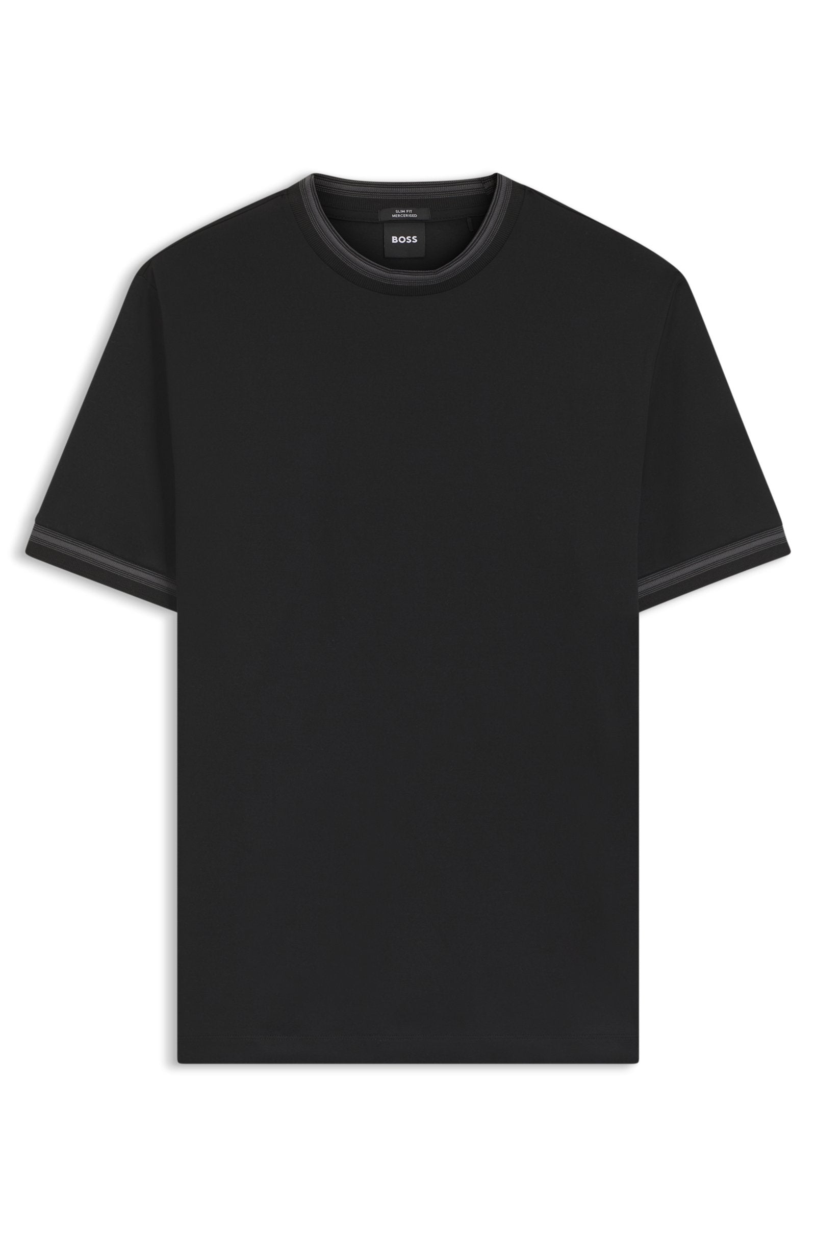 Cut to a slim fit in extra-soft mercerized cotton, this BOSS Menswear T-shirt adds interest to casual outfits. Contrast tipping and structured details.
