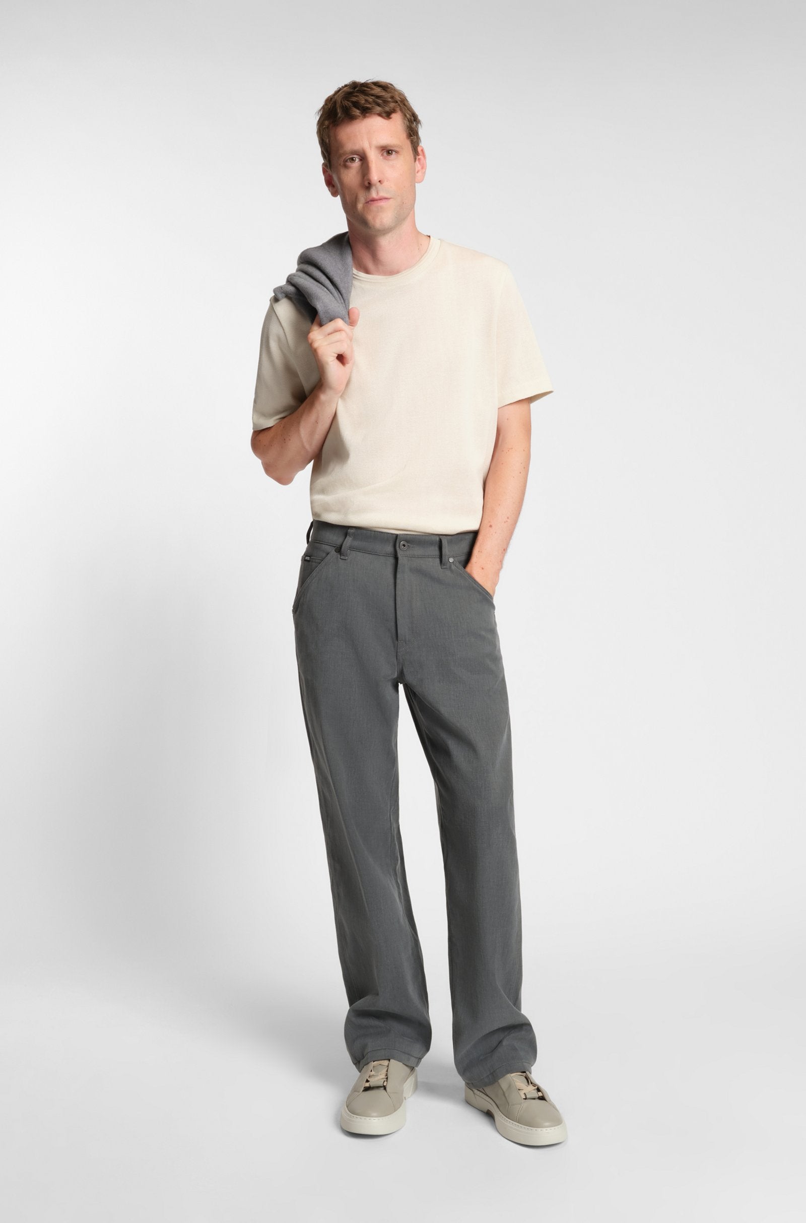 Add wintry texture to your look with the herringbone weave of this BOSS Menswear T-shirt. Cut to a straight fit in 100% cotton.
