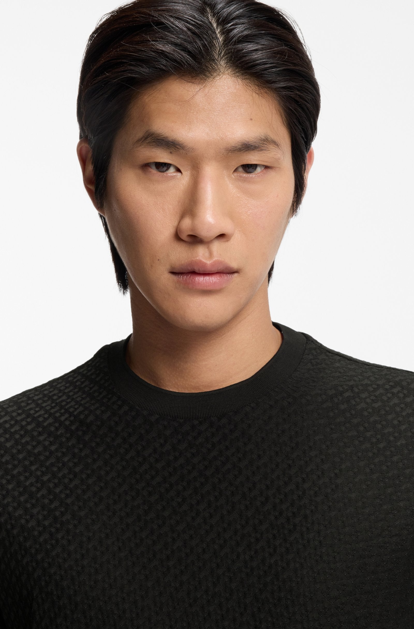 With a tonal monogram jacquard all over, this BOSS Menswear T-shirt adds a refined touch to your basics. Regular fit Extra-soft mercerized cotton.