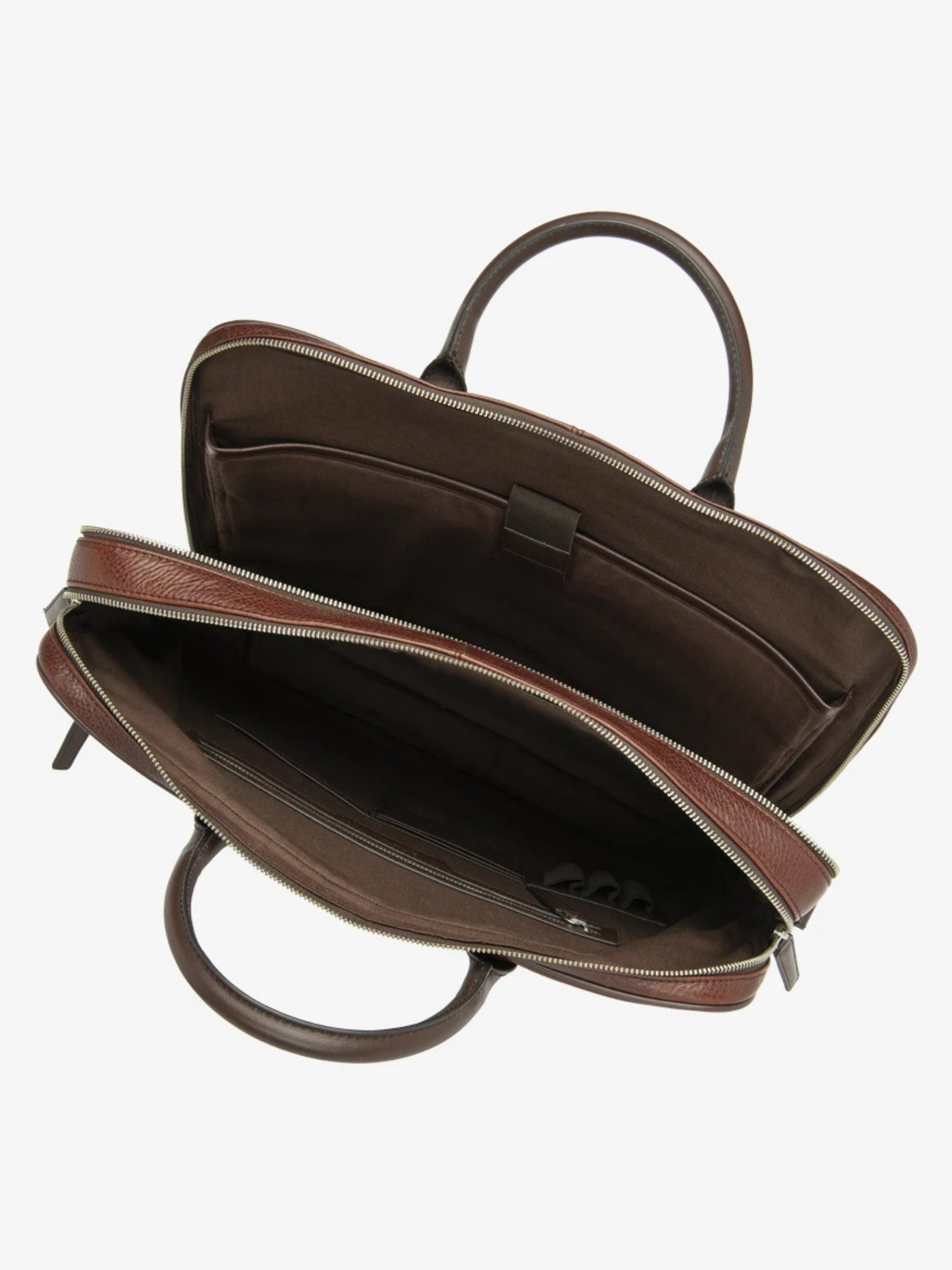 The Loake Westminster briefcase is crafted from premium grain calf tanned leather, combining classic style with everyday functionality. Designed with a detachable shoulder strap for comfortable carrying, it offers a sleek profile perfect for the modern professional. Inside, a single zip pocket keeps essentials secure and organised, while the main compartment provides ample space with a 10-litre capacity for documents and daily essentials. Made in India with expert craftsmanship, the Westminster briefcase embodies Loake’s commitment to quality, durability, and timeless design—making it an ideal accessory for work or business travel.
