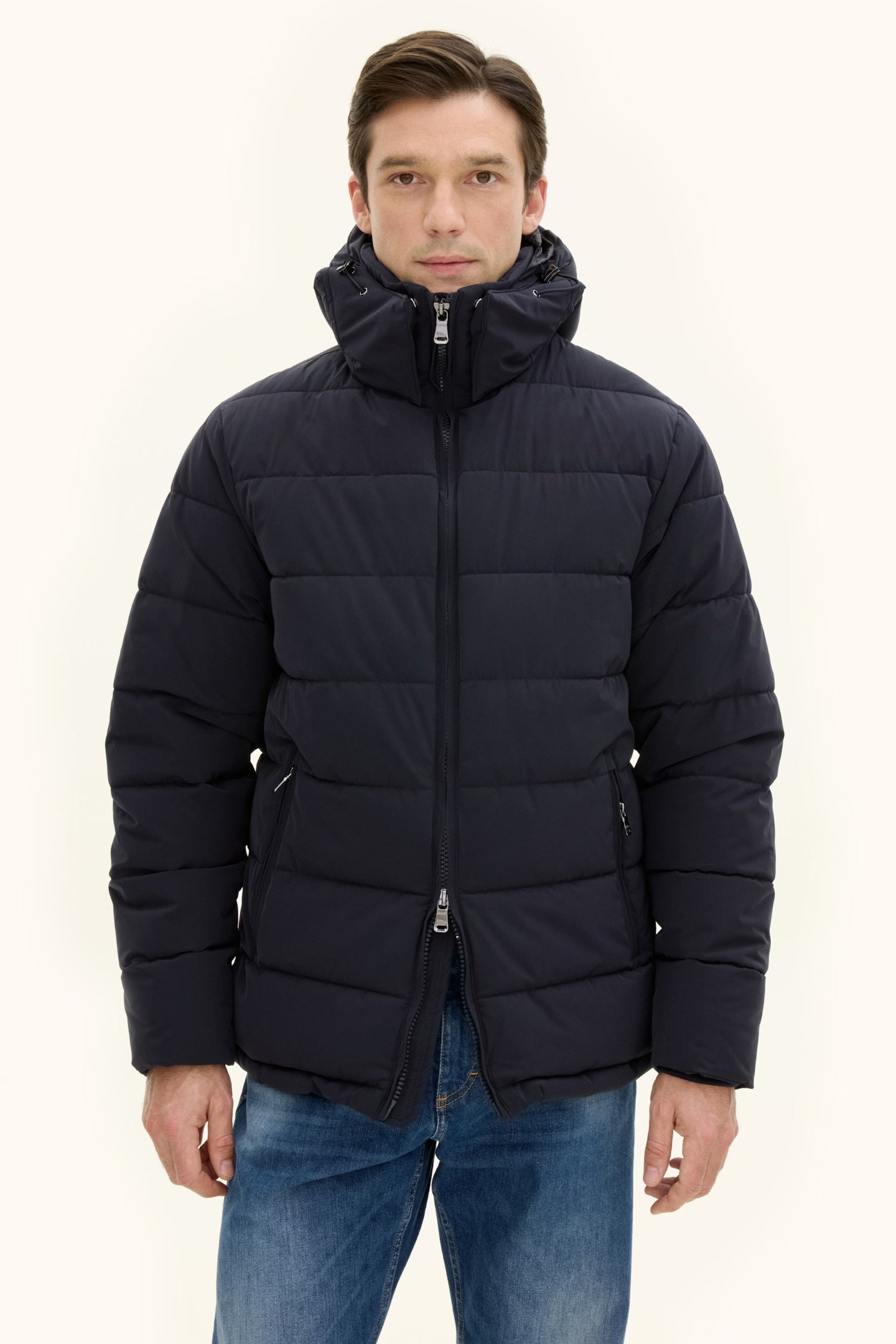 Our Hooded Puffer in Insulation Membrane is designed to be a warm and weatherproof outerwear for your everyday life during the winter months. With a stylish and classic design, the jacket goes perfectly with both casual jeans and more formal flannel trousers. In addition to the water-repellent and waterproof outer fabric, the garment is lined with a 450 gram plant-based Sorona Padding to keep you warm in the harsh winter cold. High button placket together with an adjustable hood and waist allow you to seal the jacket in cold conditions. The inside of the jacket is covered in a durable ripstop lining and contains three inner pockets. The hood is removable, which allows for varying expressions and uses. Insulation Membrane is our two-layer insulating shell material with mechanical stretch, developed to protect against the elements without compromising on mobility, breathability or style.