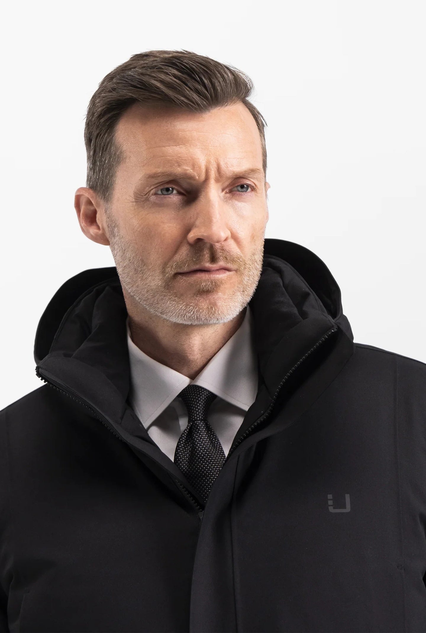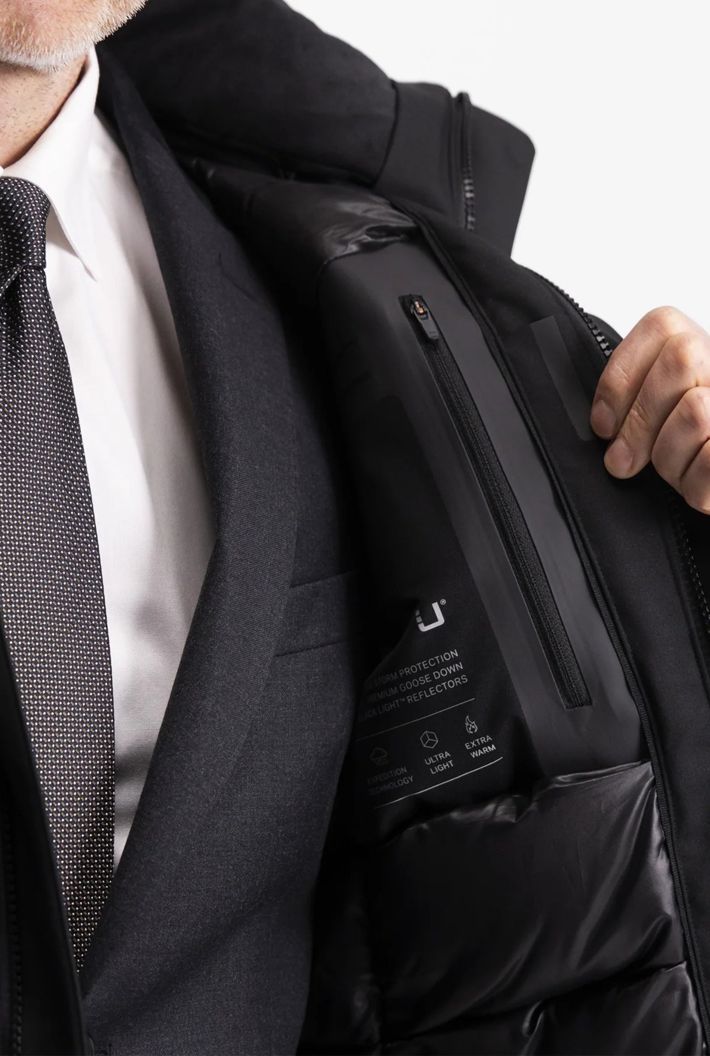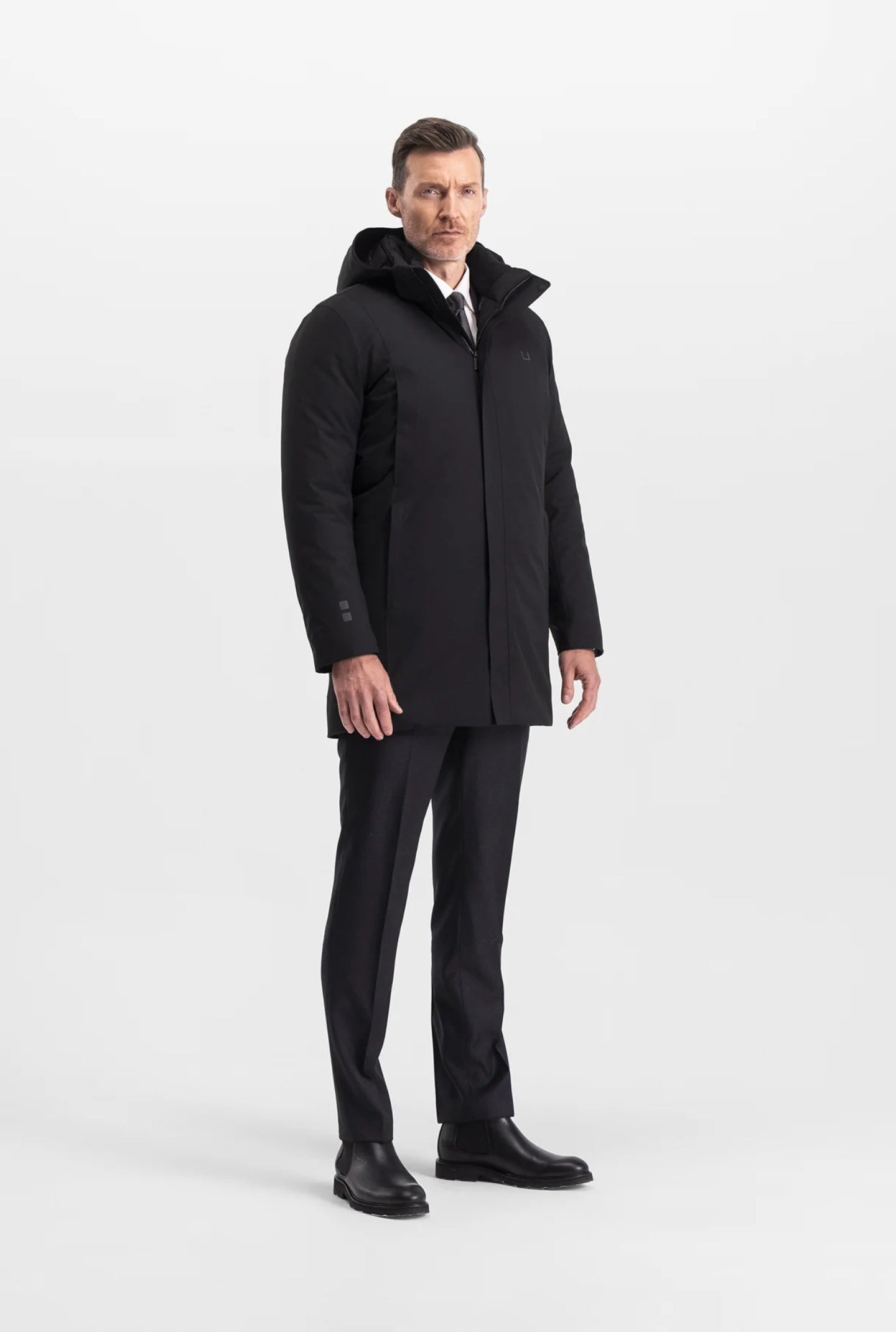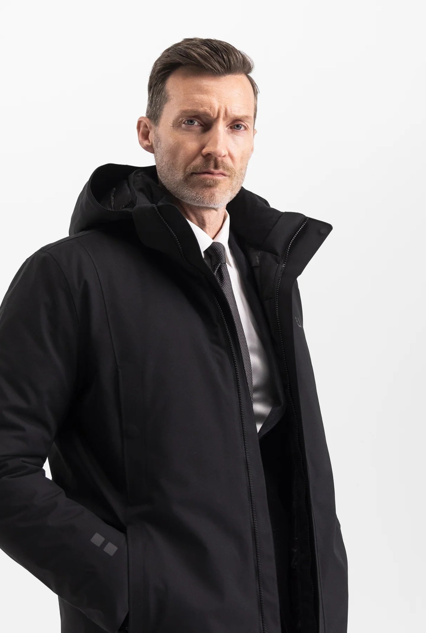 Highly innovative and luxurious down parka with exceptional warmth. Full storm protection for cold winter cities. Dynamic stretch feels great and creates a sleek look. Slim fitted with minimal bulk. Regulator™ Membrane - Dynamic, Waterproof & Breathable