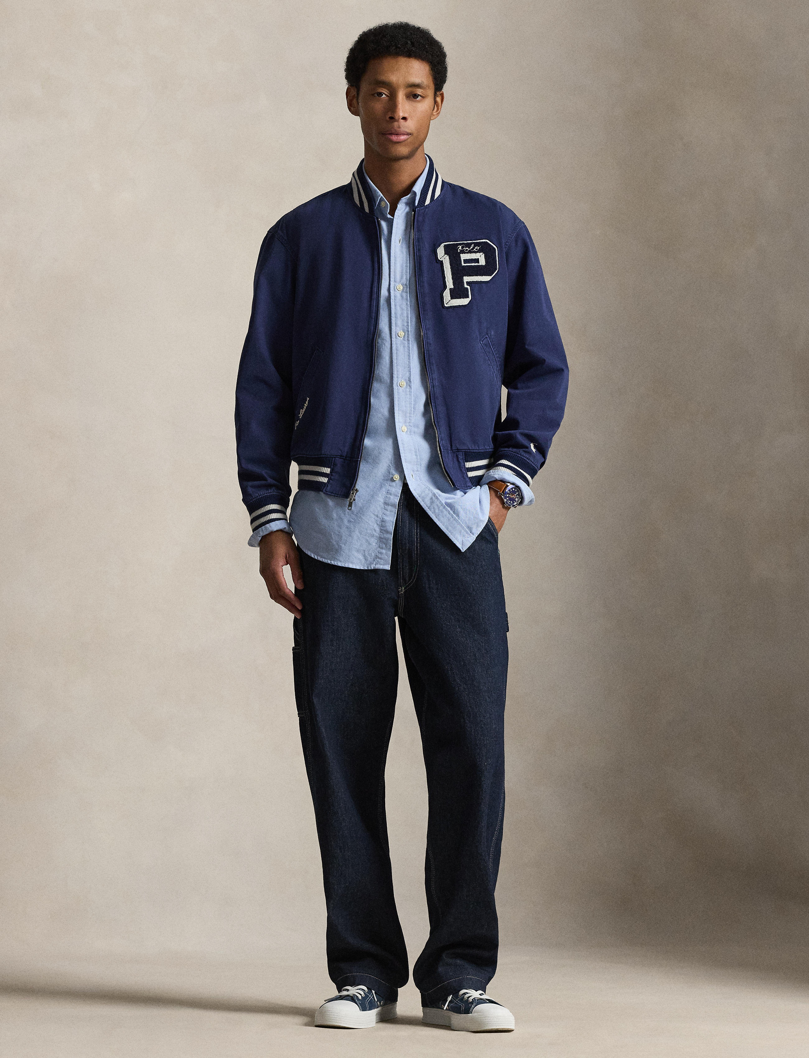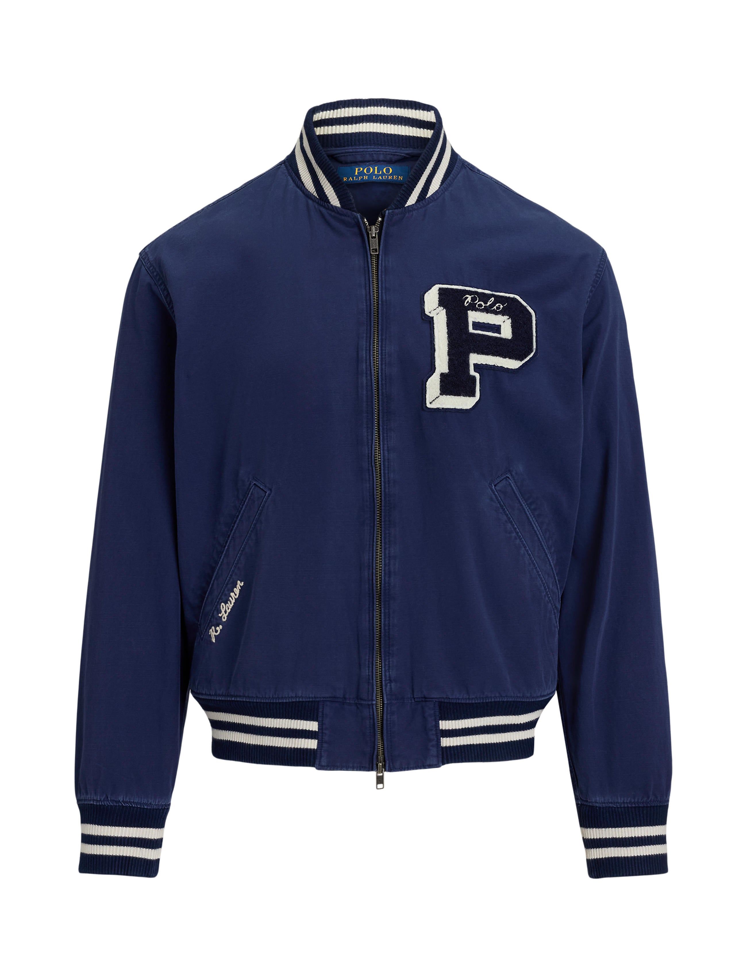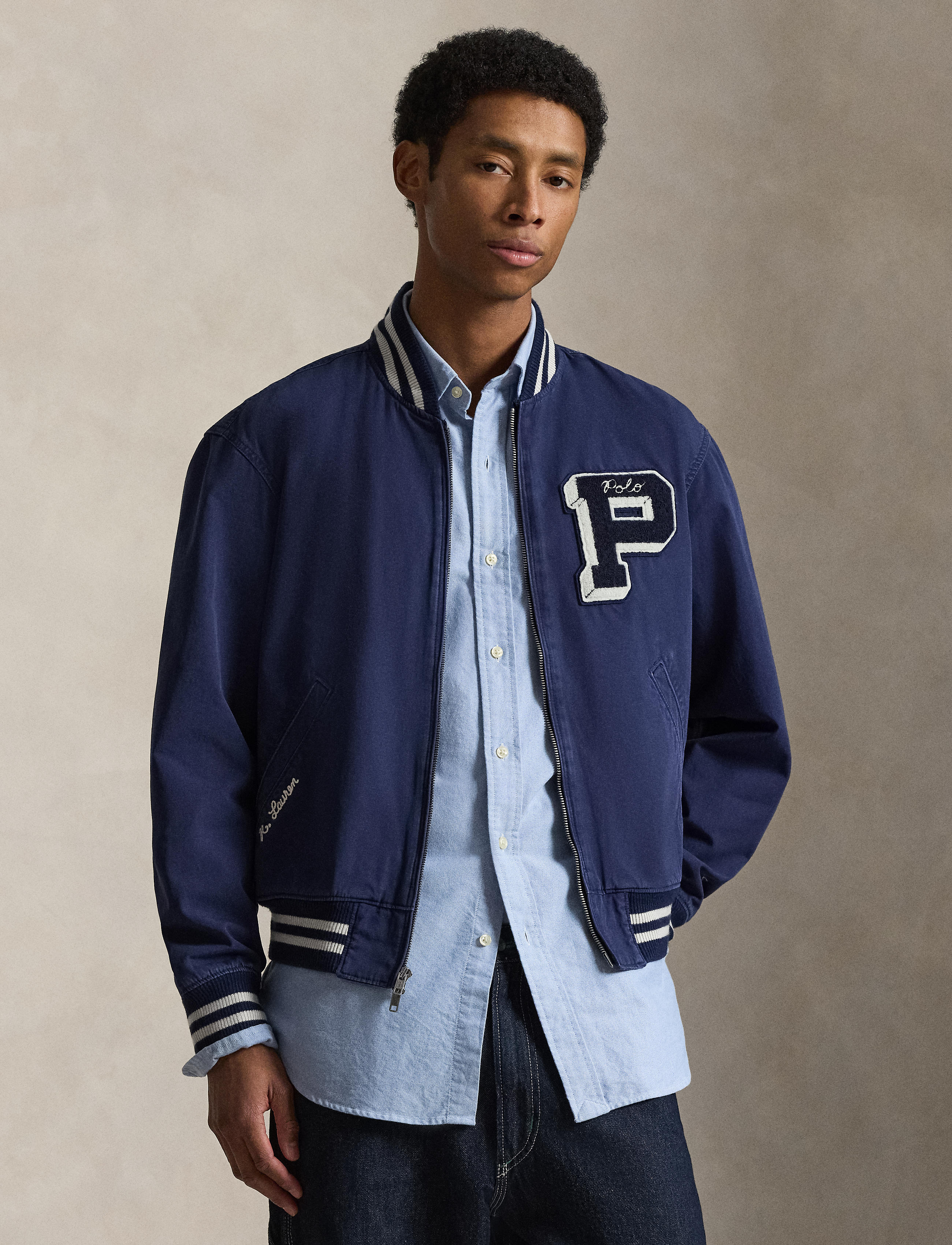 Crafted with lightweight cotton canvas, this jacket unites a sporty silhouette with signature embroidery and patches for a collegiate-inspired aesthetic.