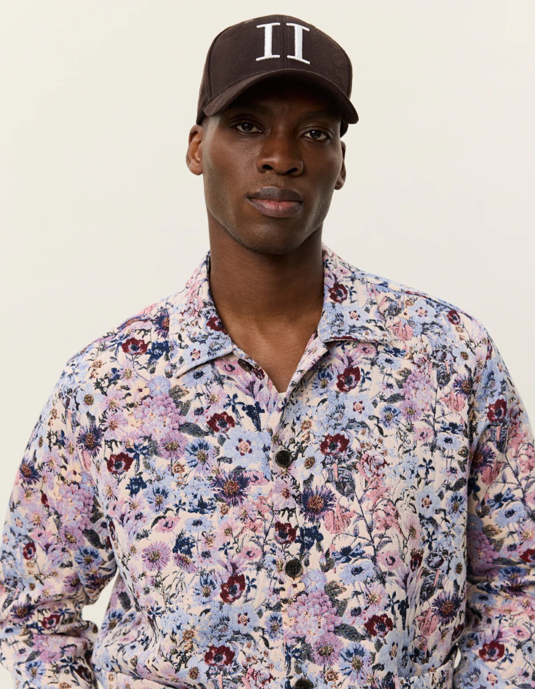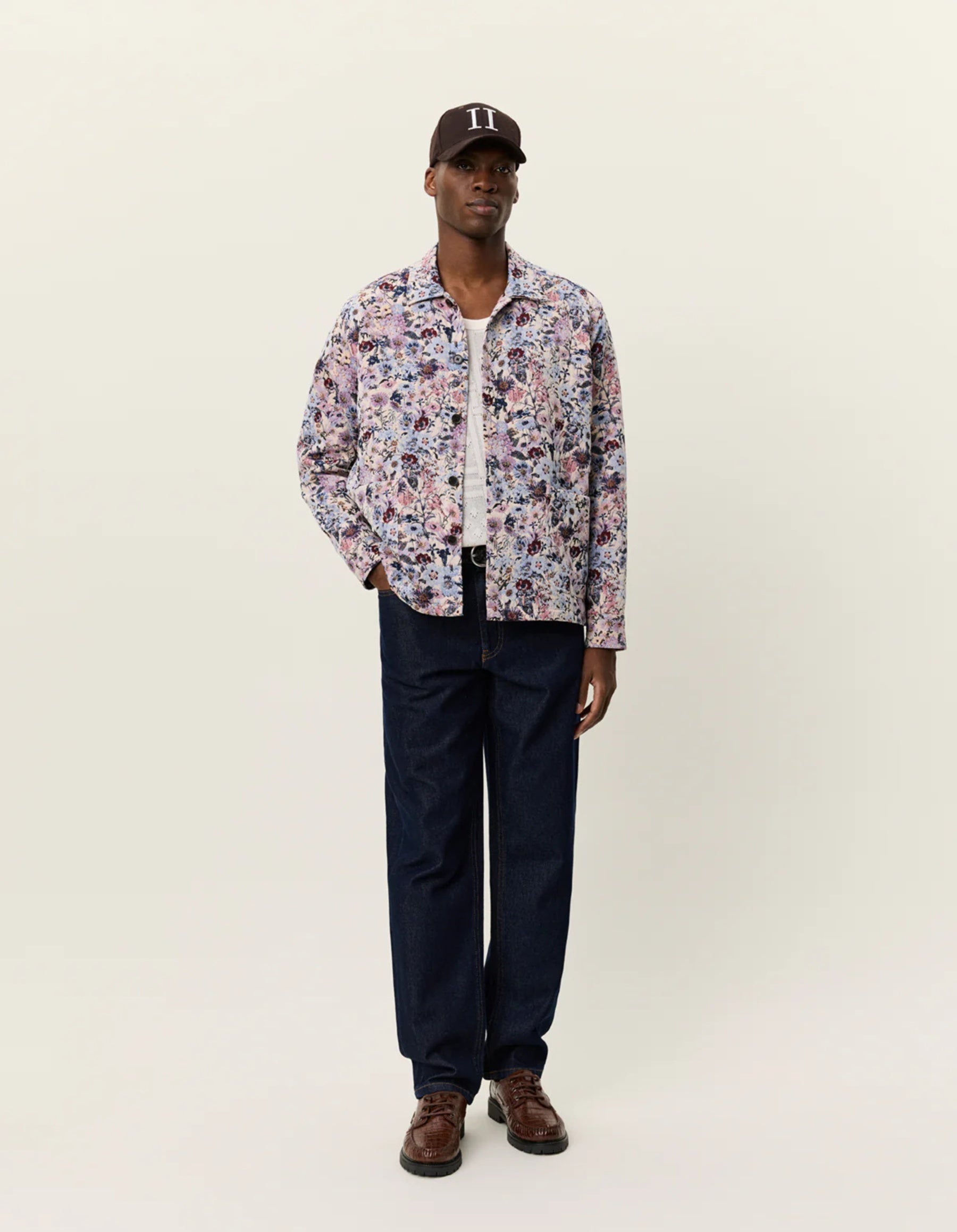 Regular-fit overshirt cut from an Italian floral jacquard with a textured, elevated feel. Designed with workwear-inspired front pockets, a classic collar and a clean button-front closure.