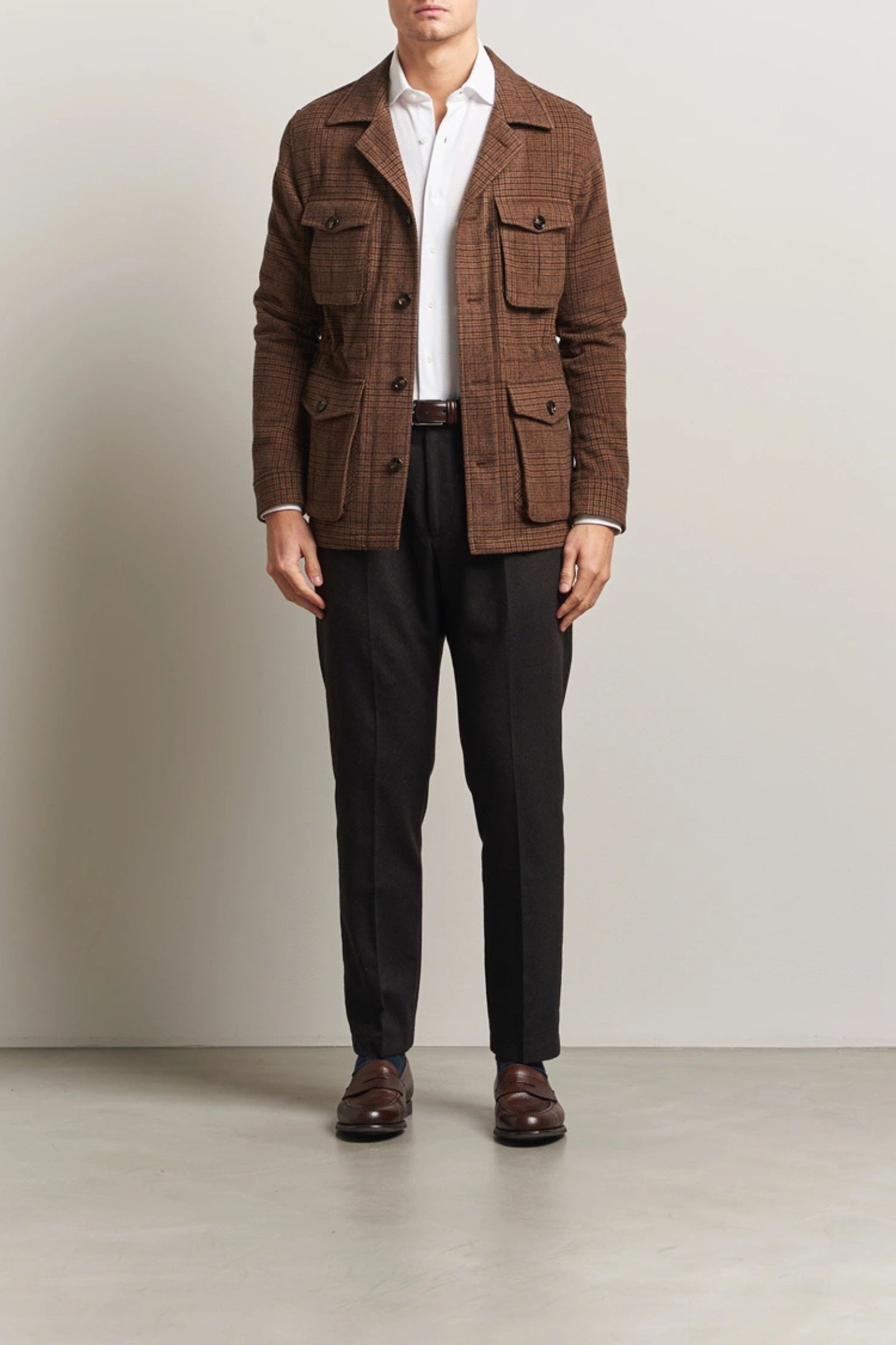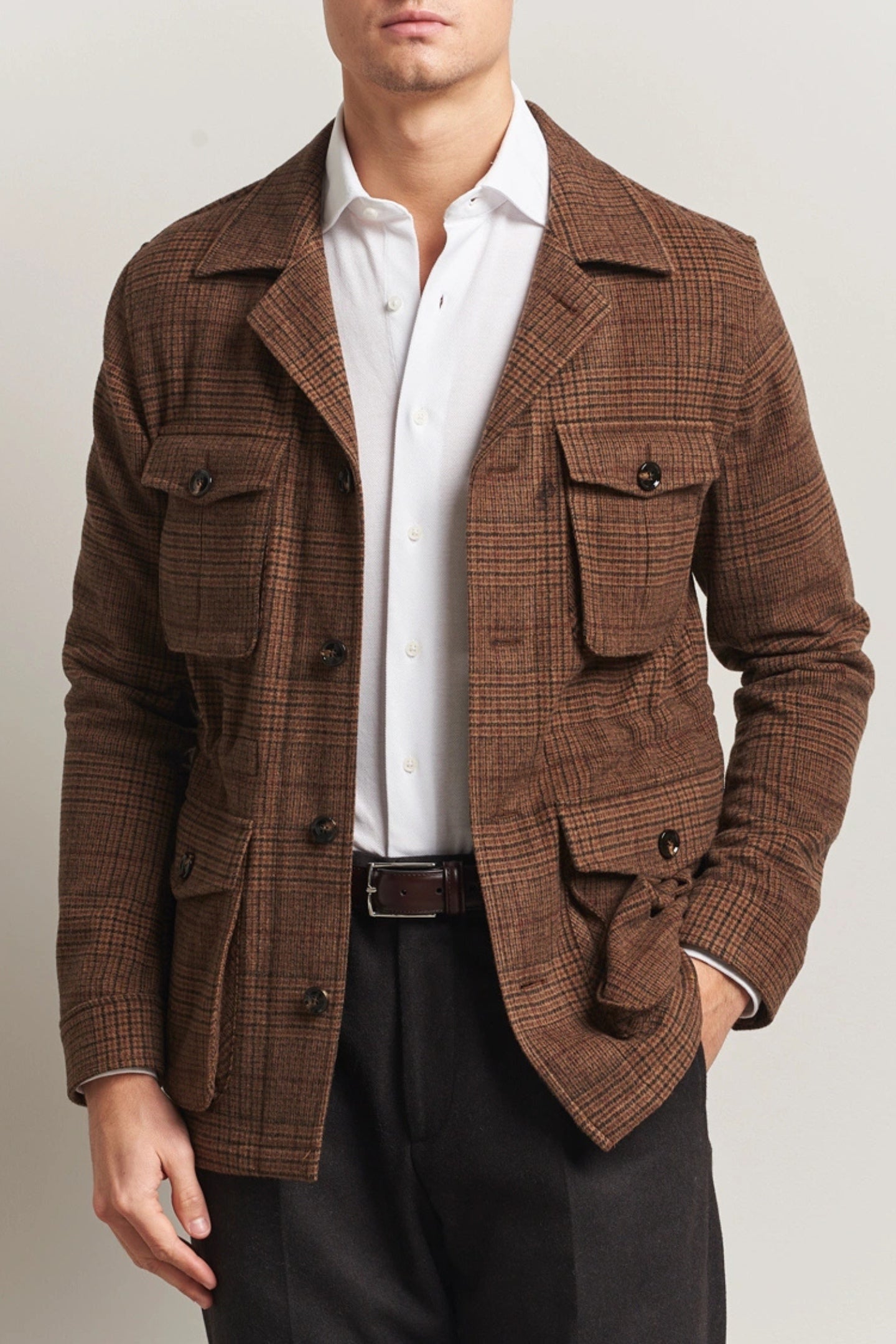 This wool blend overshirt is tailored in a regular fit and defined by a timeless checked pattern. Inspired by the safari jacket and woven in a structured fabric, it balances a relaxed feel with refined structure. A flexible layering piece, equally suited over a shirt or with knitwear.