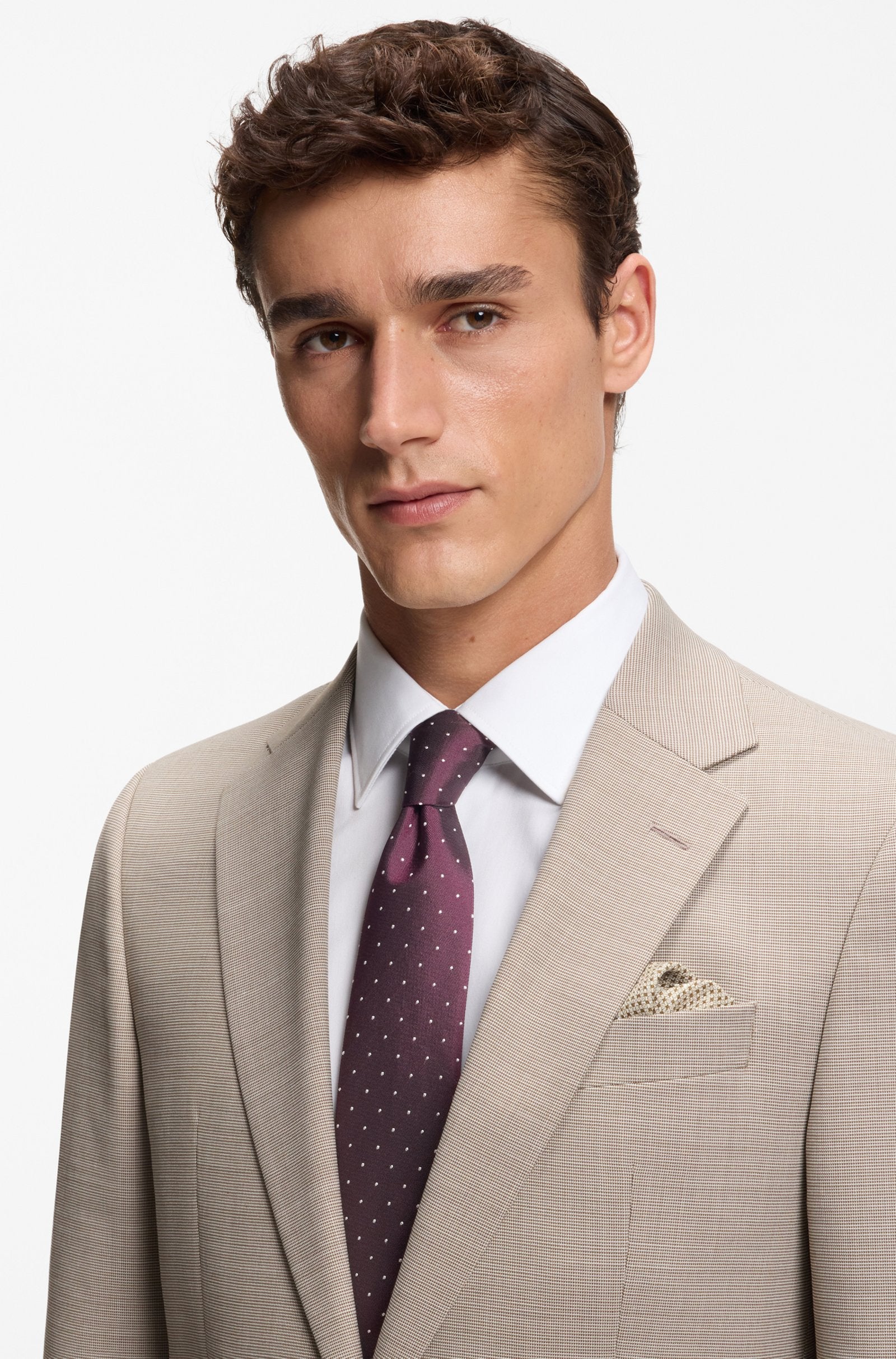 The subtle dot pattern of this BOSS Menswear tie makes it so easy to style. Crafted in a silk blend for an elegant drape.