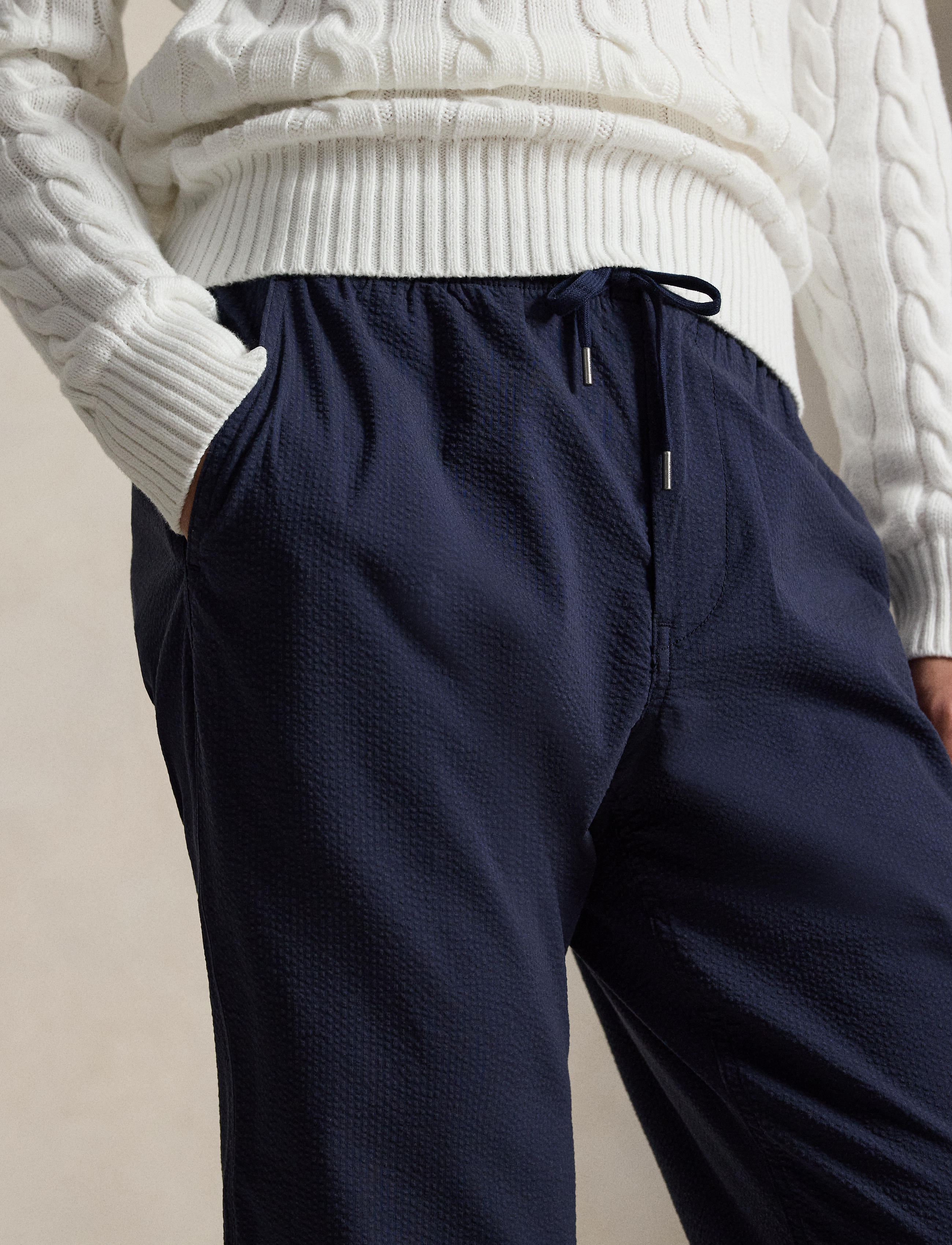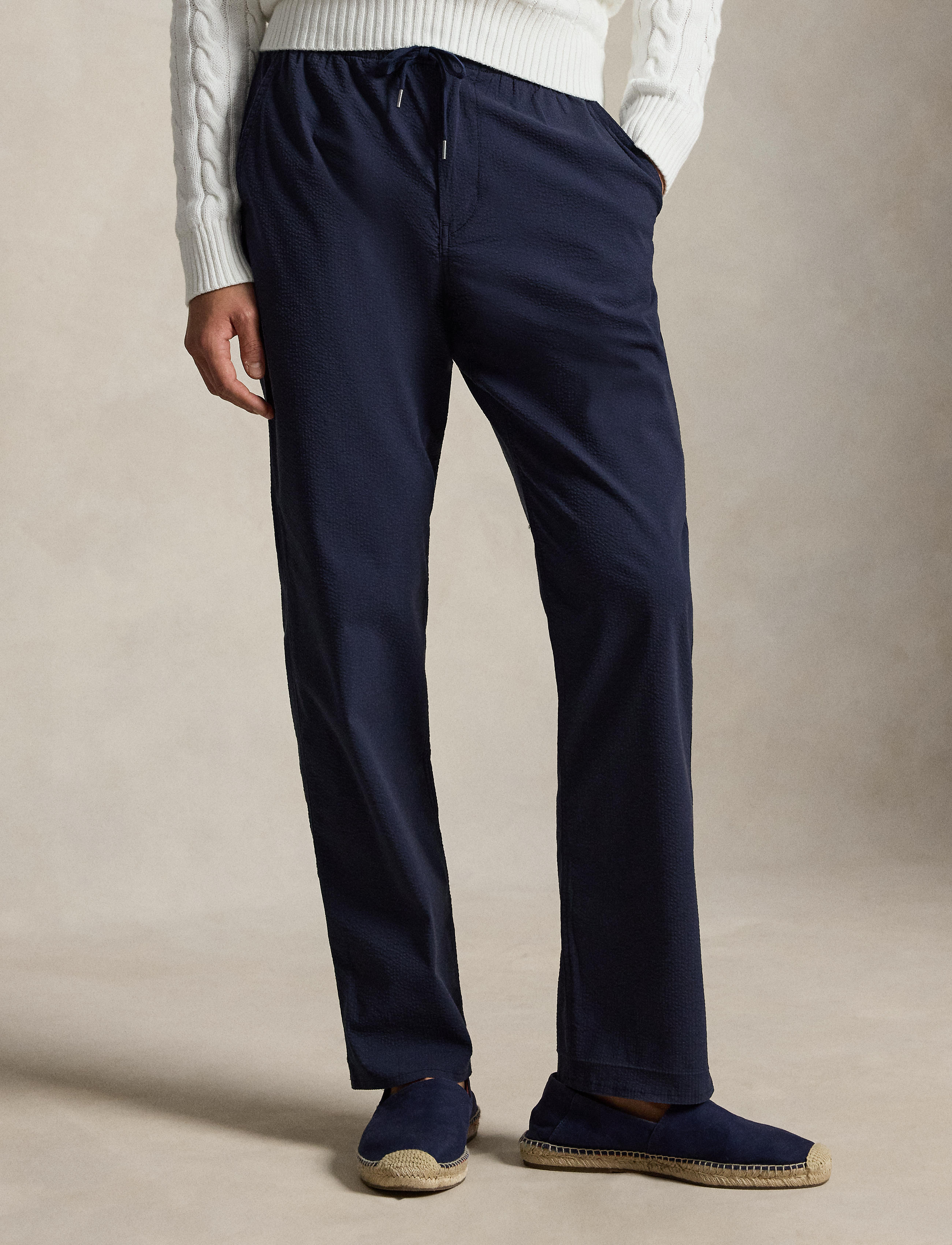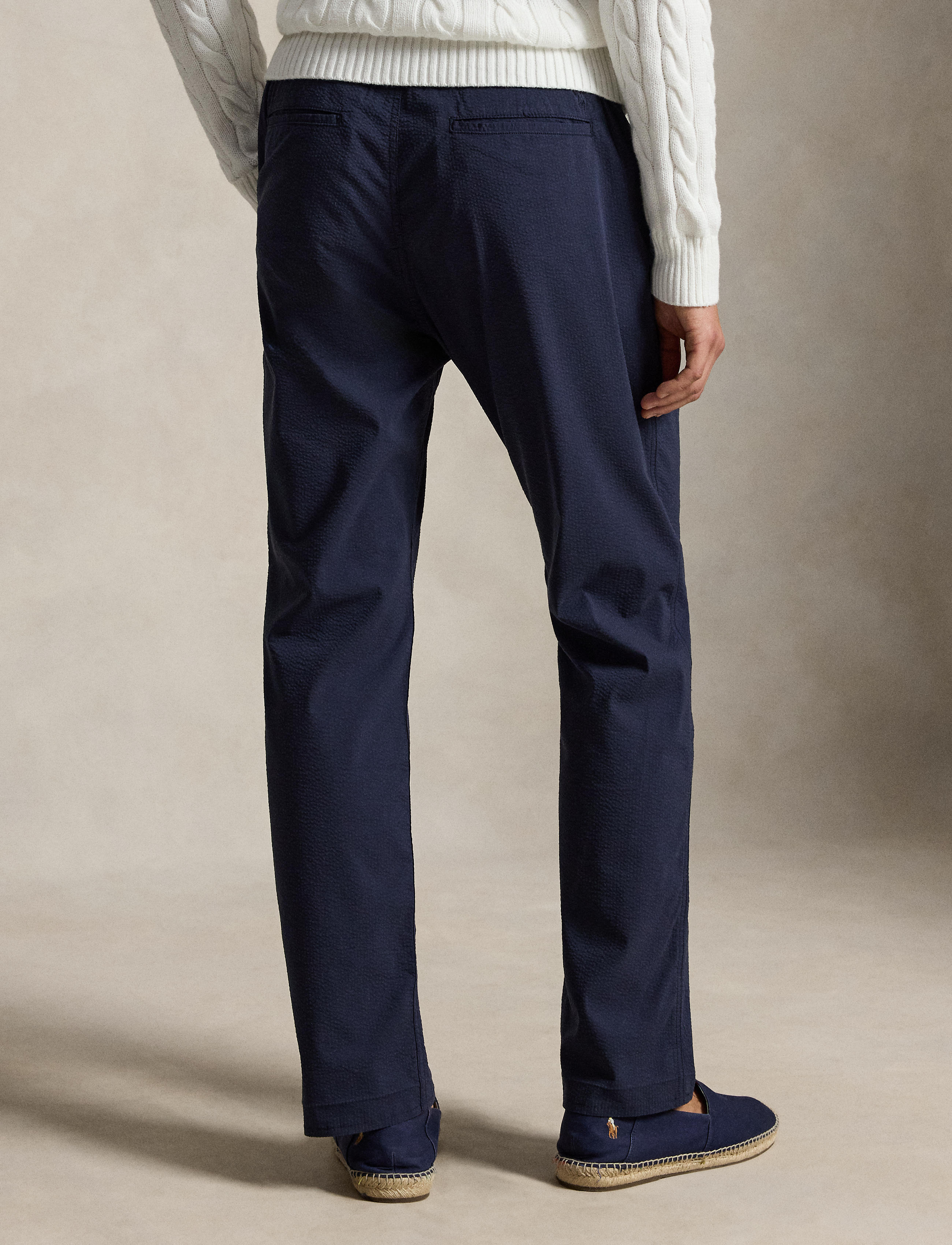 Drawing inspiration from our signature Polo Prepster shorts, these pants are crafted with cotton-blend seersucker that is woven with extra stretch. Additionally, they are imbued with  moisture-wicking properties to help ensure all-day-long comfort.