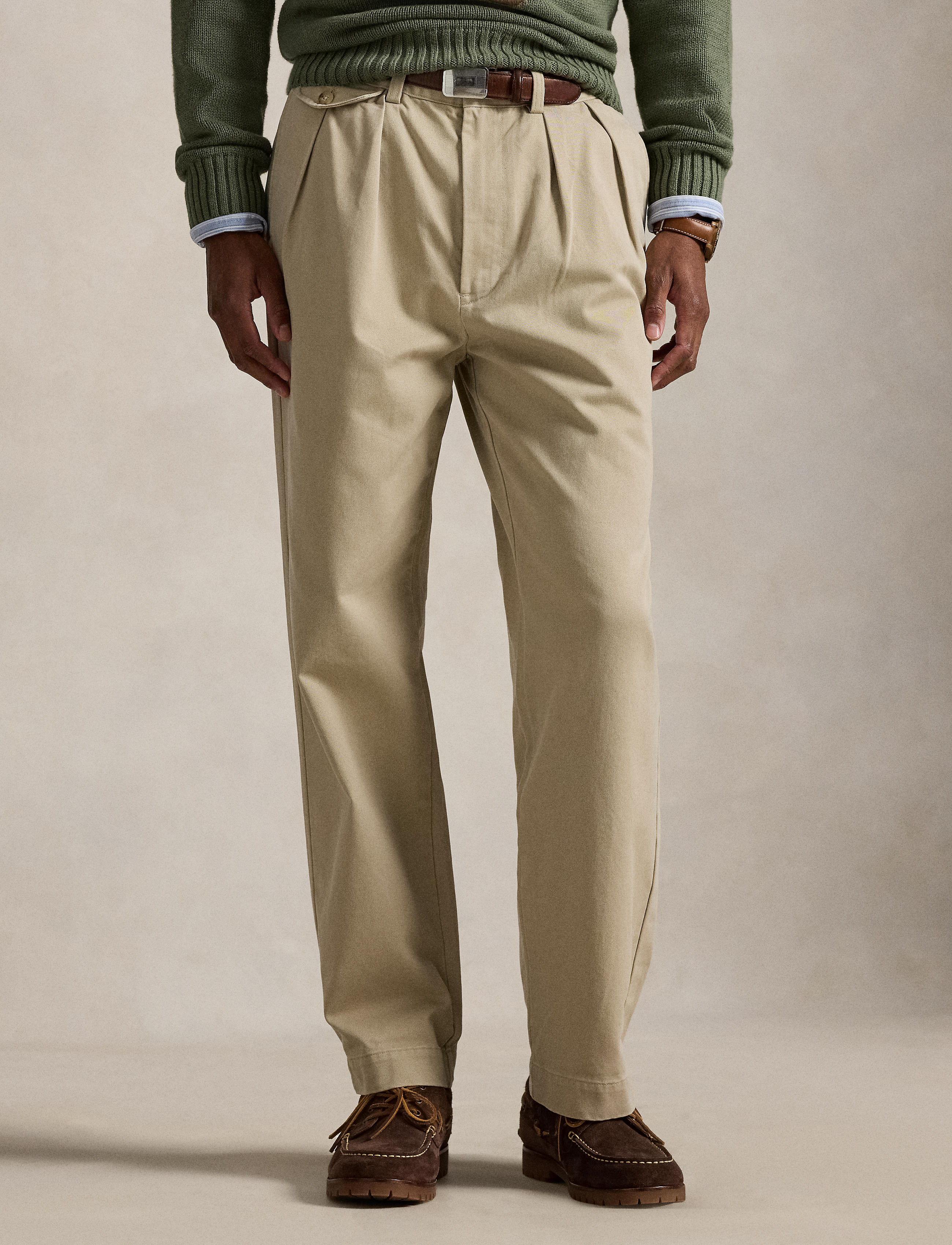 In soft cotton chino, these unisex pants offer a classic Polo look with their relaxed, pleated silhouette.