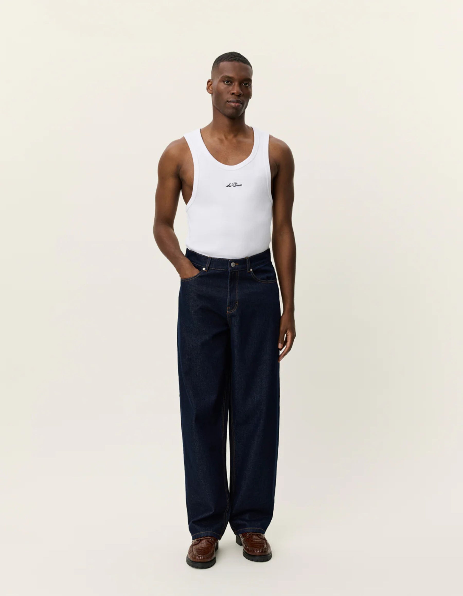 A laid-back take on classic denim. The Roi is cut from heavyweight organic cotton with a washed finish and easy drape, finished with a traditional 5-pocket construction and selvedge-style detailing.